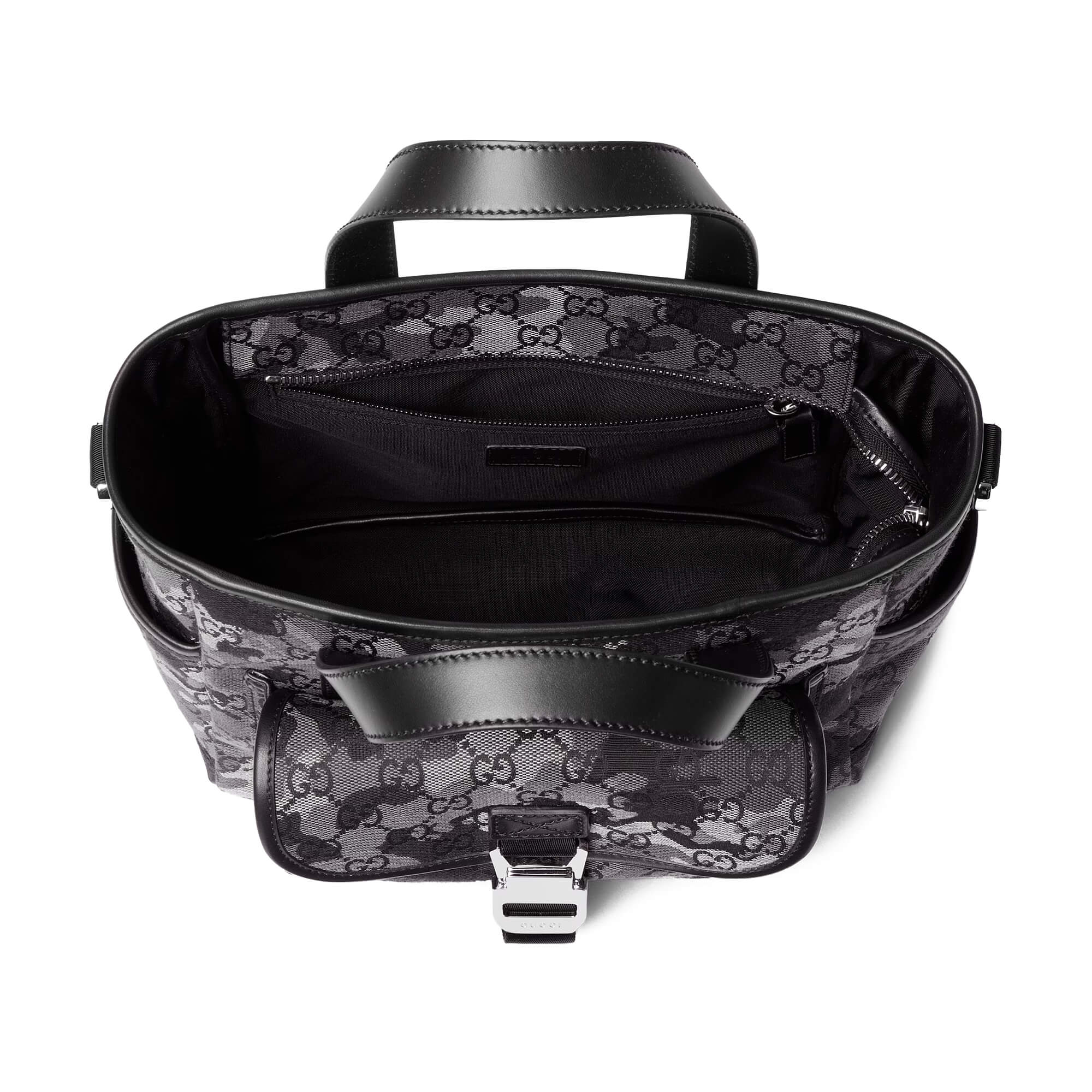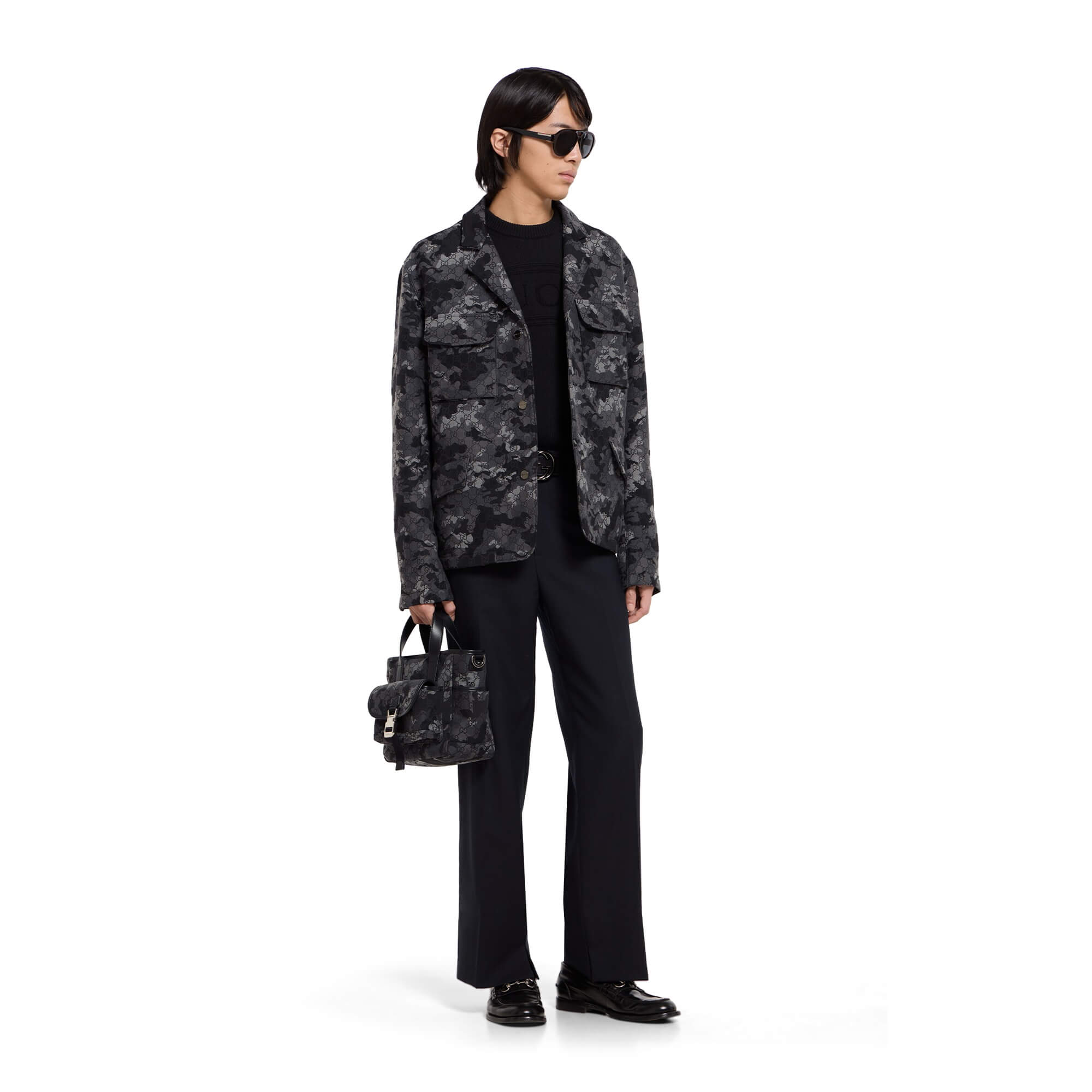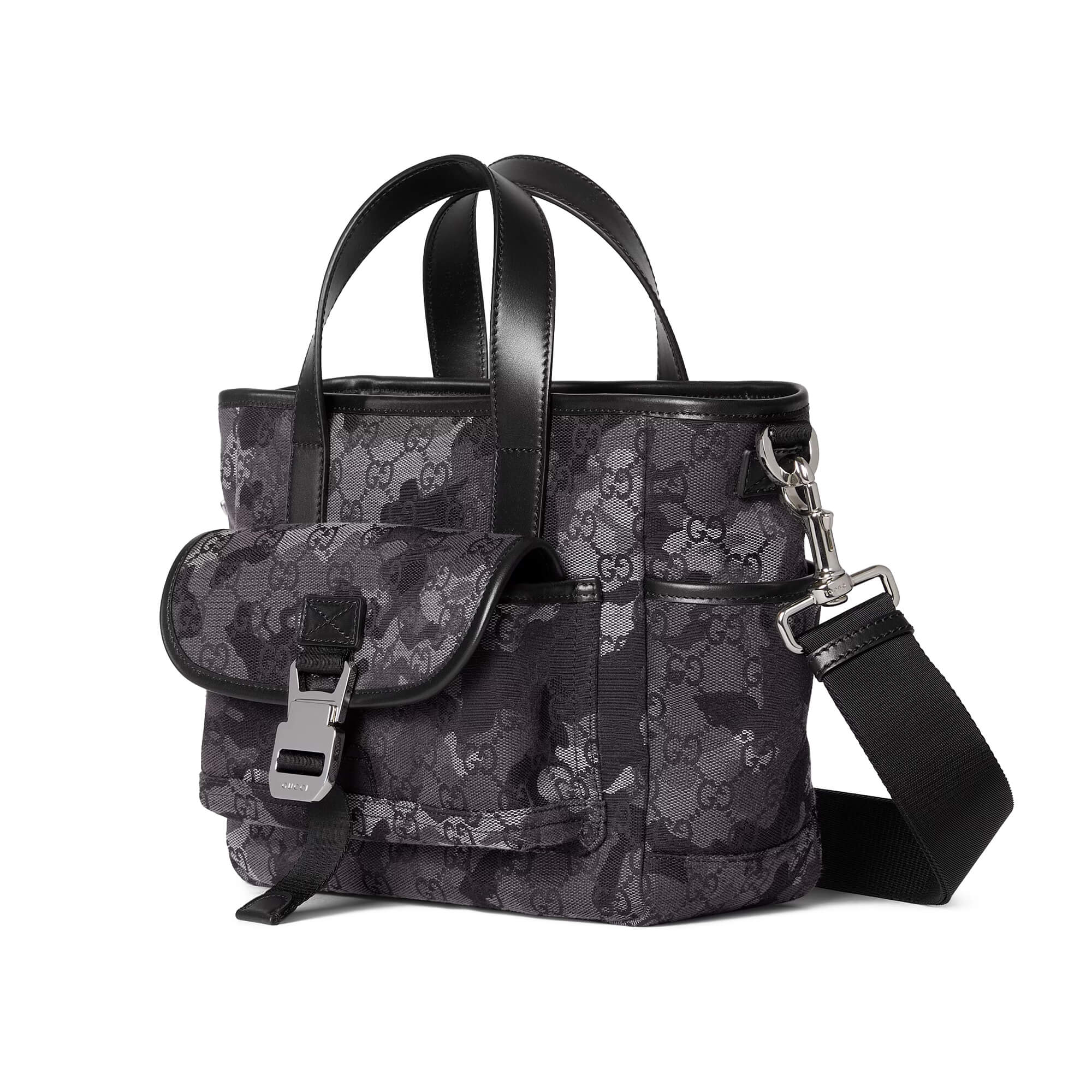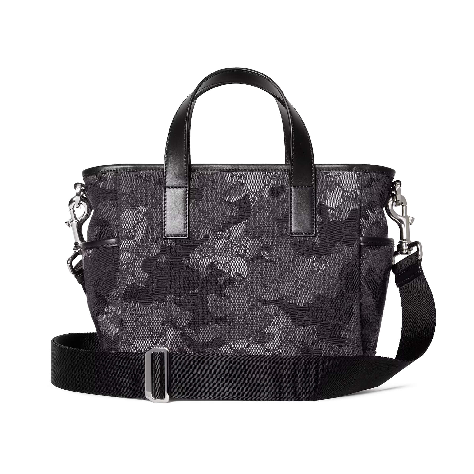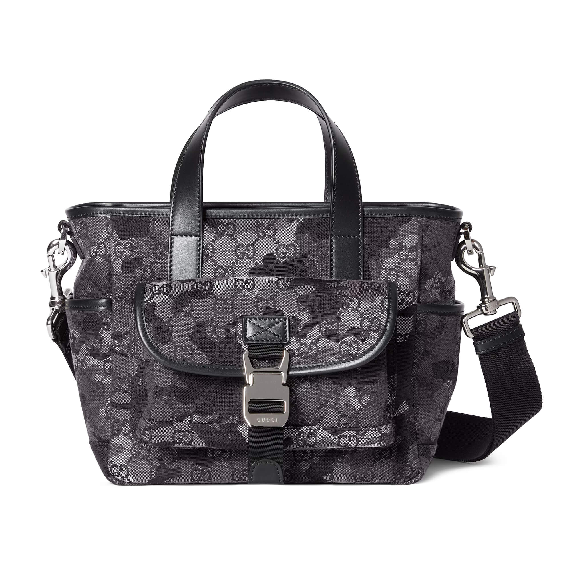 אריג GG בדוגמת קמופלאז׳ משויש בצבע שחור ואפור