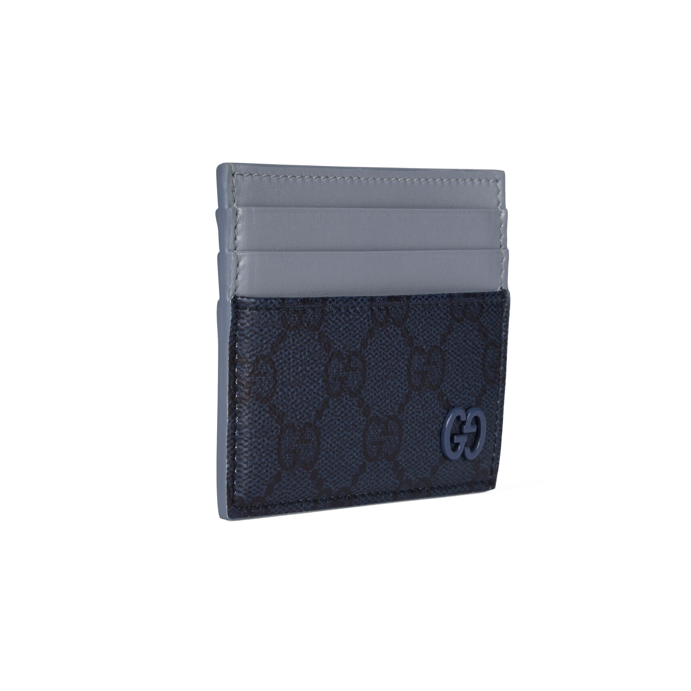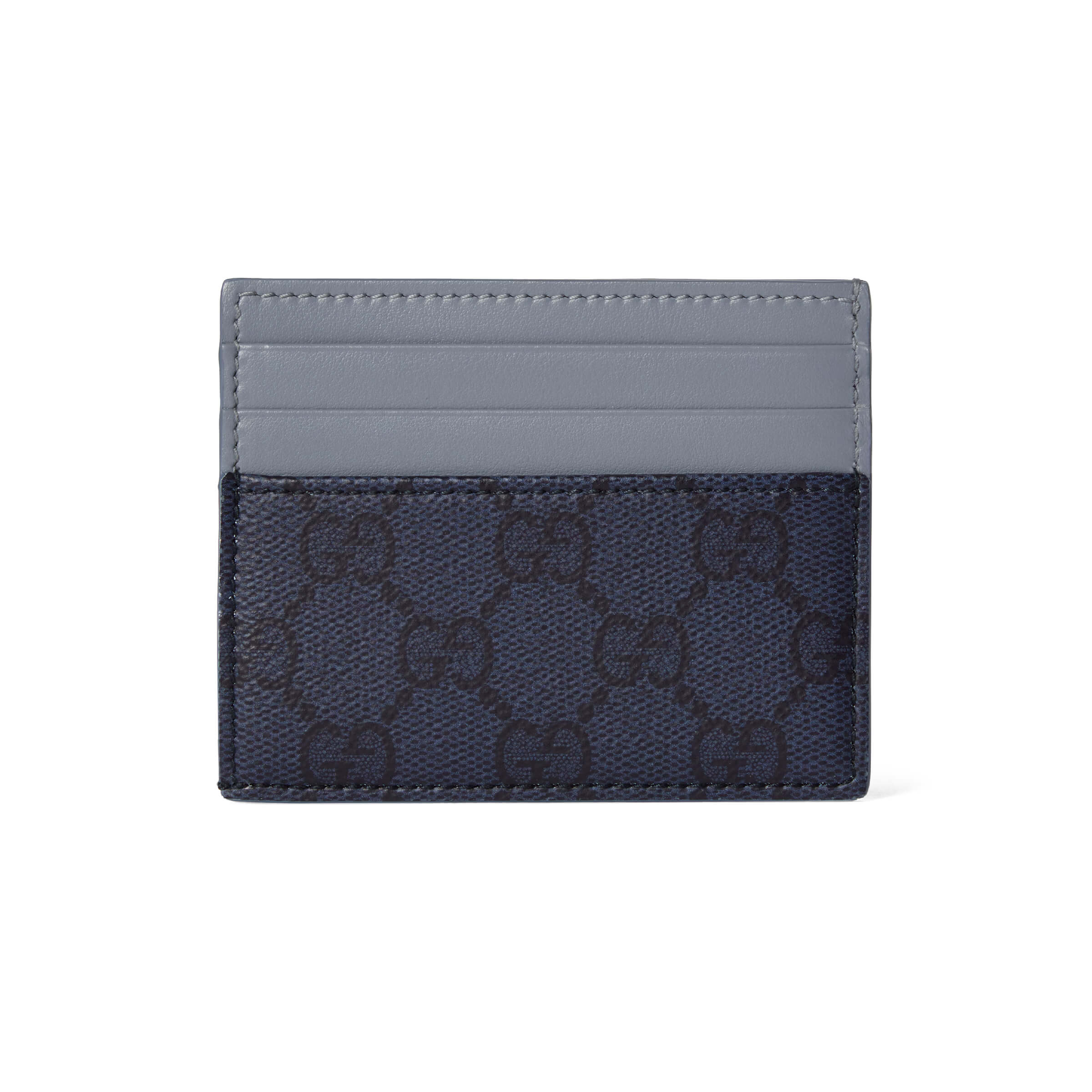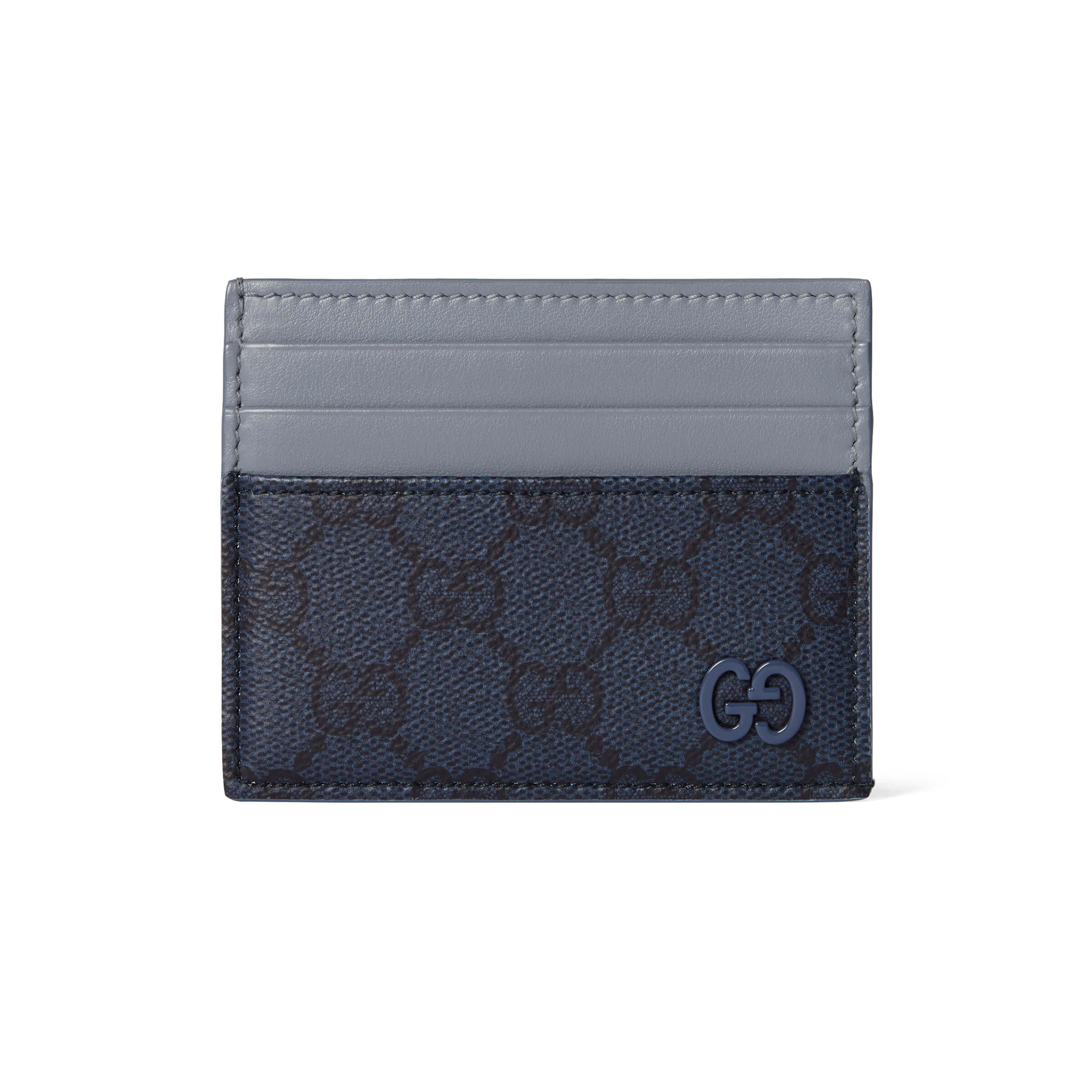 אריג GG Supreme רך בצבע כחול כהה עיטור עור בצבע תכלת אביזרי פלדיום עם גימור בצבע כחול עיטור GG 6 תאי כרטיסים וכיס פתוח אחד רוחב: 10 ס״מ גובה: 8 ס״מ משקל: כ־0.51 ק״ג מיוצר באיטליה