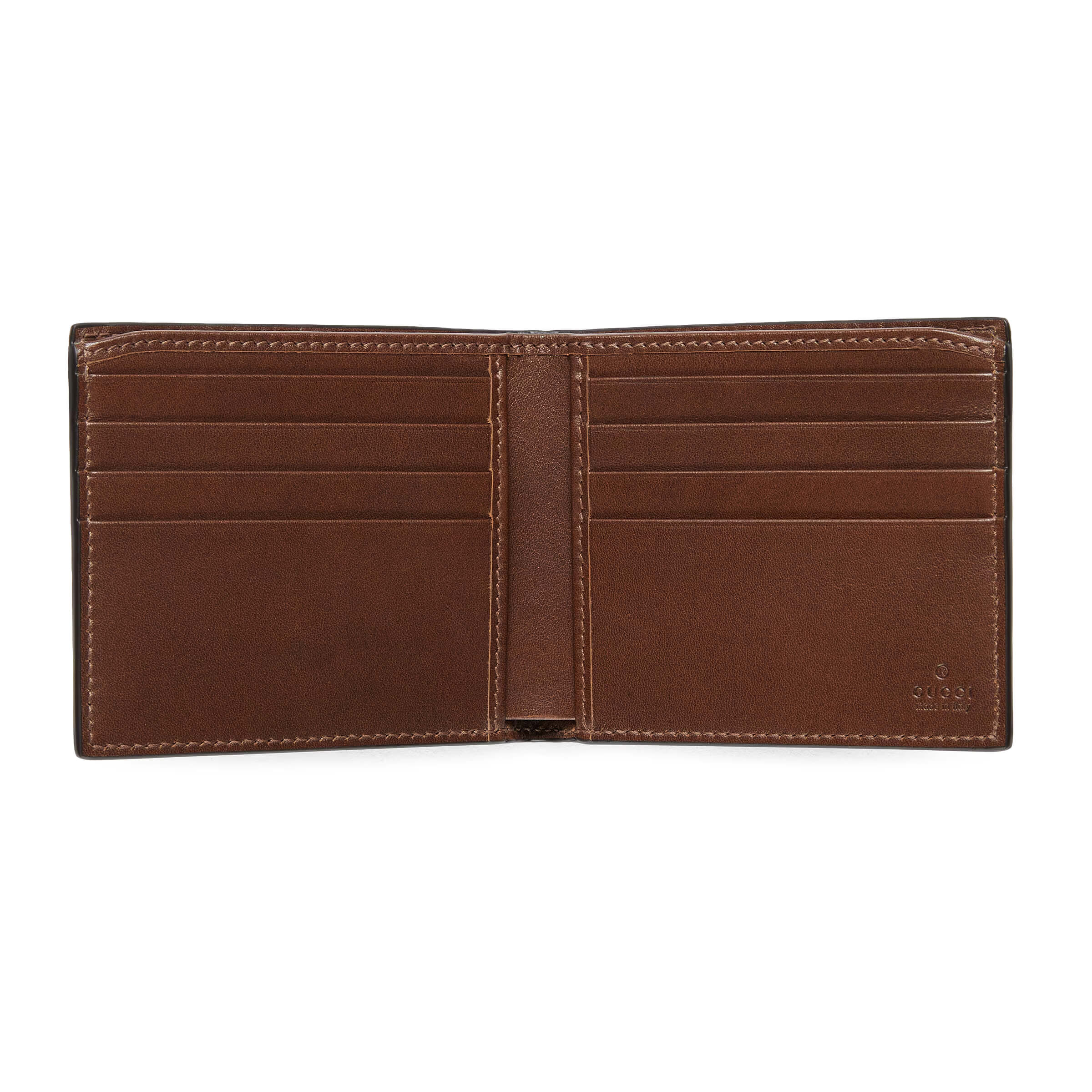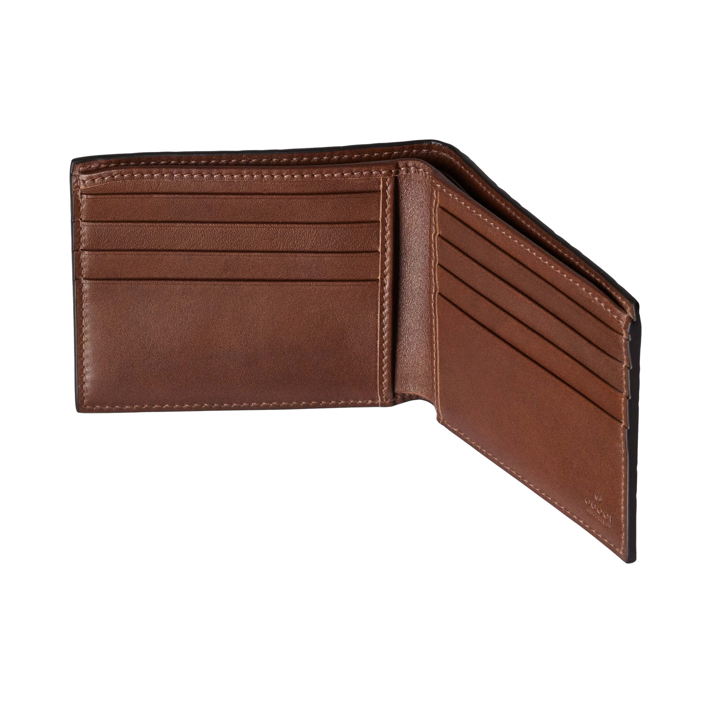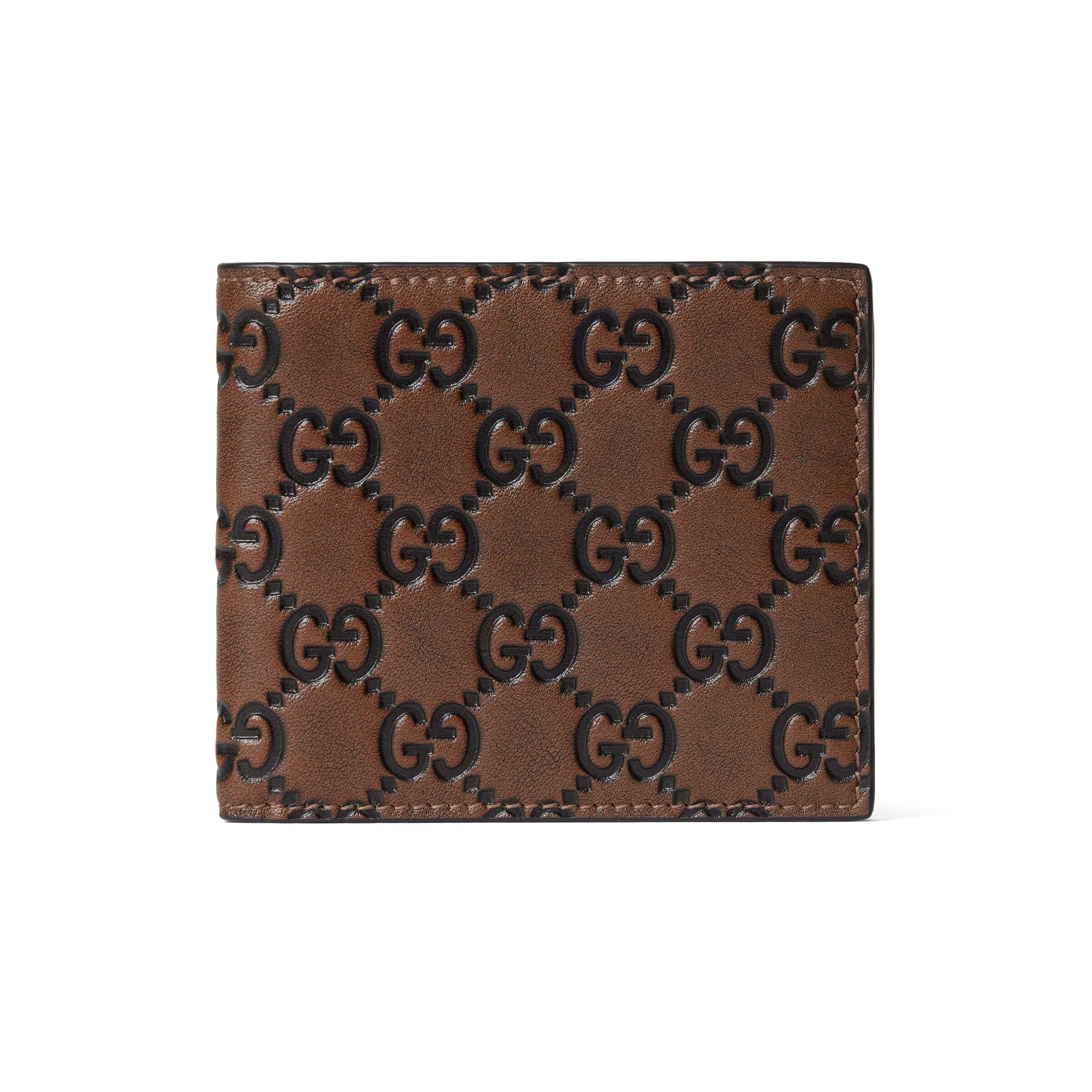 עור חום עם דוגמת GG מובלטת בצבע שחור בטנת טאפטה בצבע חום 8 תאי כרטיסים ושני תאי שטרות סגור: רוחב 11 ס״מ x גובה 9 ס״מ פתוח: רוחב 21 ס״מ x גובה 9 ס״מ משקל: כ־110 גרם