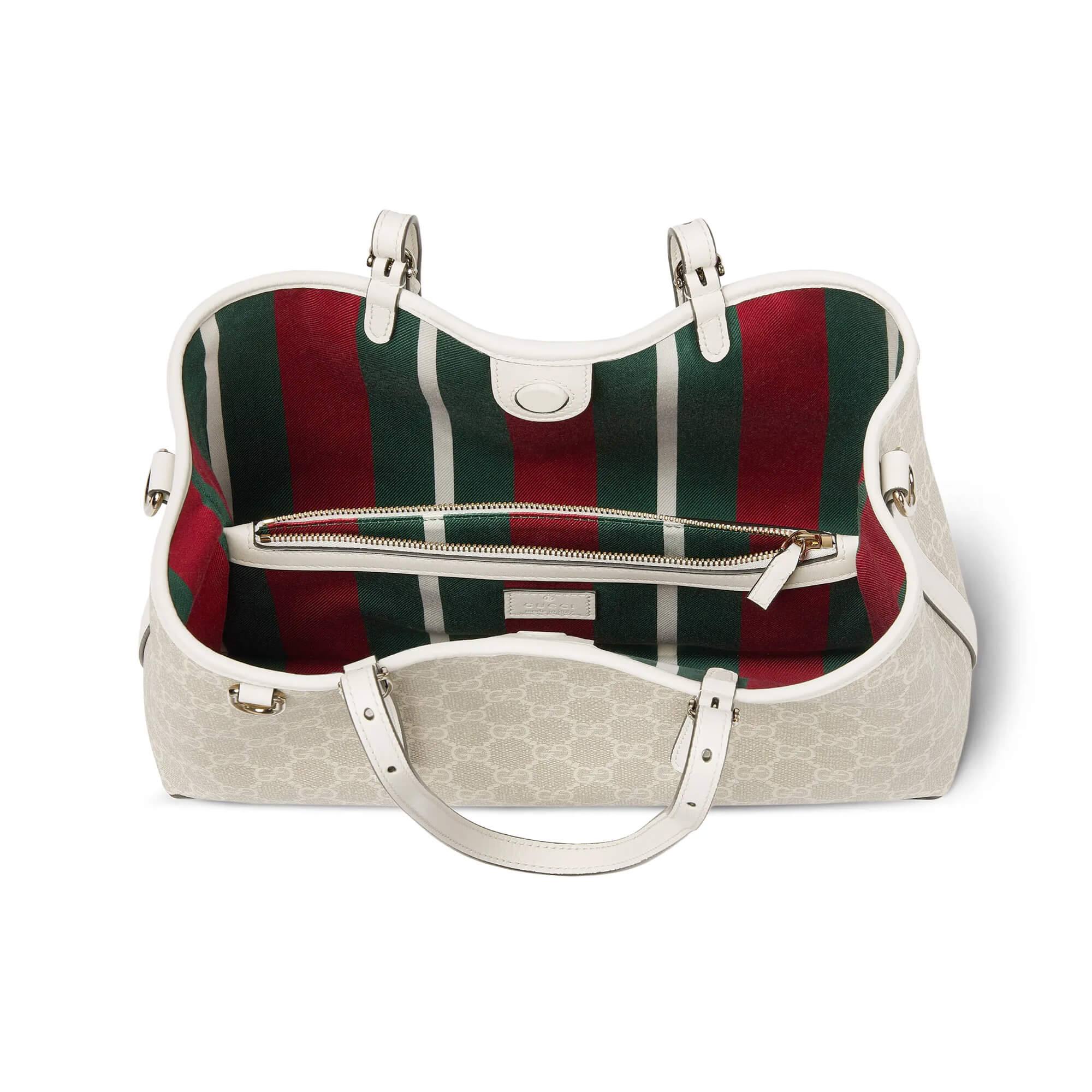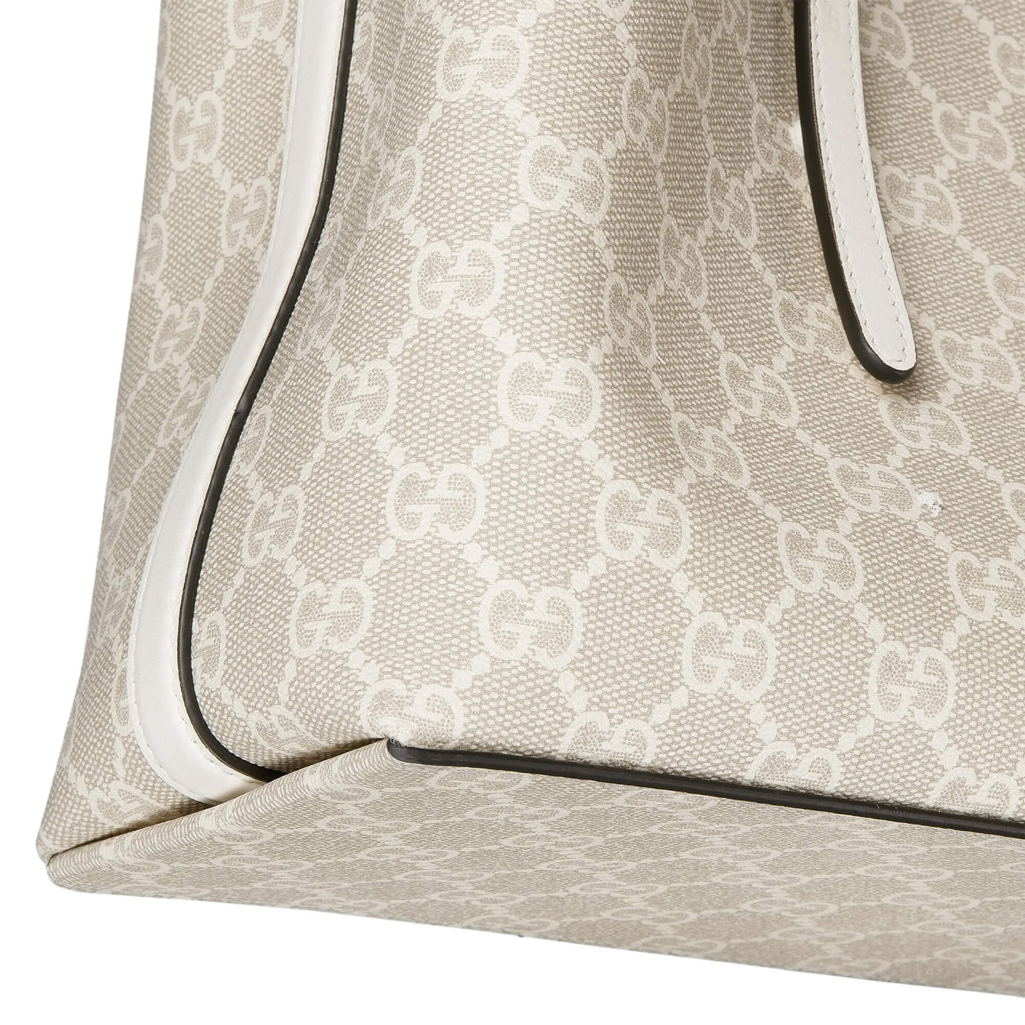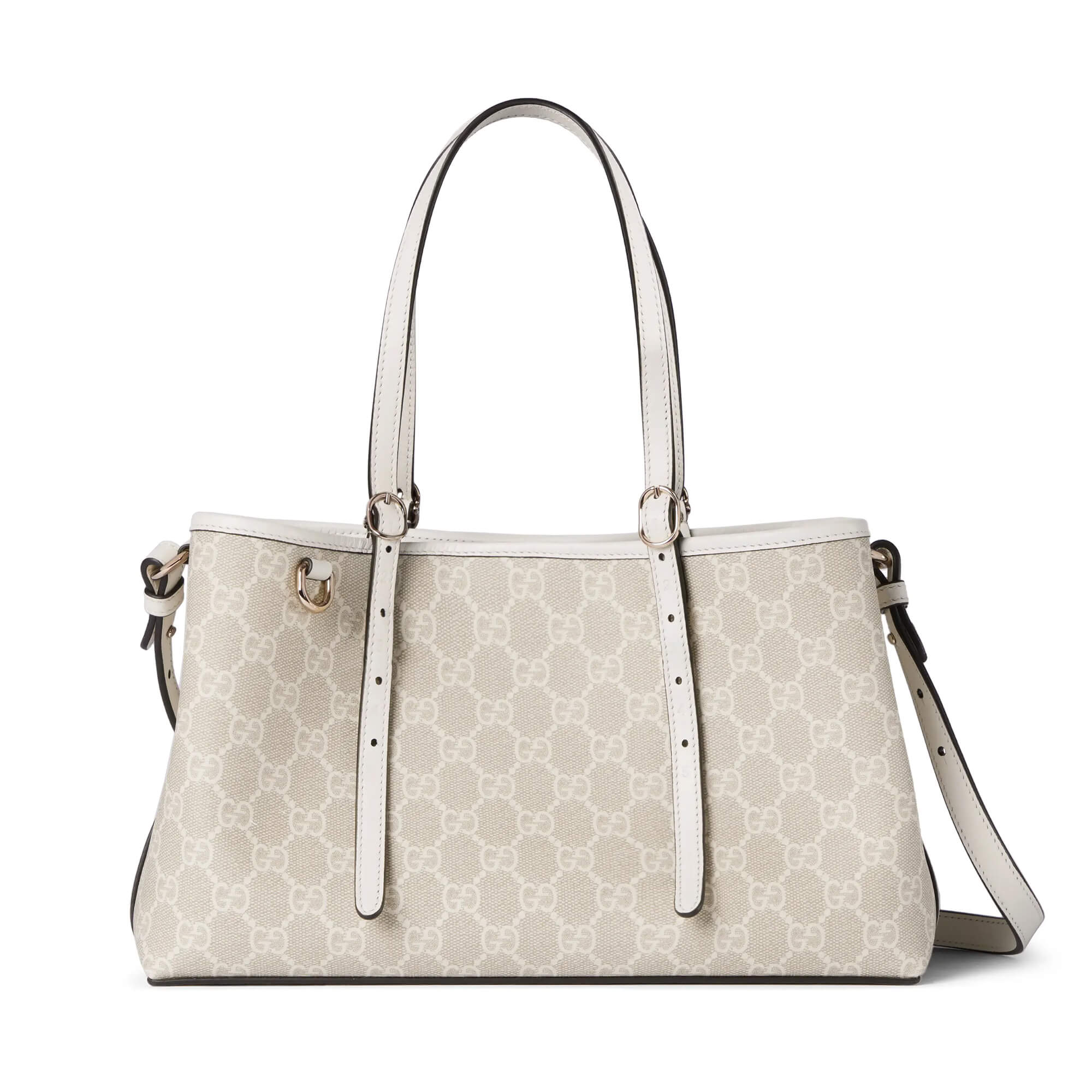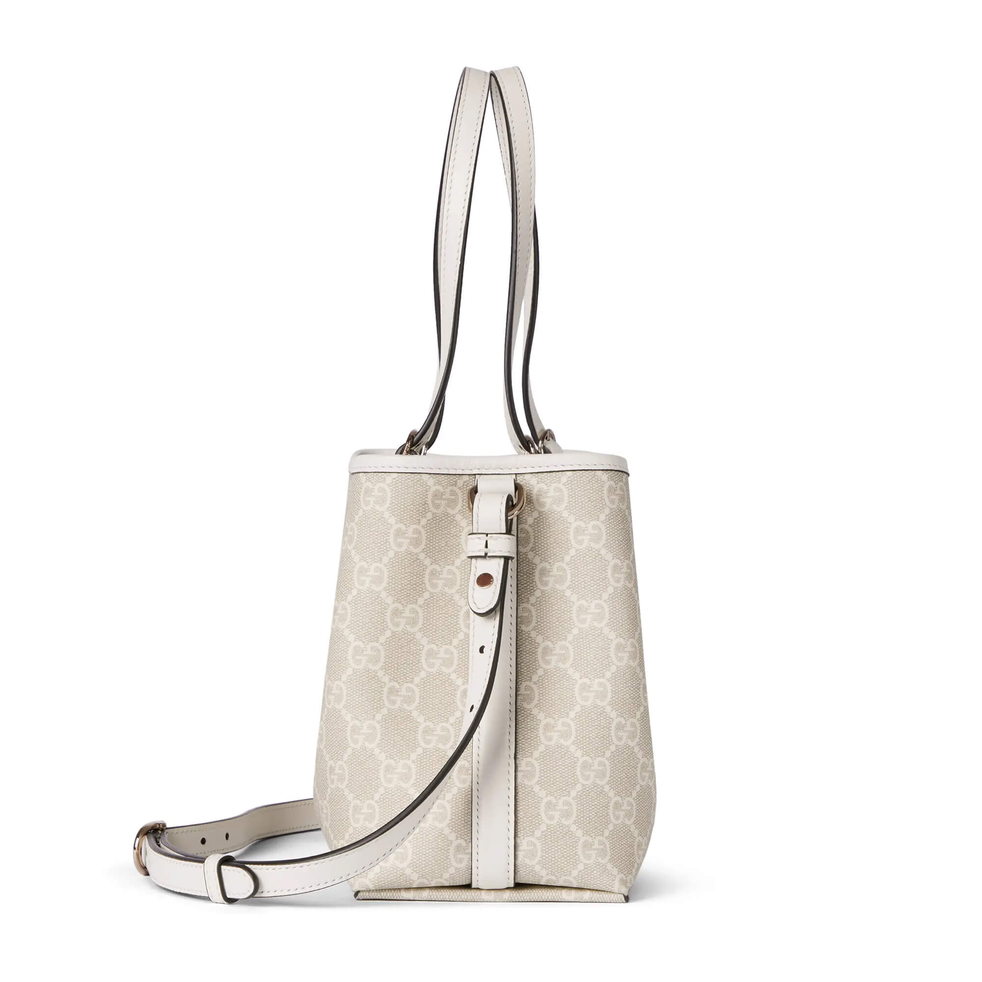 תיק בינוני מבד GG Monogram מצופה בצבע בז׳ ולבן