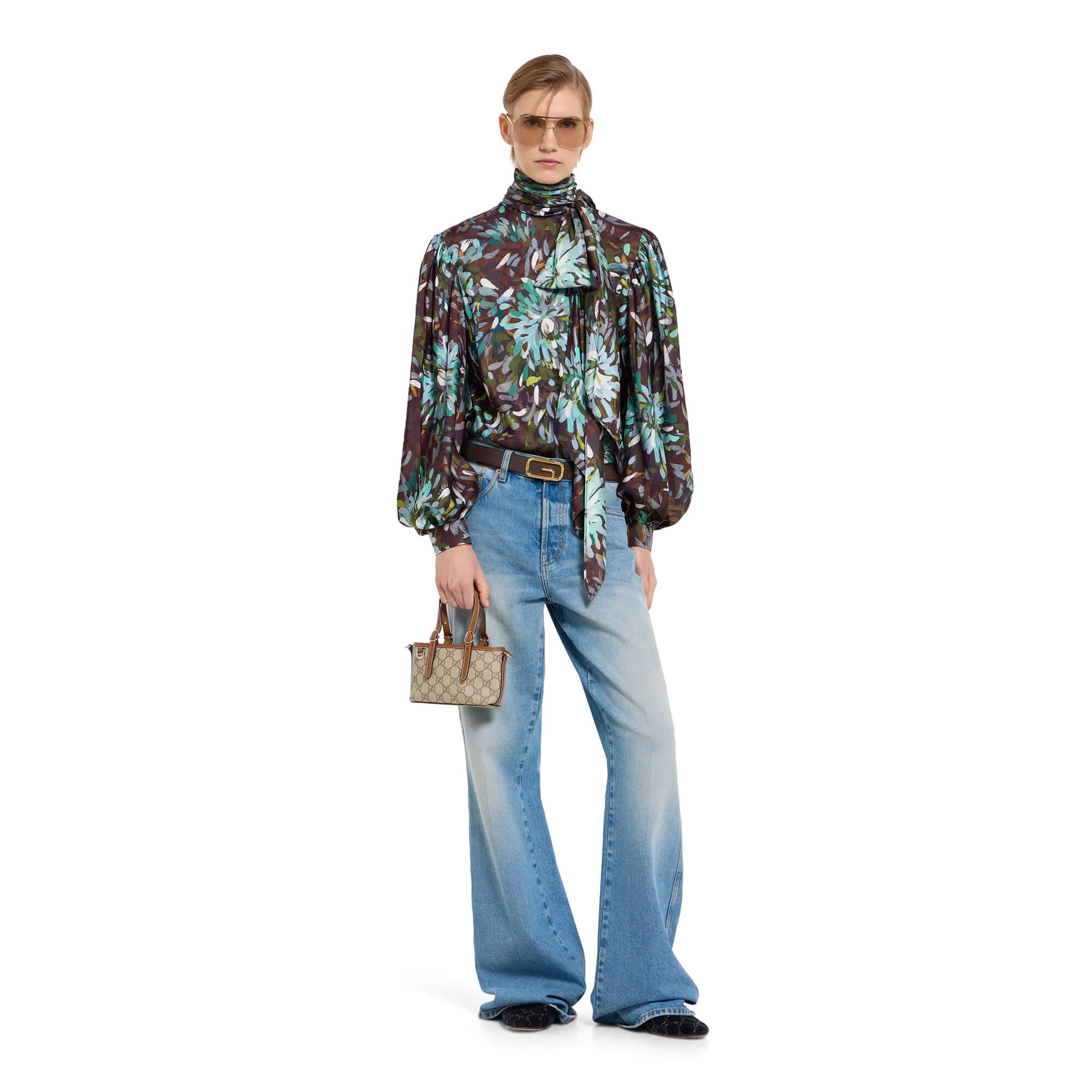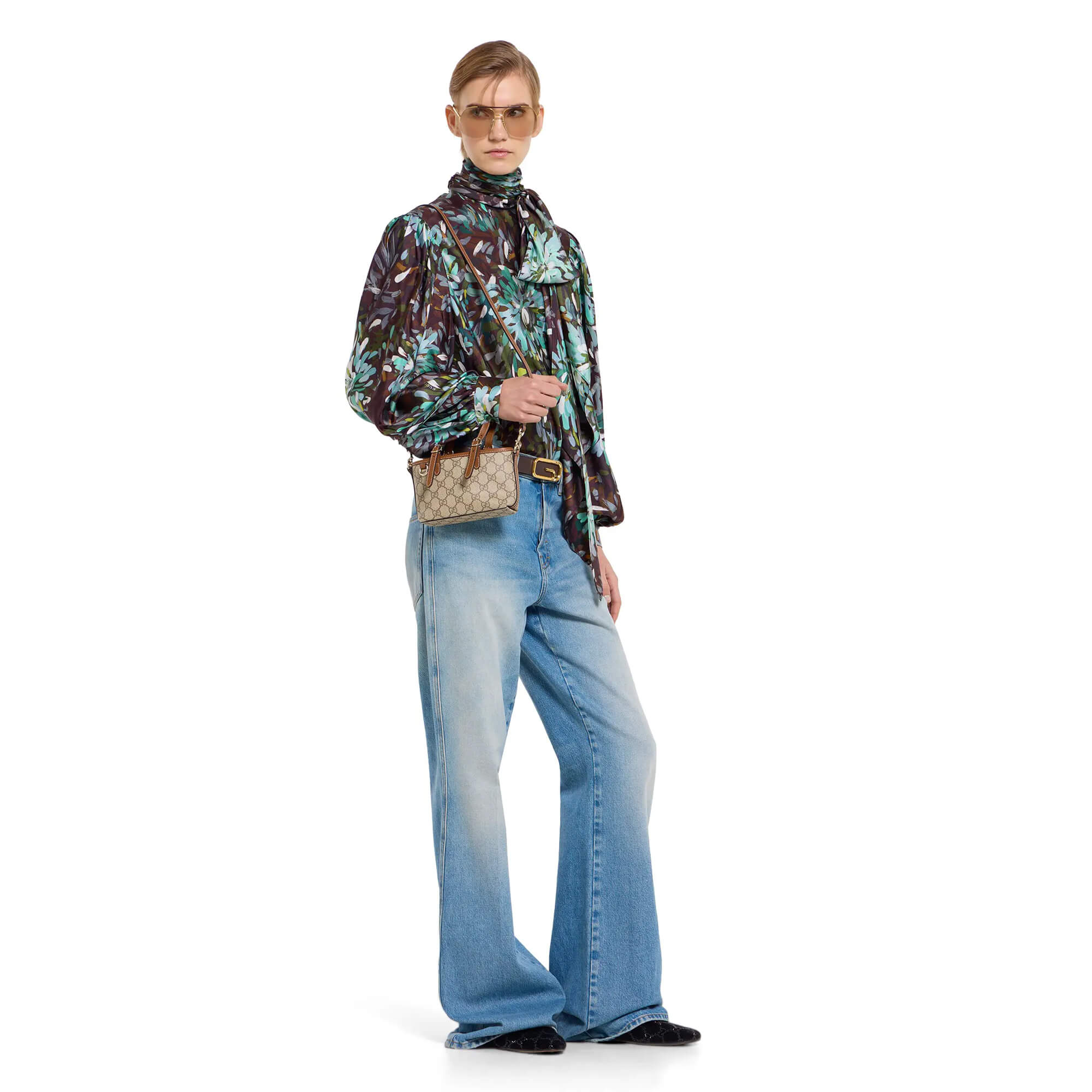 אריג GG Monogram מצופה בצבע בז׳ וחום