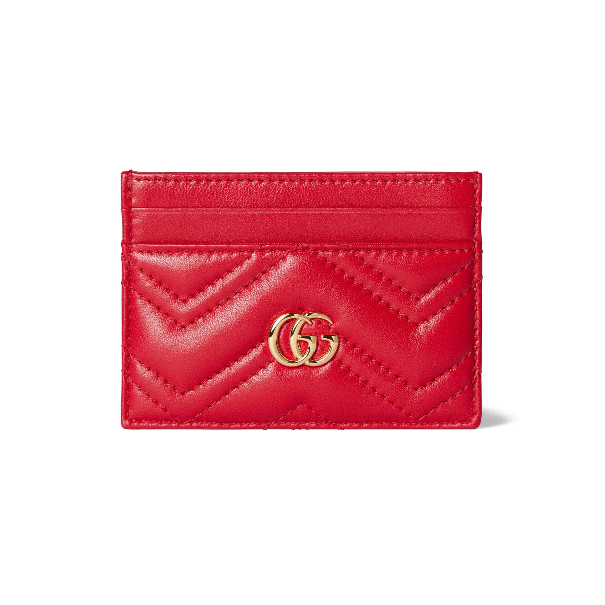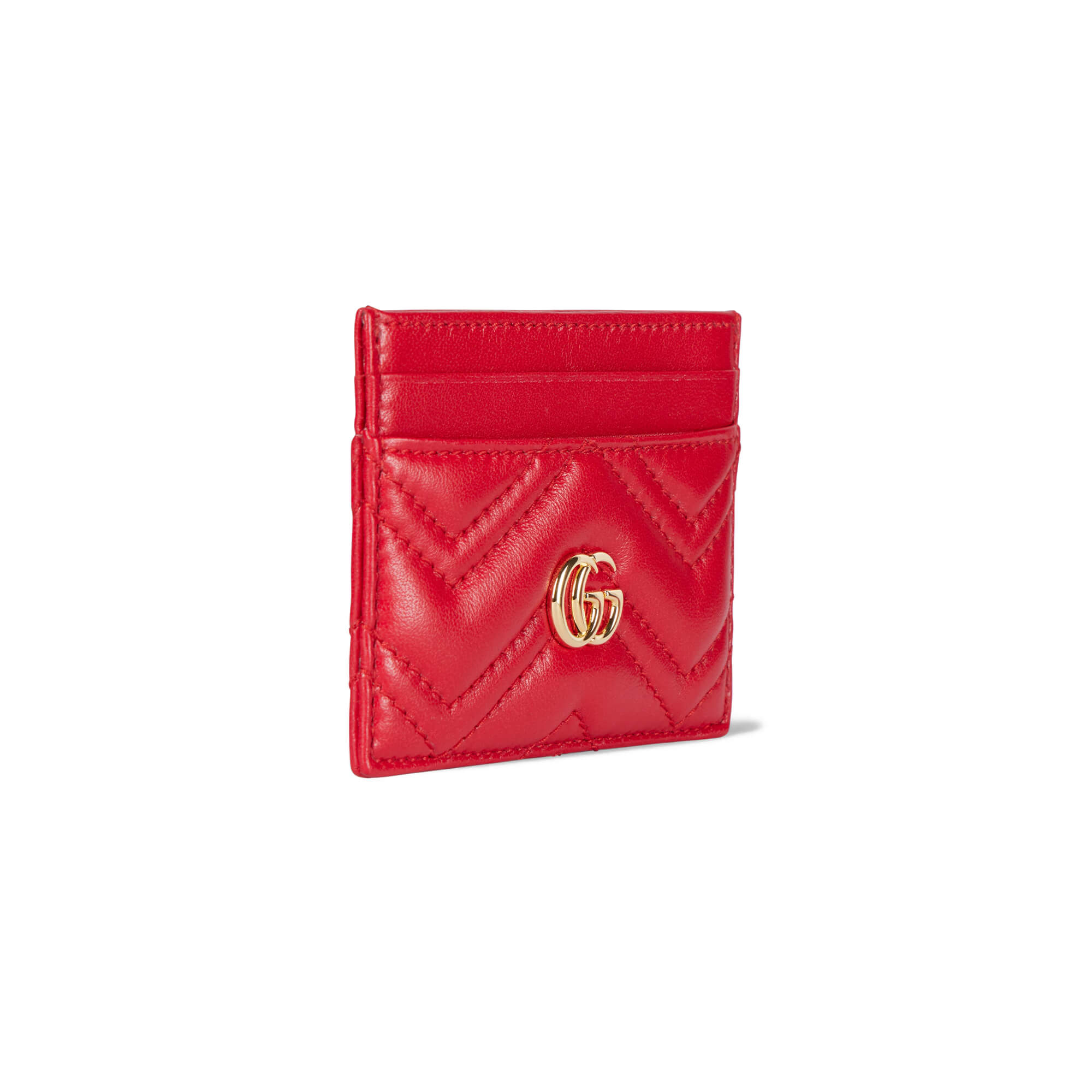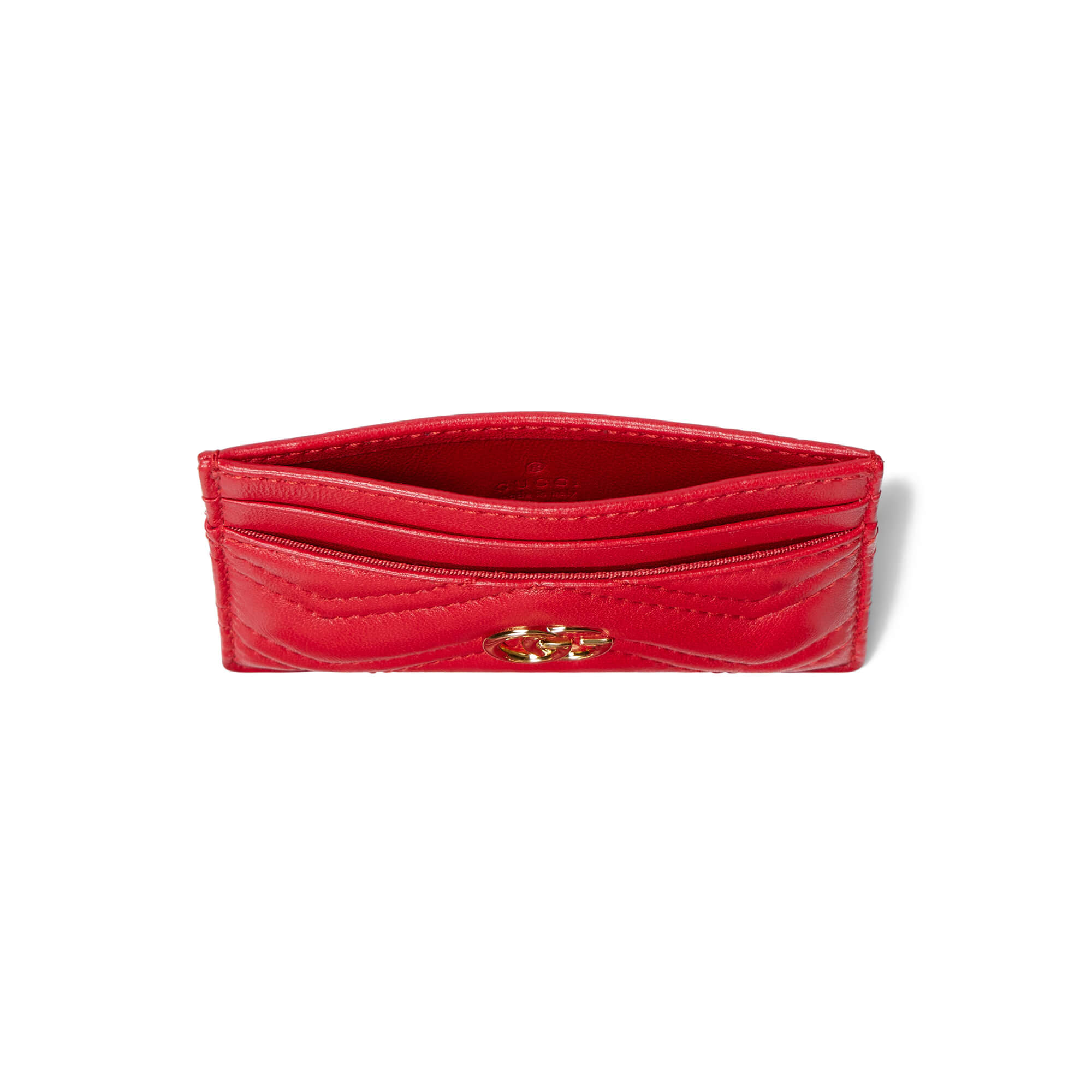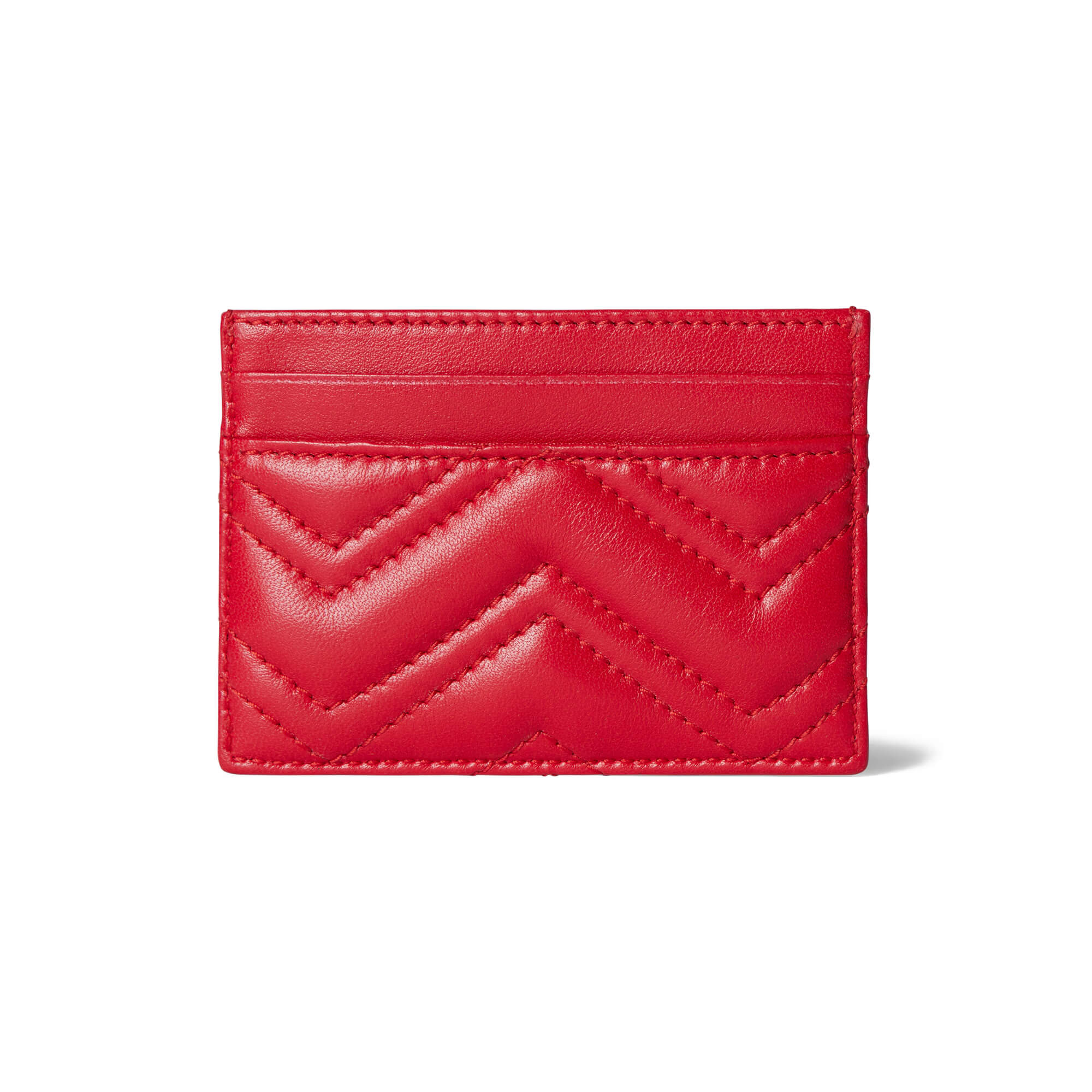 ארנק כרטיסים מעור נאפה matelassé עם תיפורים בדוגמת שברון בצבע אדום