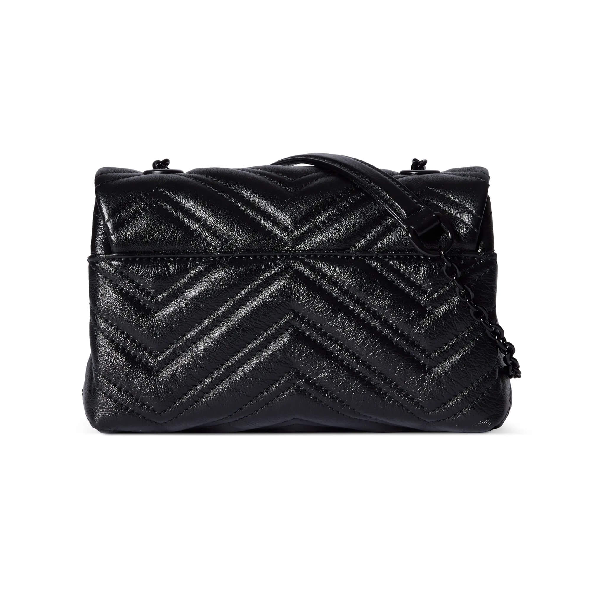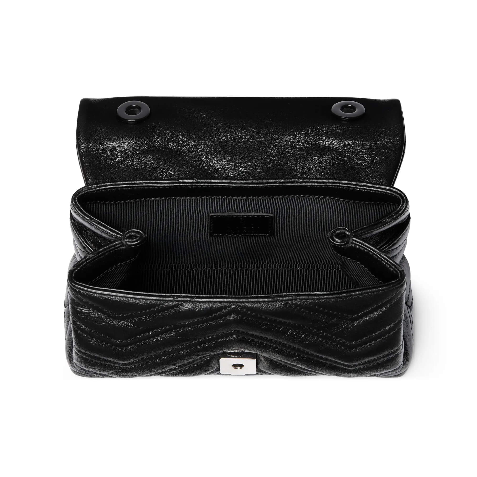 תיק מעור nappa matelassé בצבע שחור עם תיפורים בדוגמת שברון