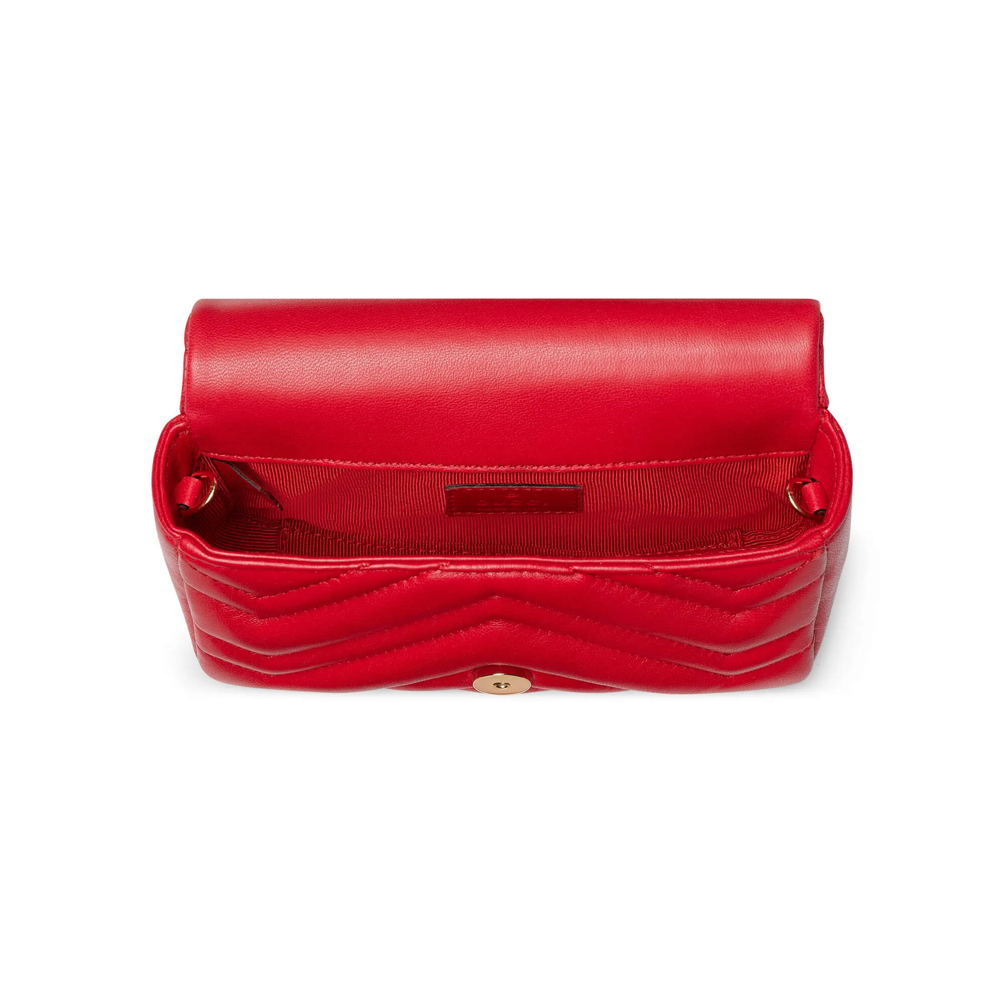 תיק מיני מעור נאפה בצבע אדום עם תיפורים בדוגמת שברון