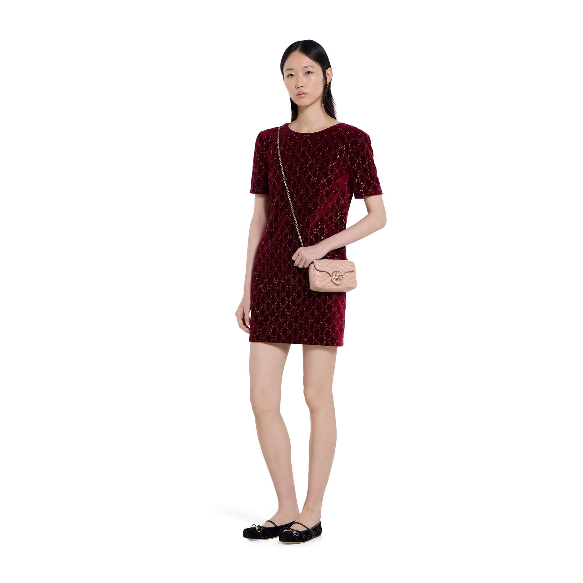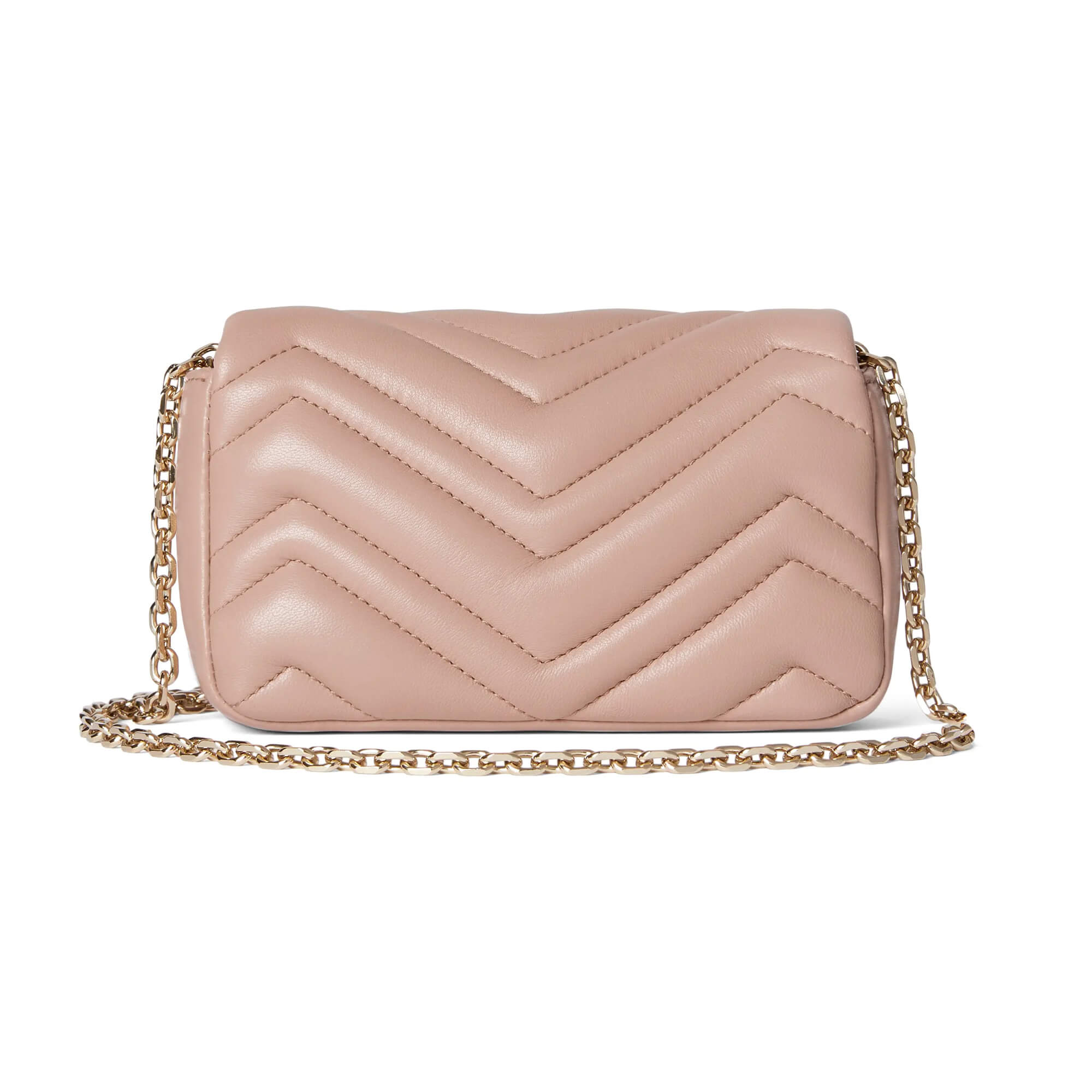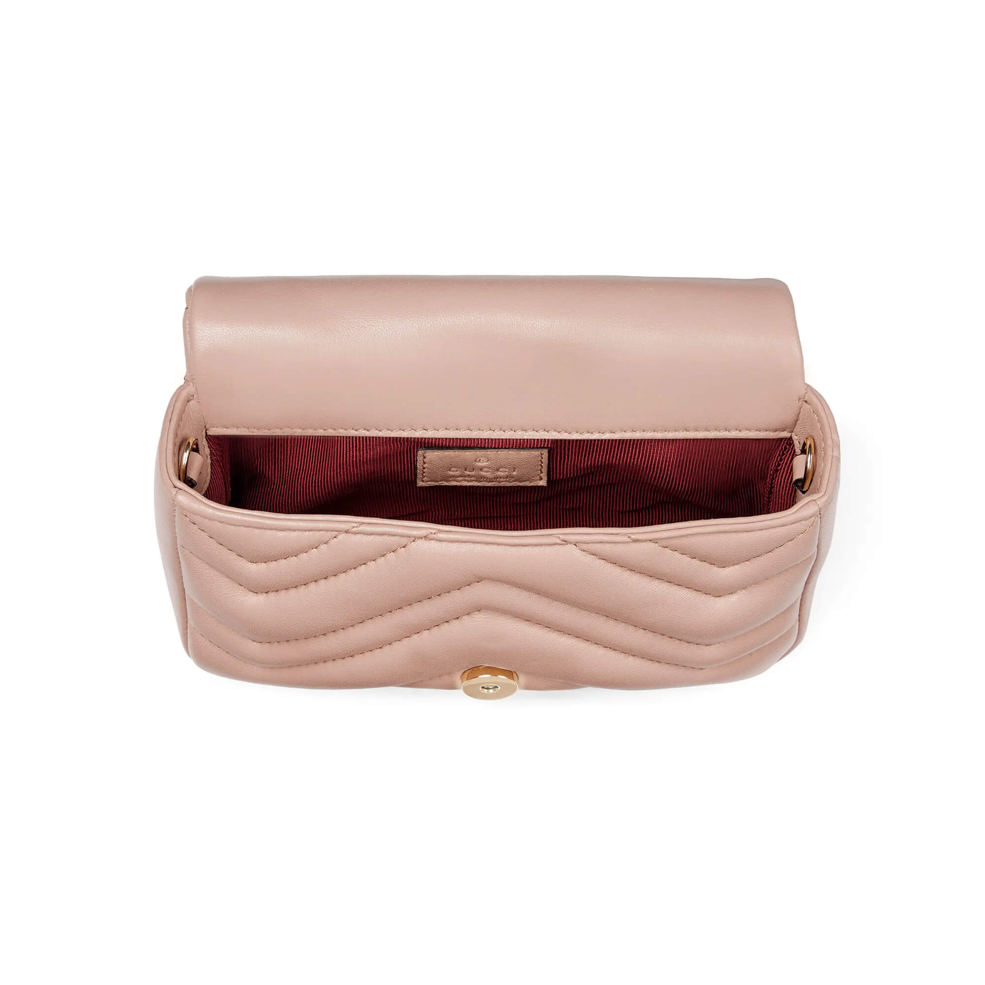 עור נפה matelassé עם תיפורים בדוגמת שברון בצבע בז׳-ורוד