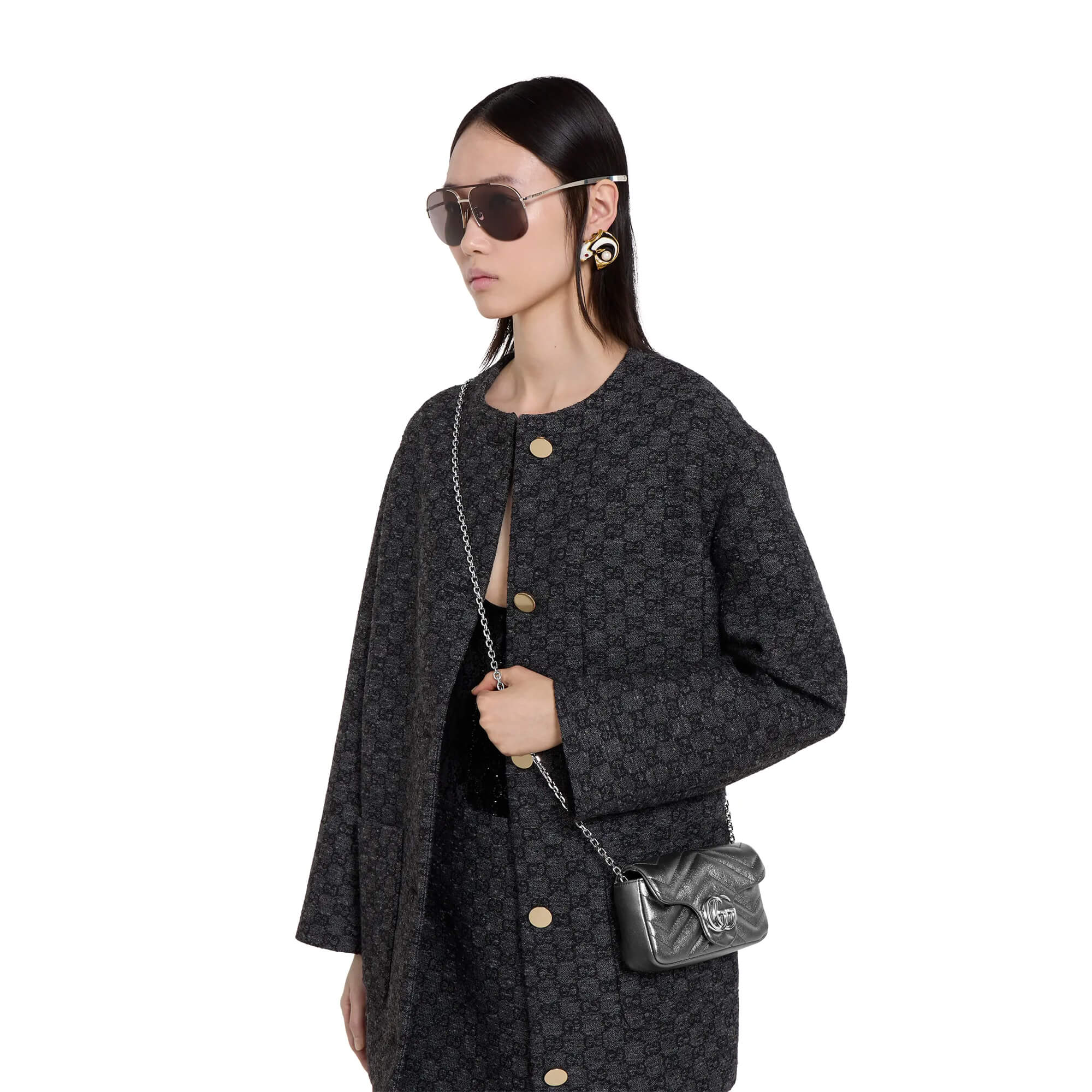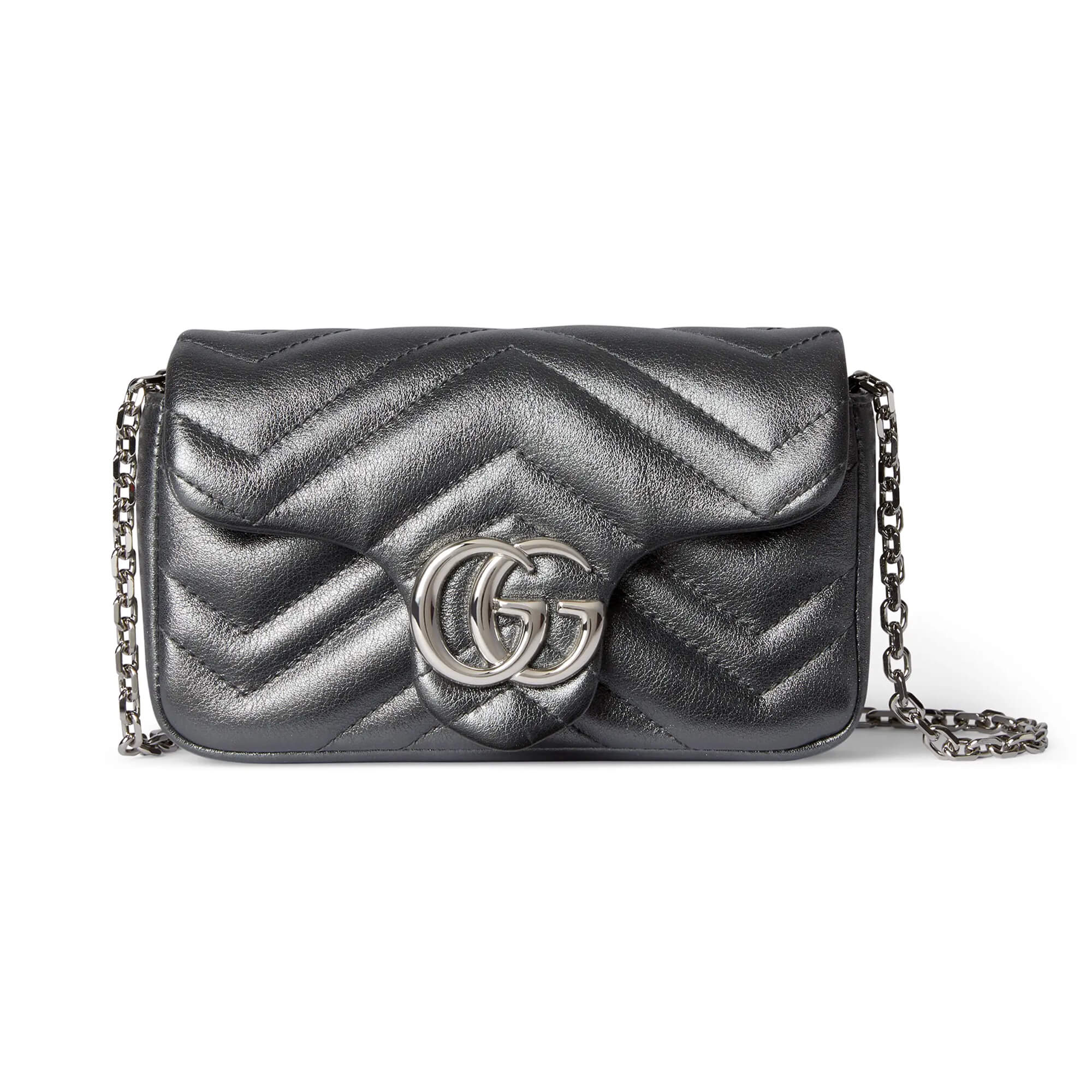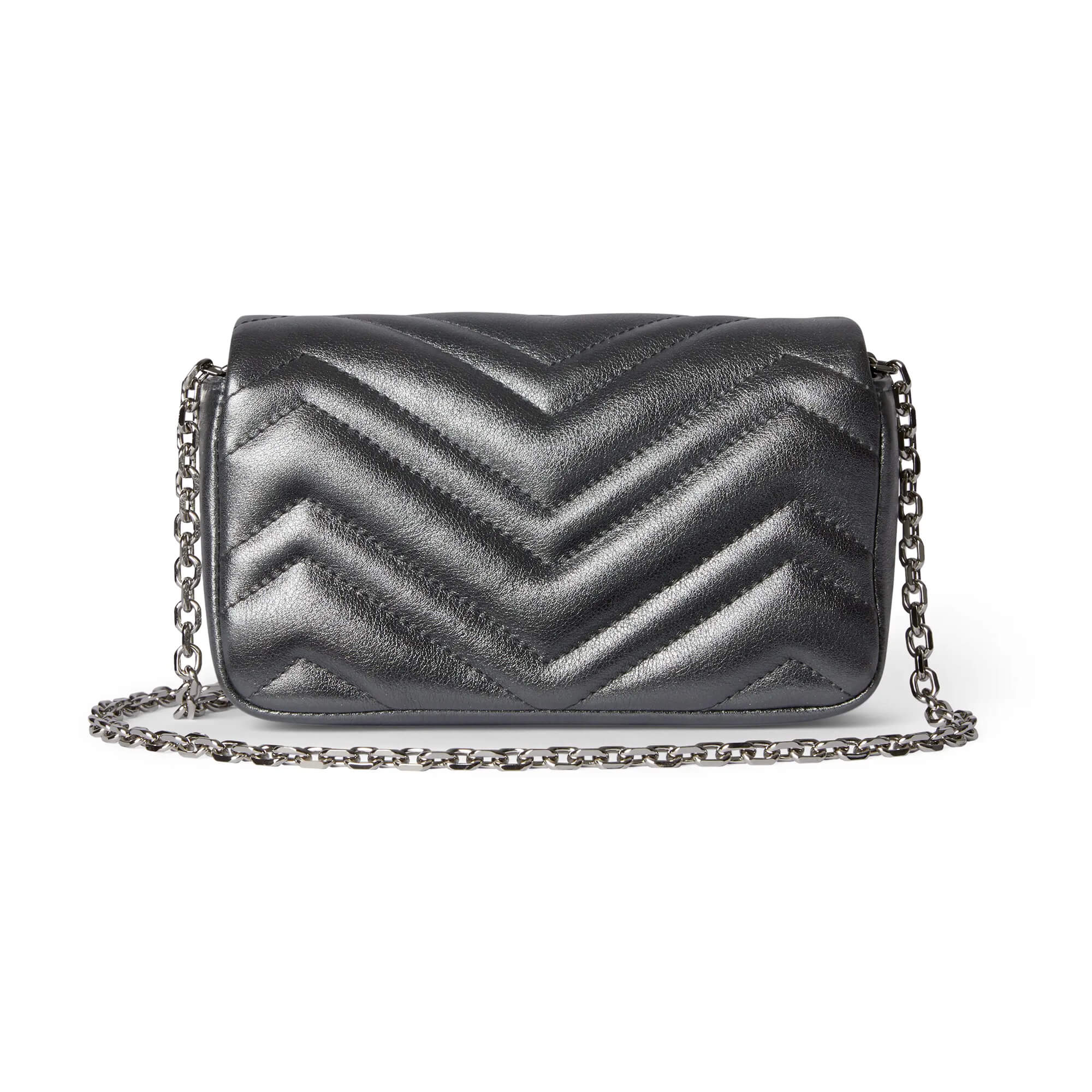 עור lamé עם תיפורים בדוגמת שברון בצבע אפור כהה