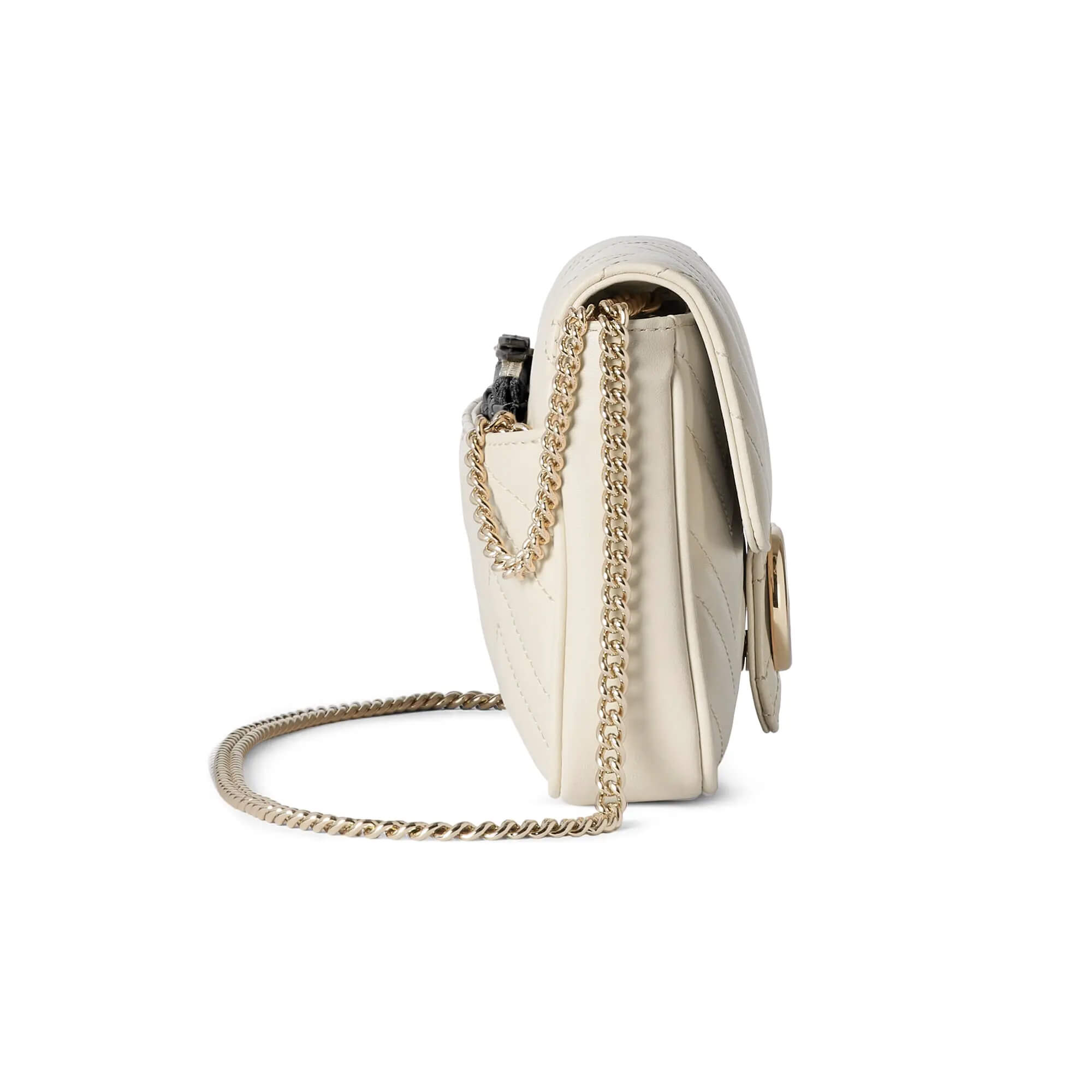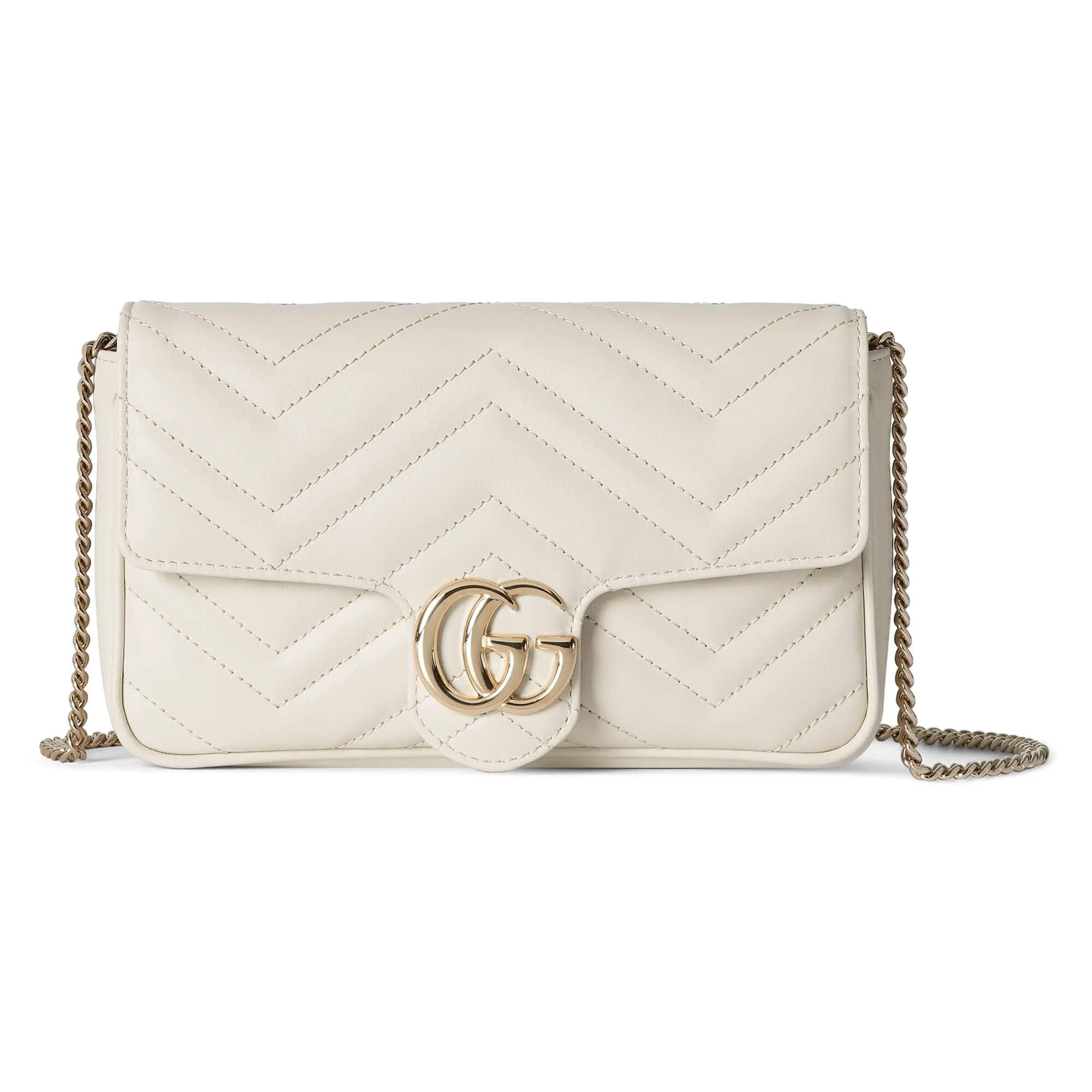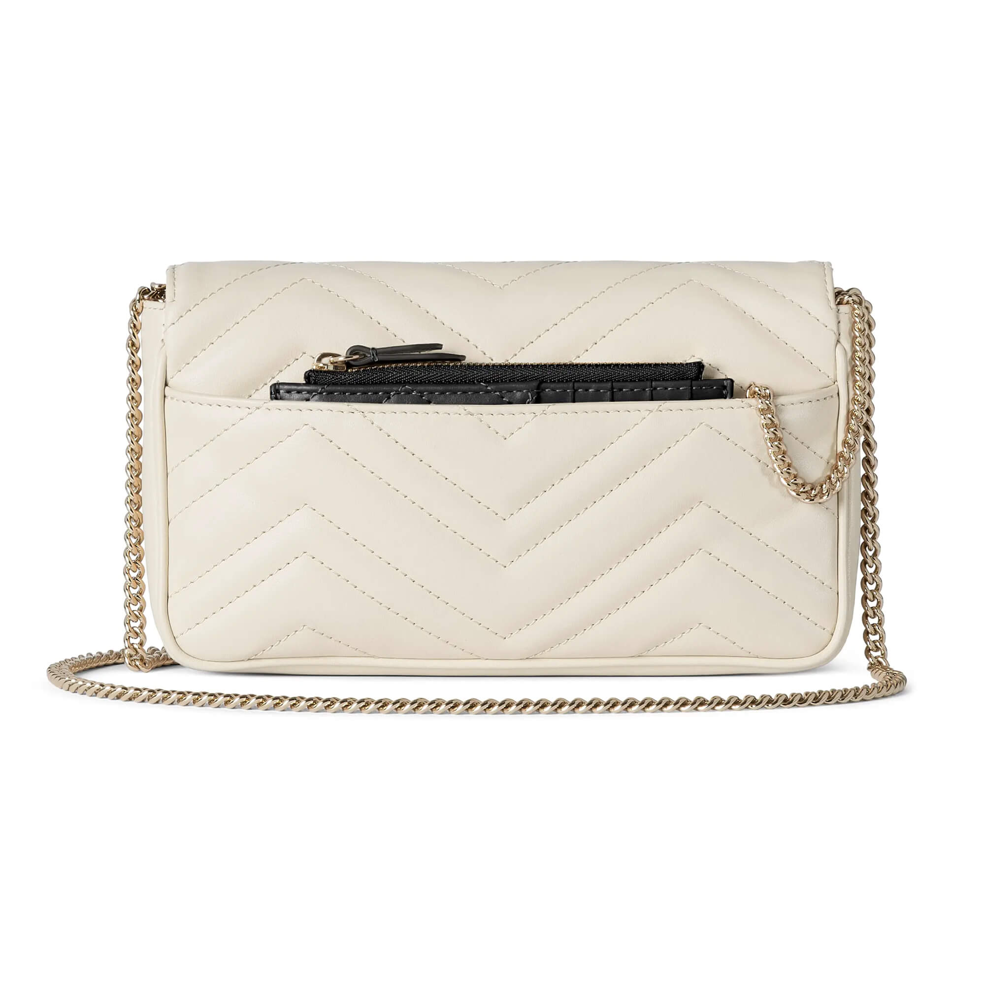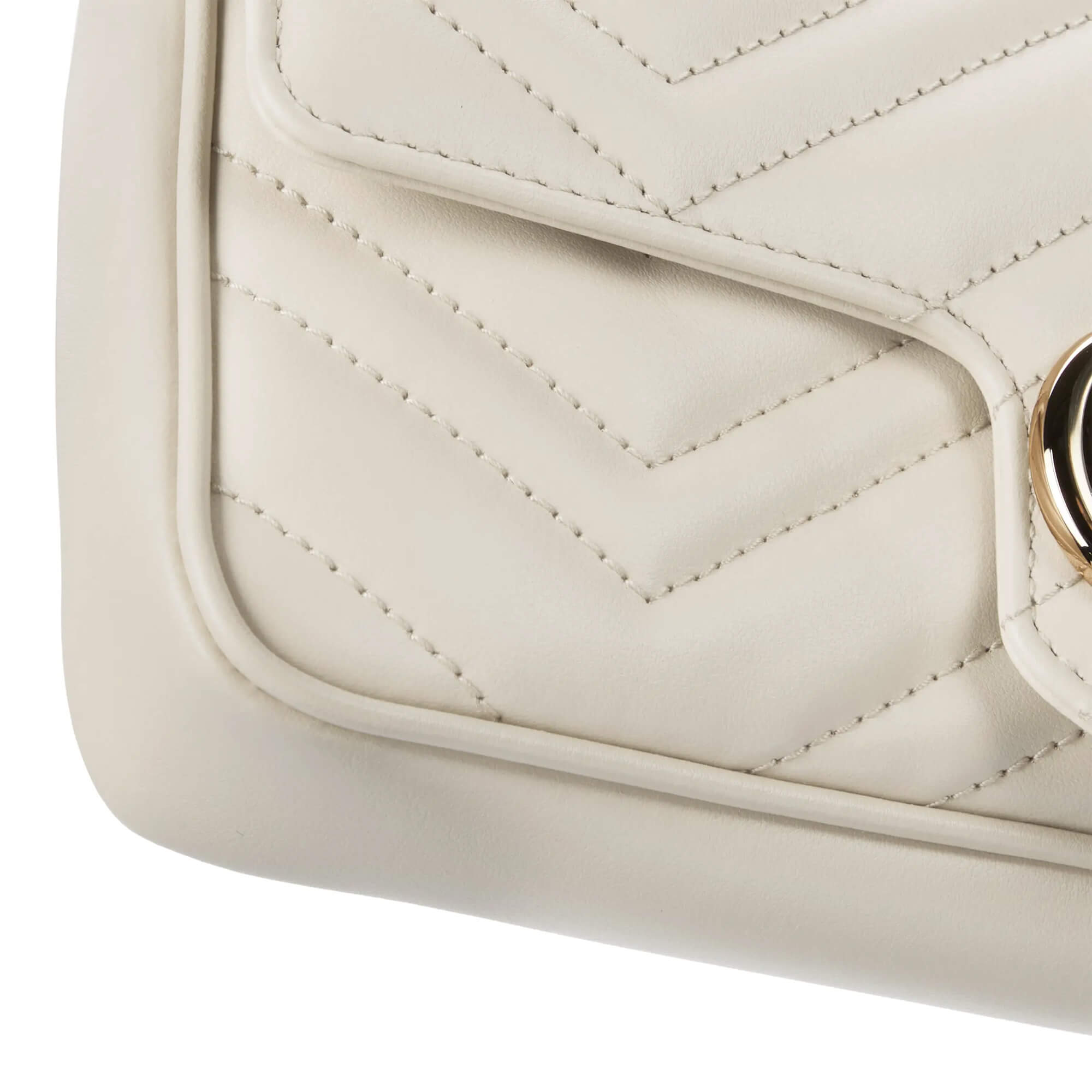 תיק עור matelassé בצבע לבן עם תיפורים בדוגמת שברון