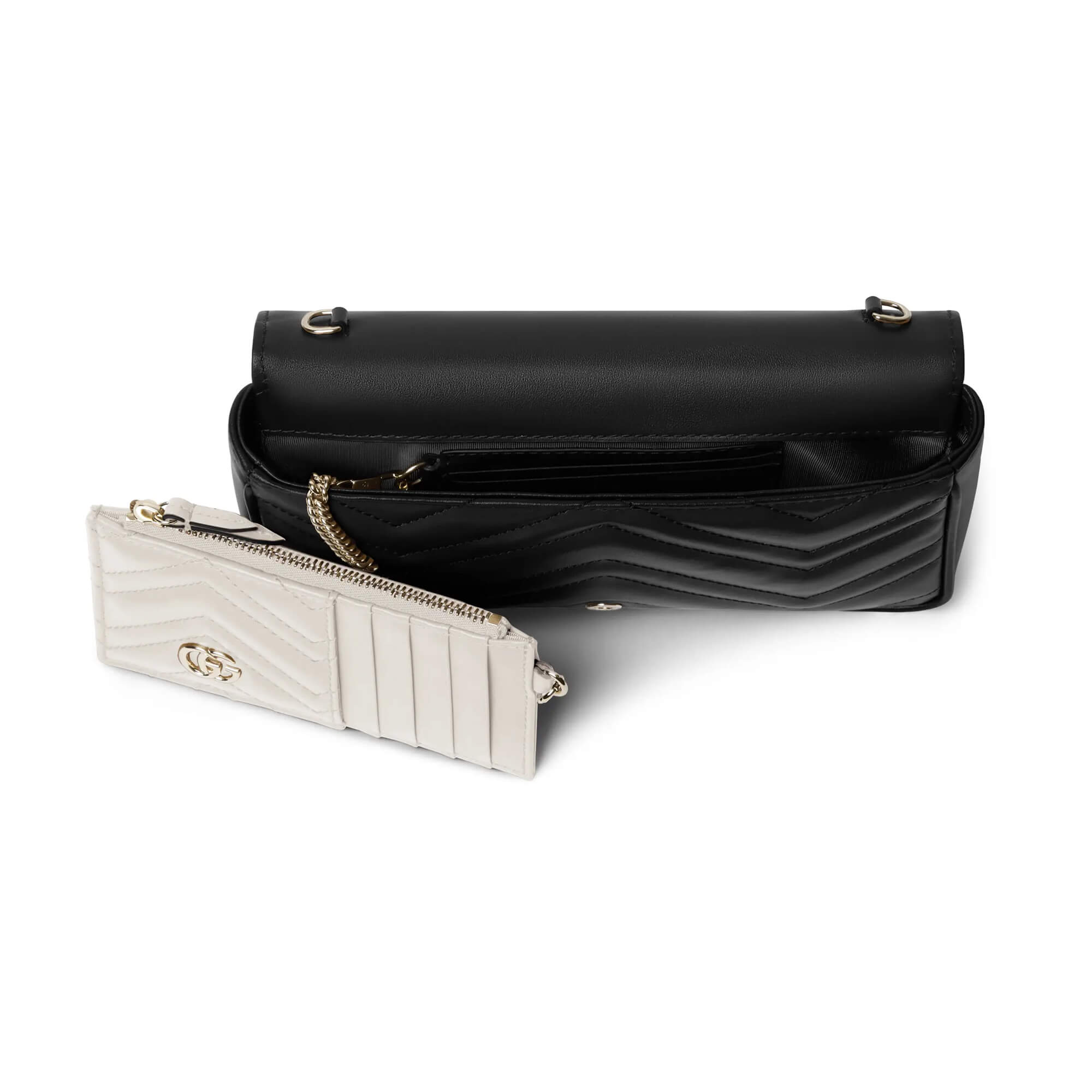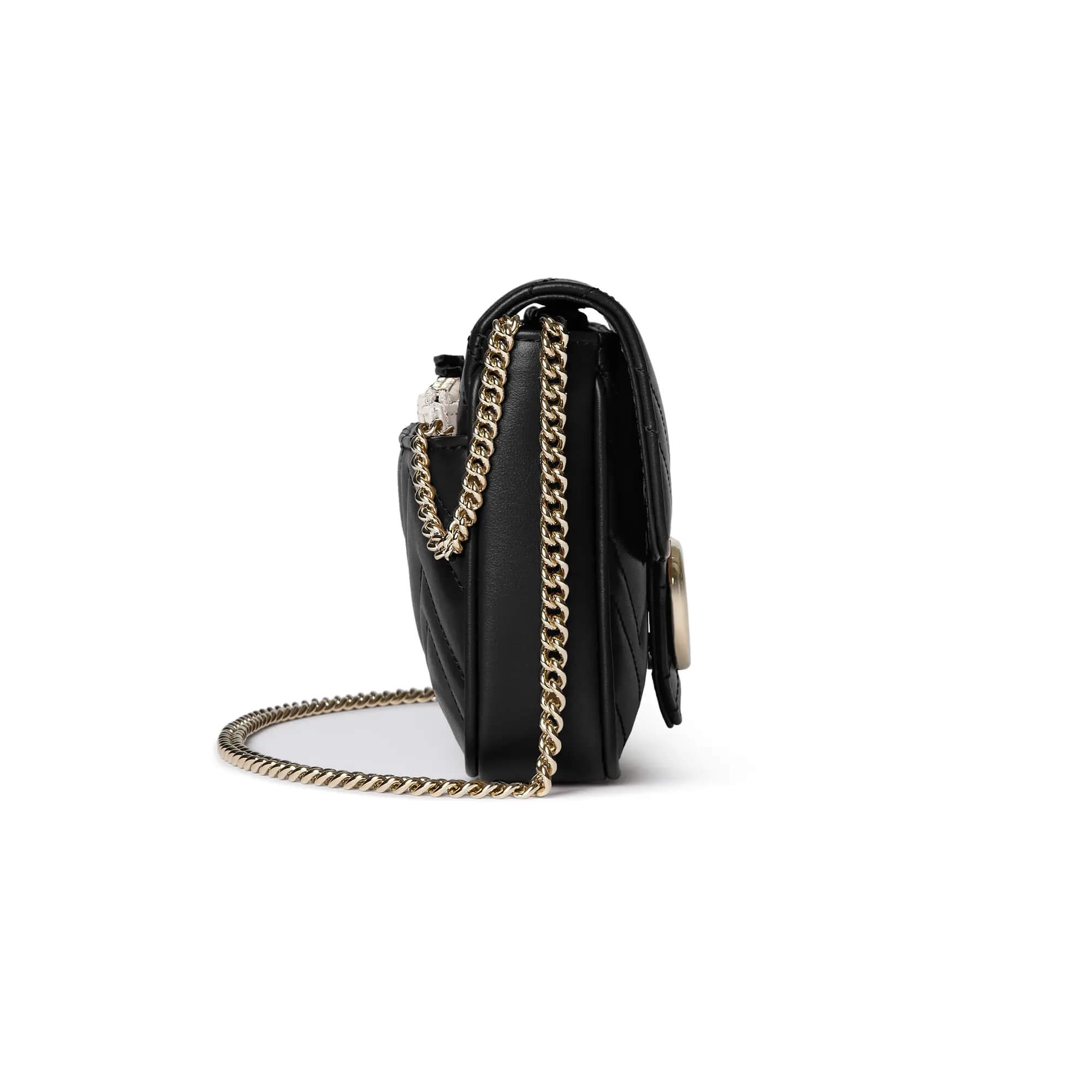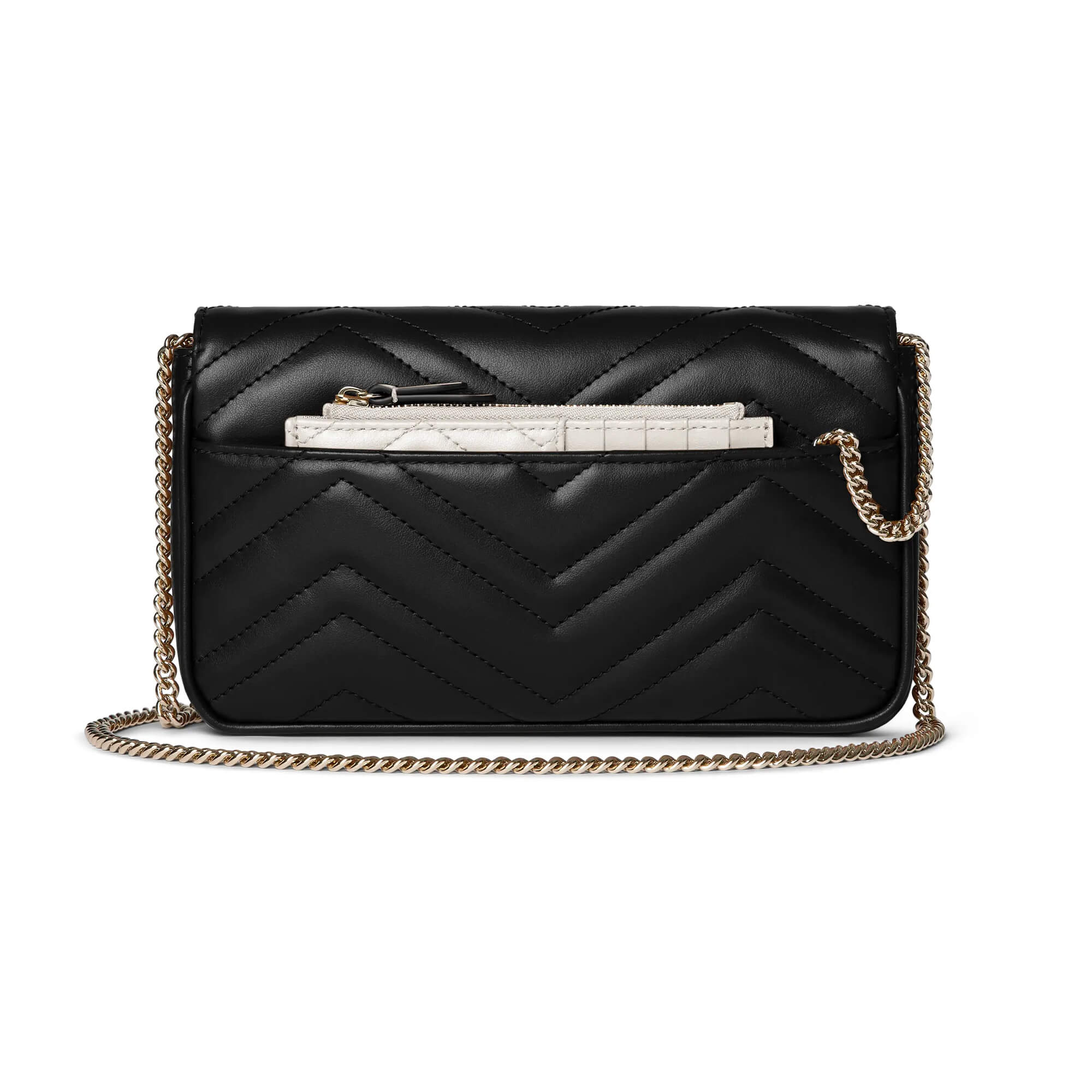 תיק עור matelassé בצבע שחור עם תיפורים בדוגמת שברון
