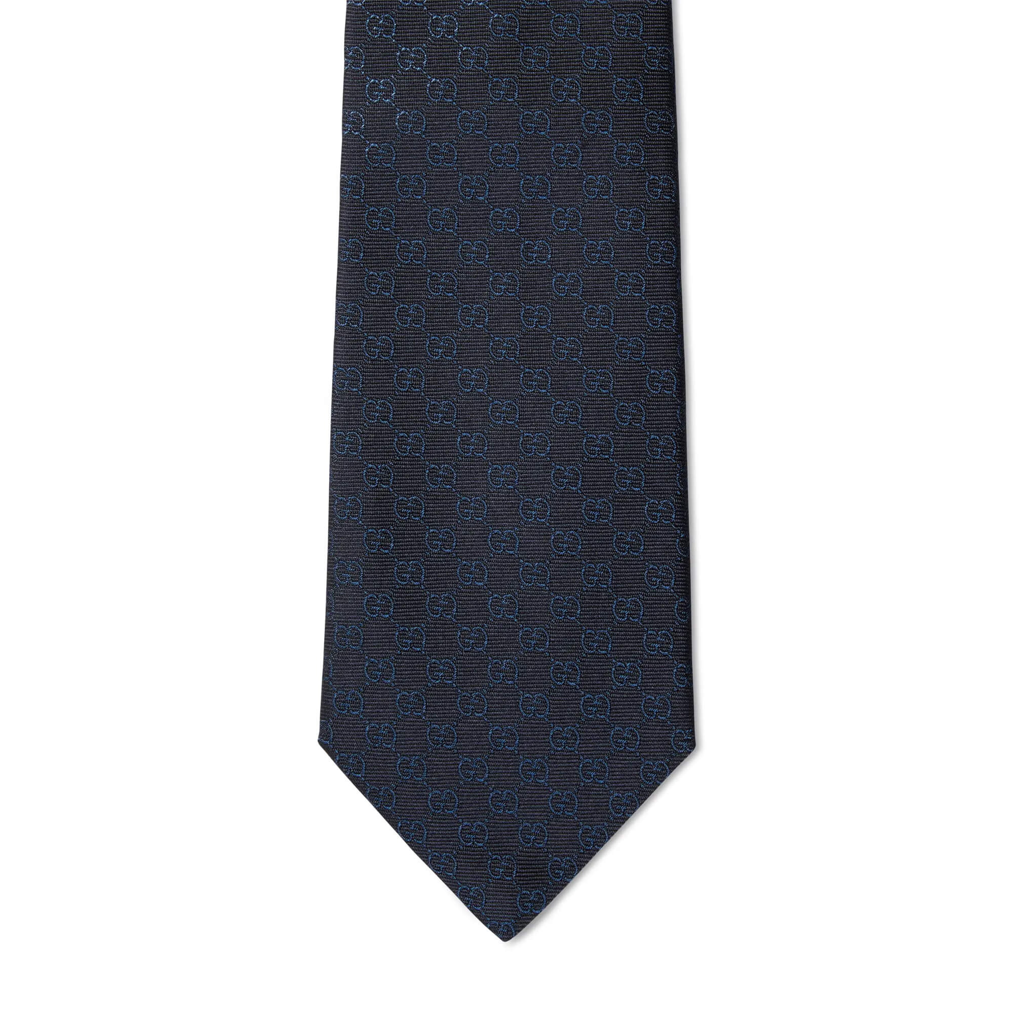 אריג ז׳קארד GG ממשי בגווני כחול כהה וכחול בהיר