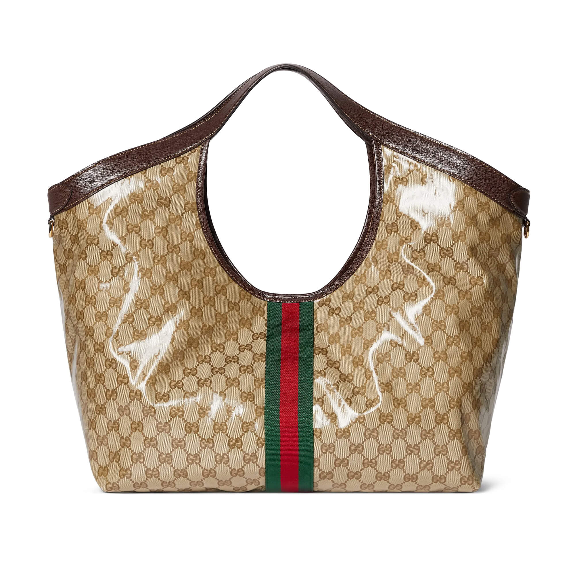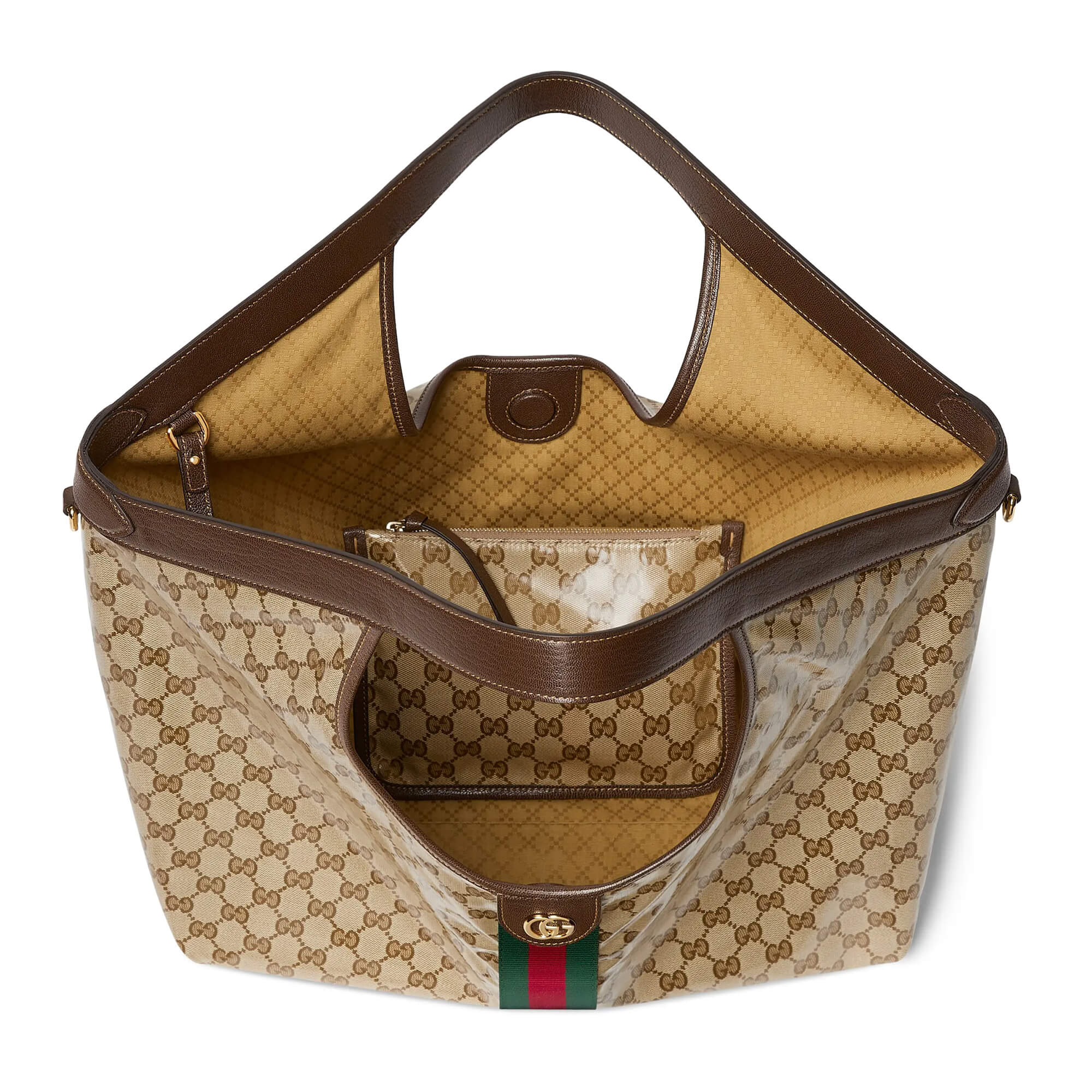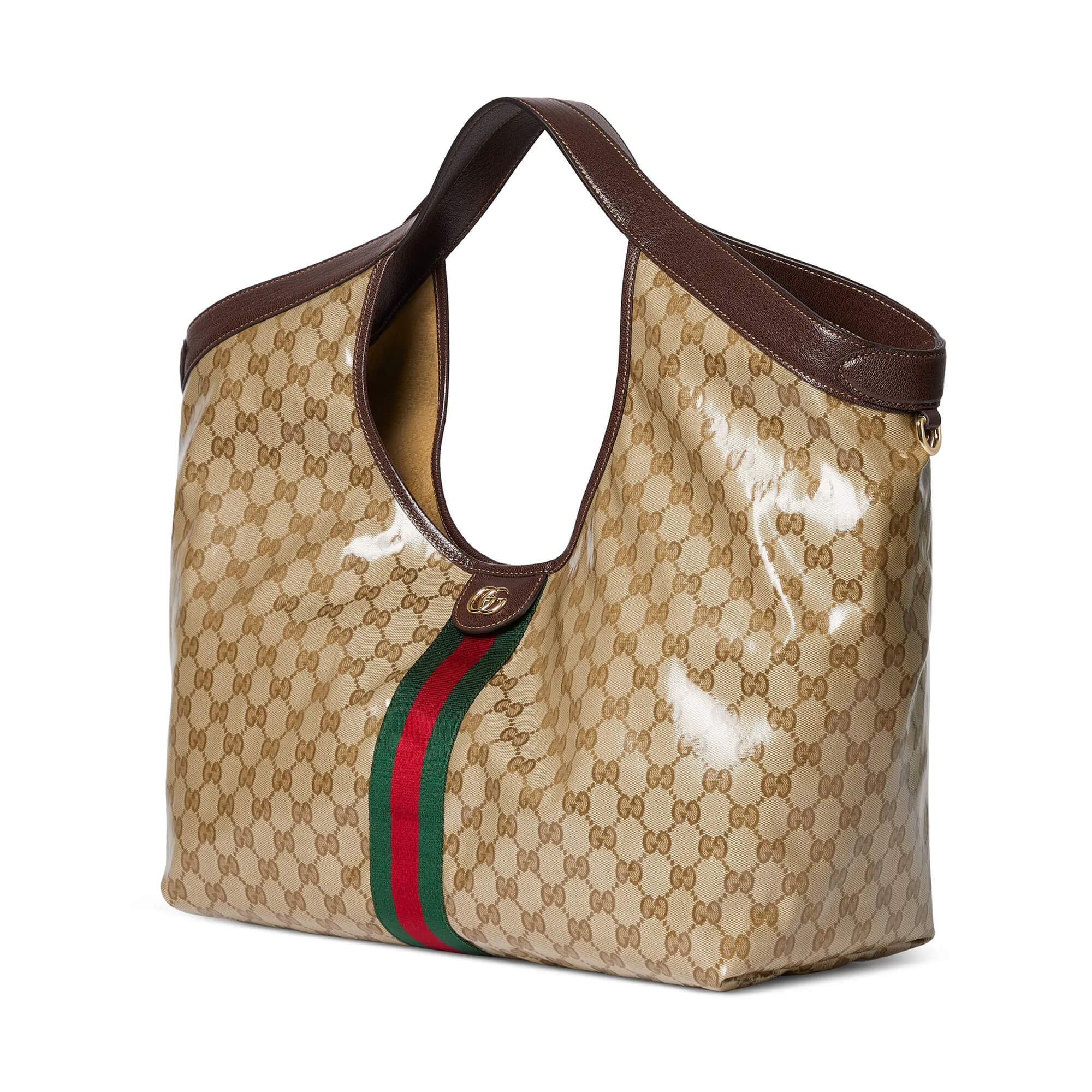 תיק גדול מאריג GG רך מצופה ומבריק בצבע חול וחום