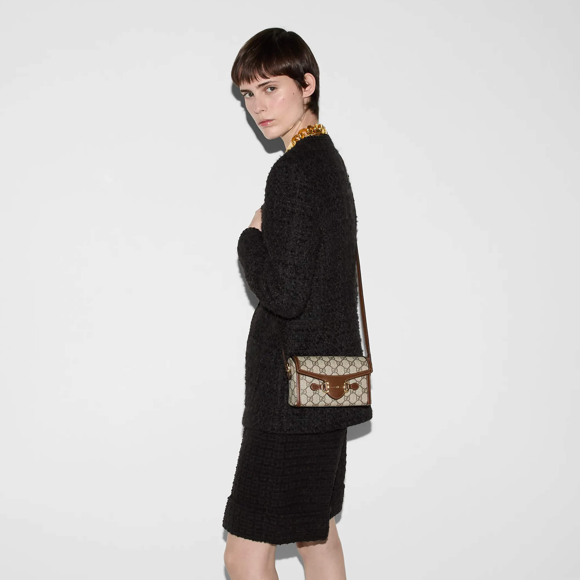 תיק מיני מאריג GG Supreme בצבע בז׳ וחום
