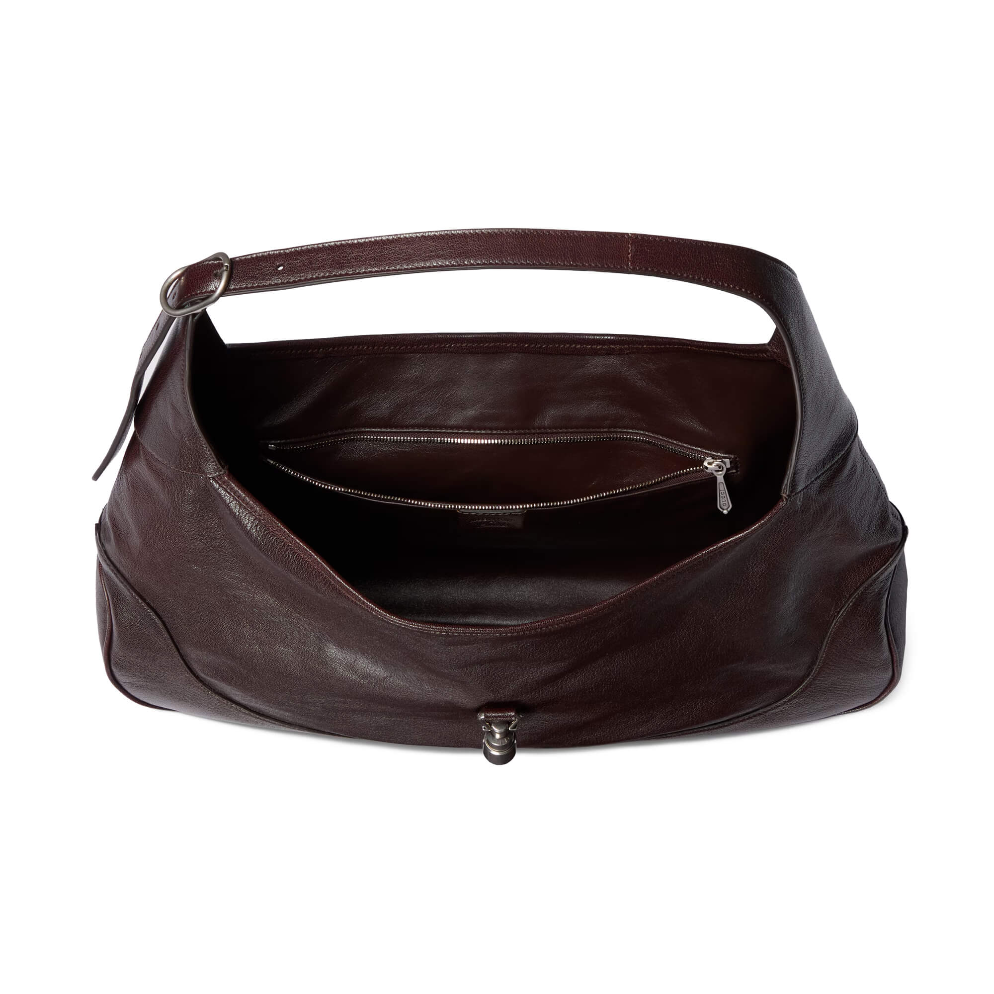 תיק גדול מעור grainy רך בצבע חום כהה עם ברק טבעי, מיושן ידנית ליצירת מראה וינטג׳