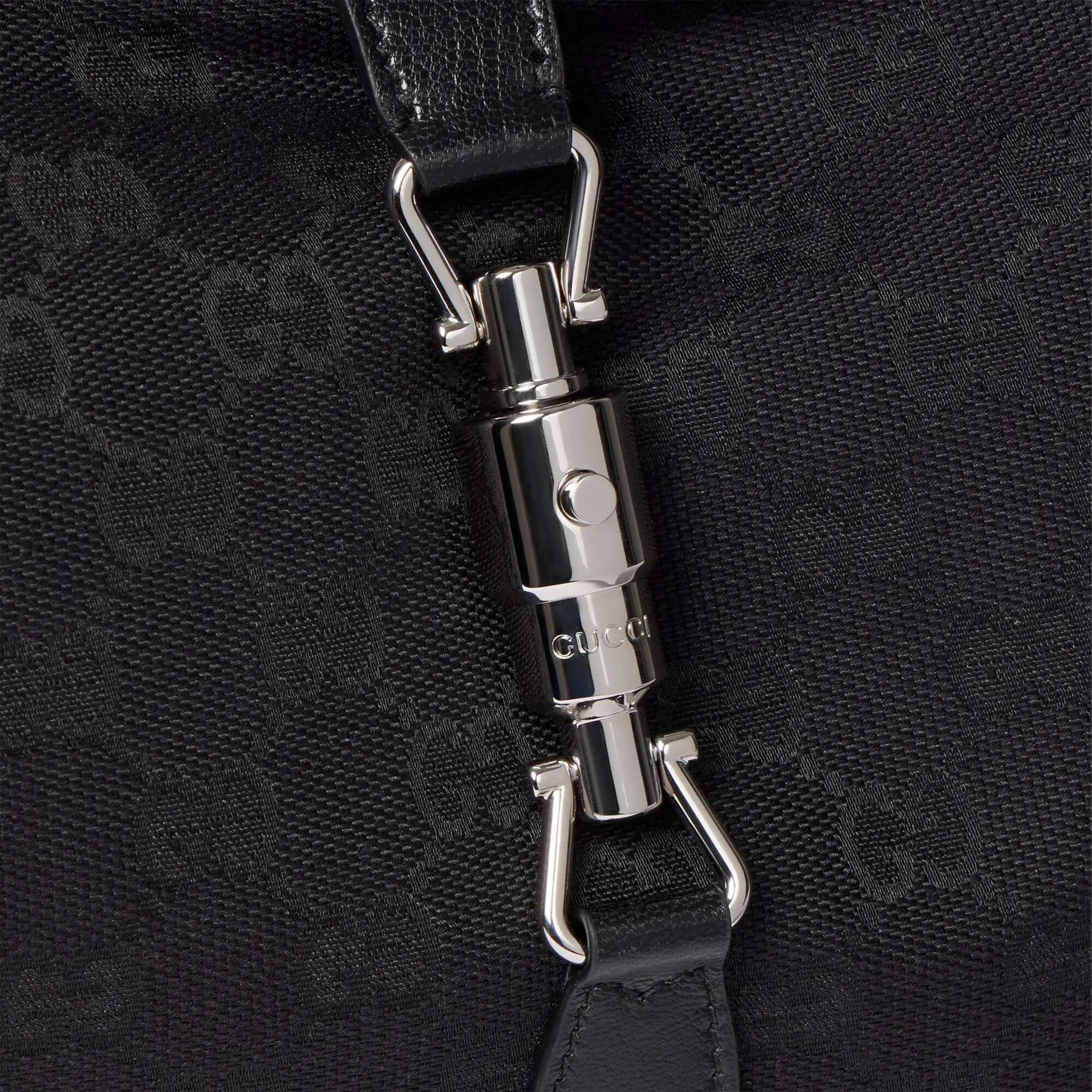 תיק בינוני מבד קנבס GG בצבע שחור בשילוב עור grainy רך בצבע שחור