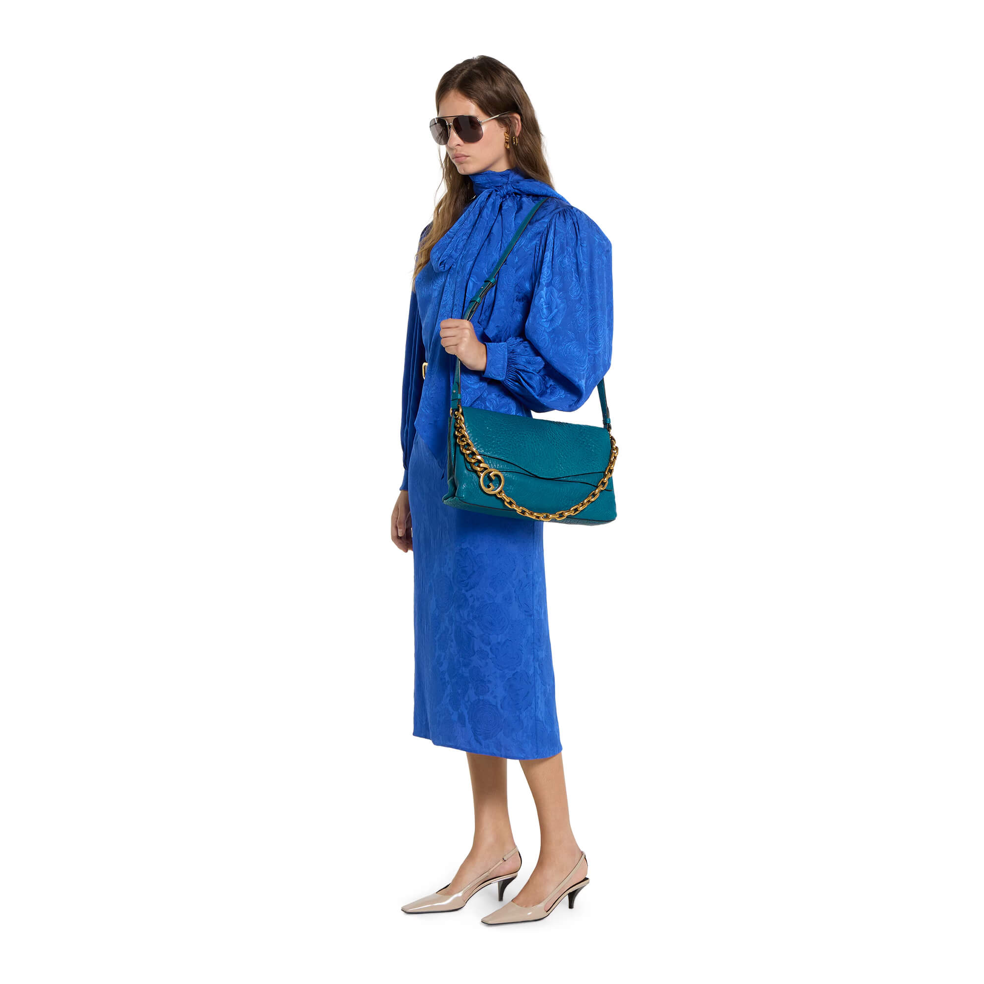 רצועת שרשרת – גובה: 8 ס״מ. רצועת עור מתכווננת ומתנתקת: 42 ס״מ