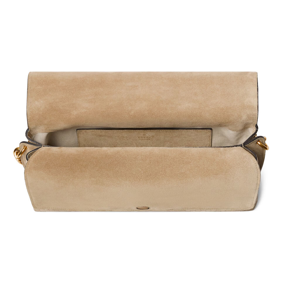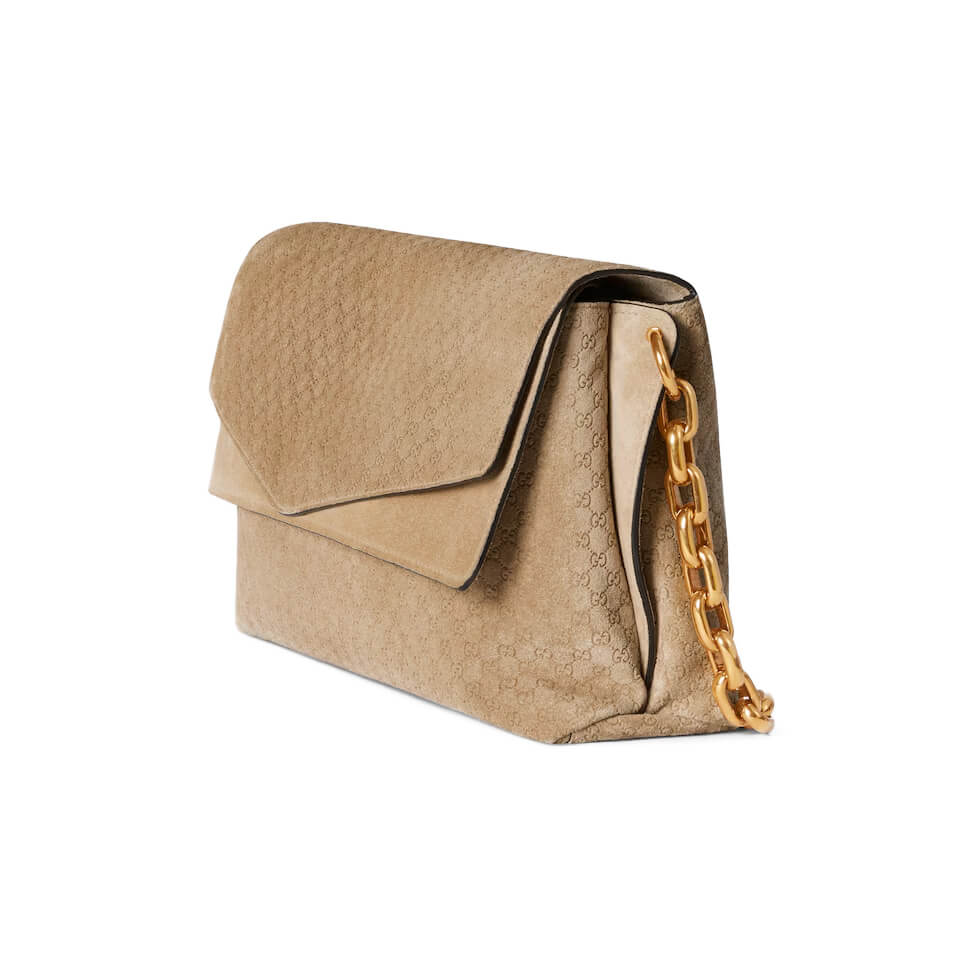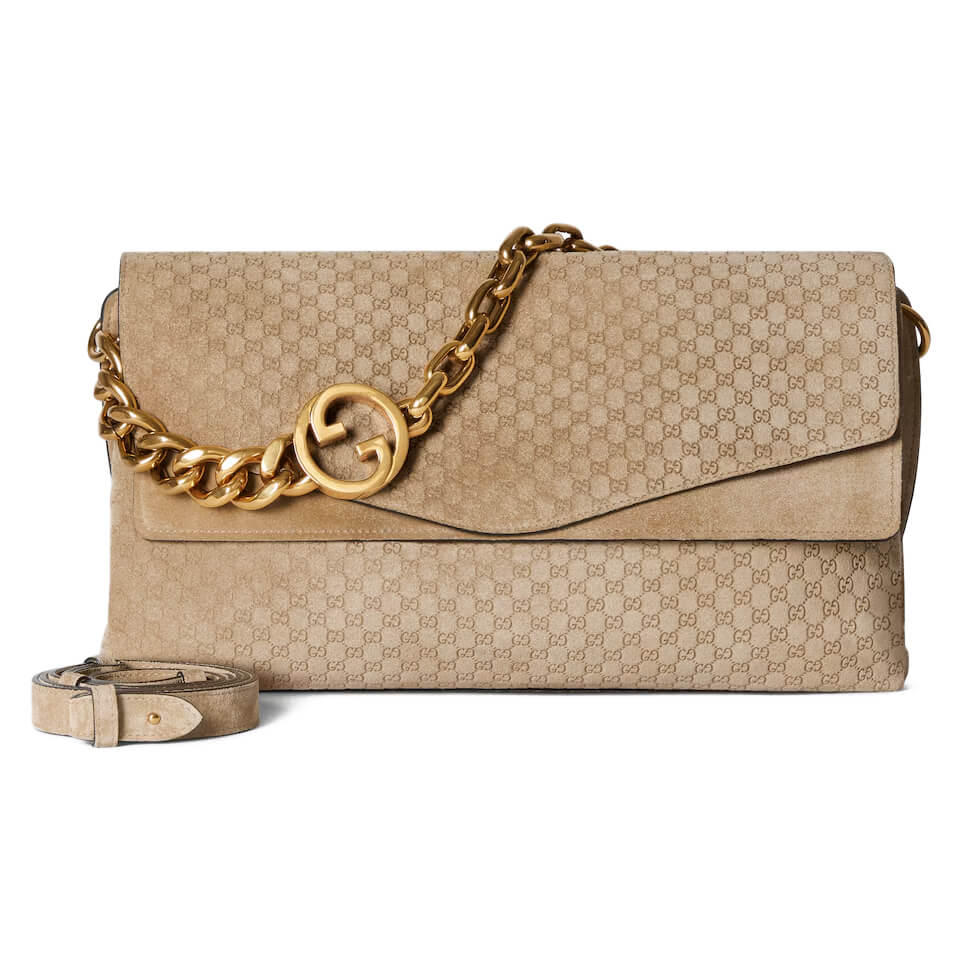 תיק גדול מזמש GG מובלט בצבע בז׳