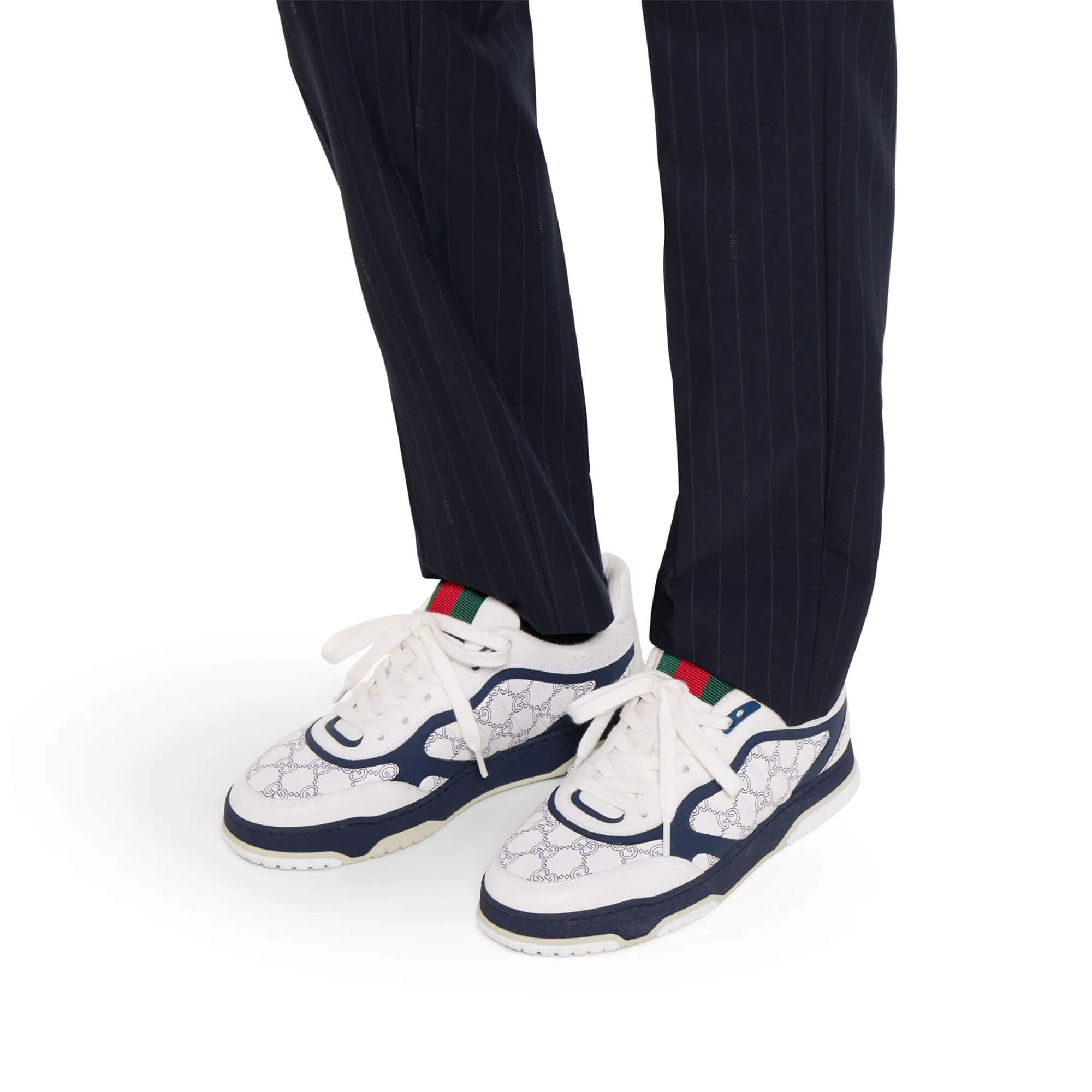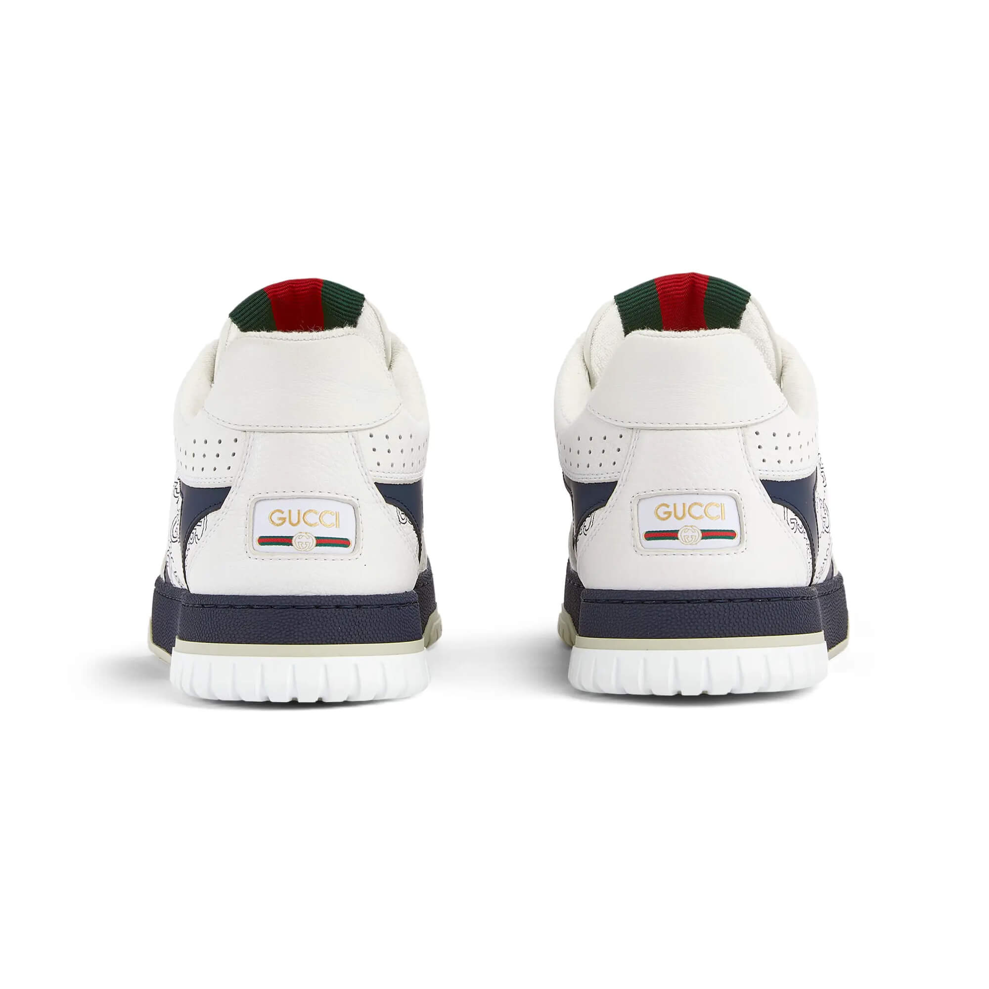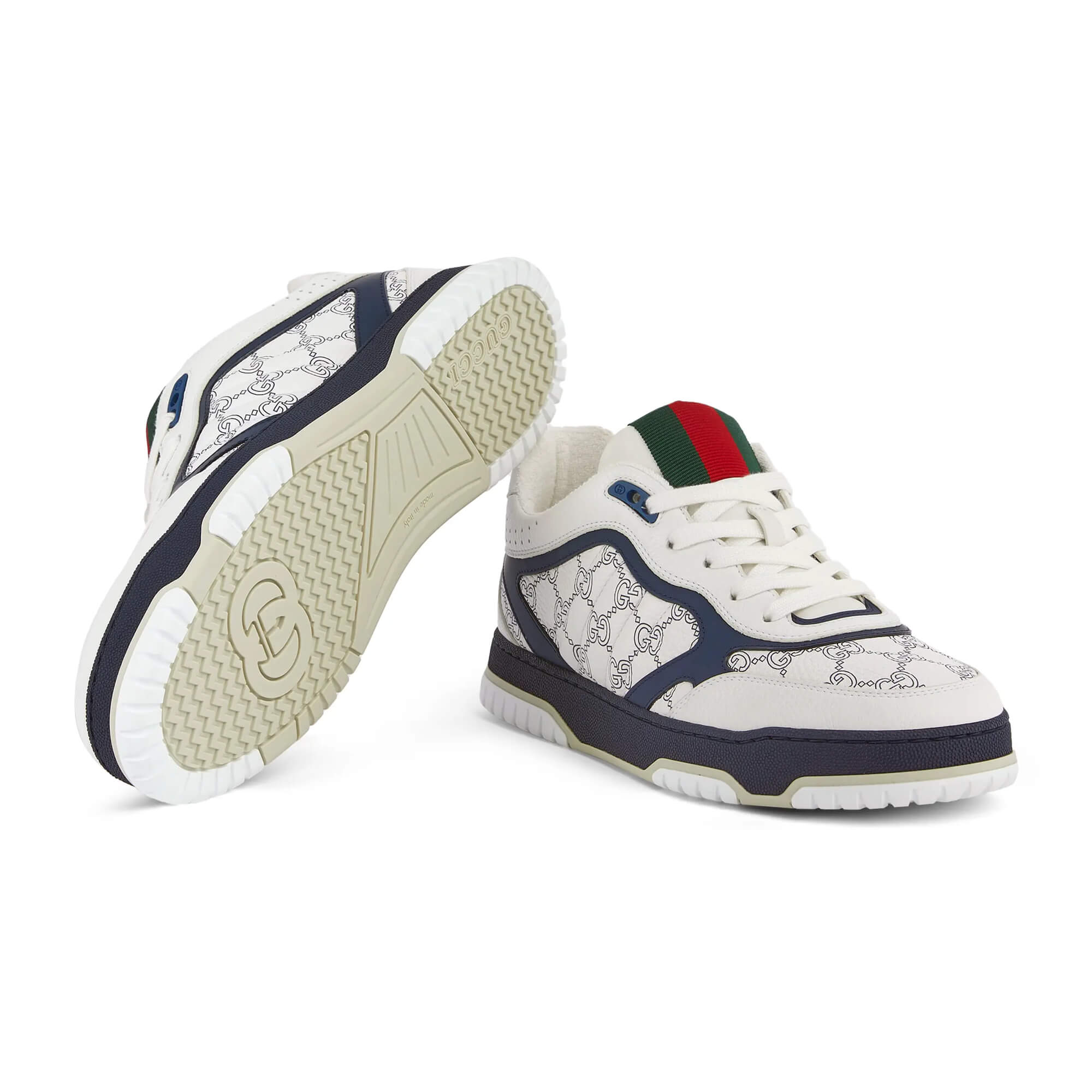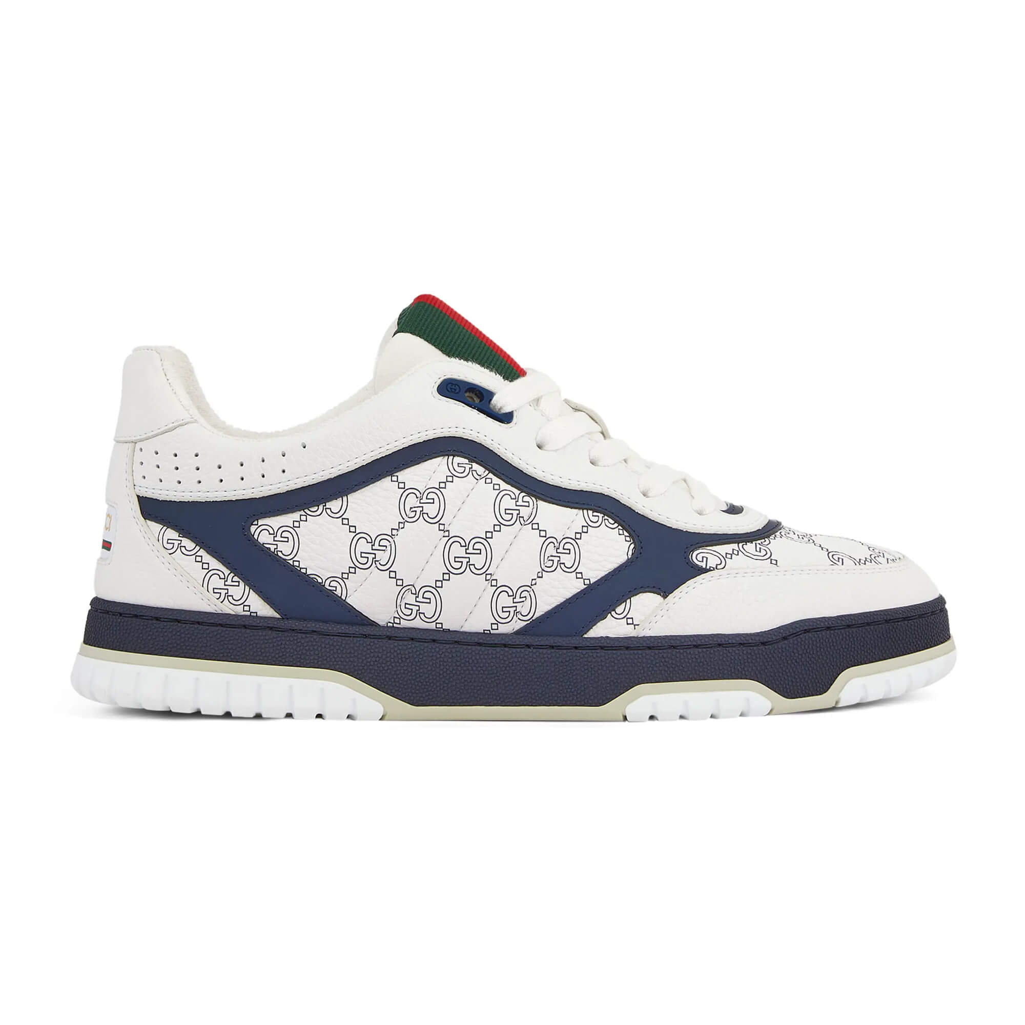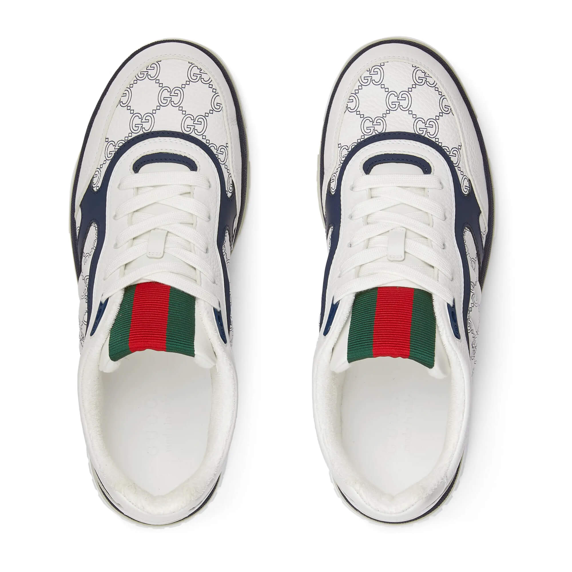 עור בדוגמת GG בצבע לבן וכחול כהה בשילוב עור בצבע כחול כהה
