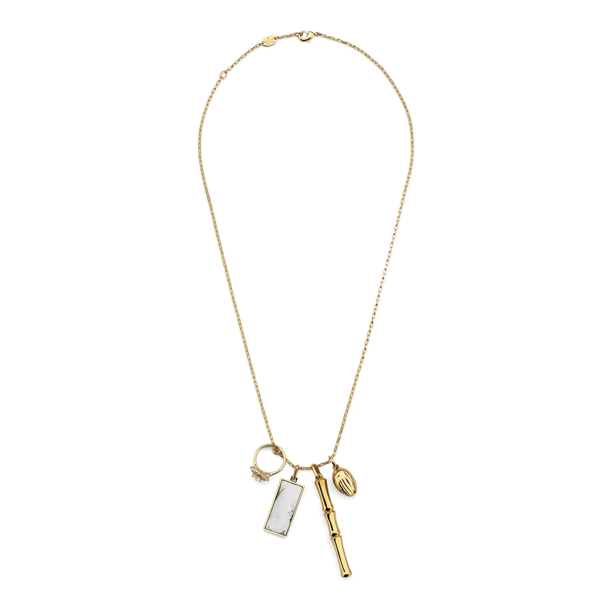 תליוני פליז בצבע זהב עם קריסטלים, תליון resin במראה שיש לבן ועיטור אמייל