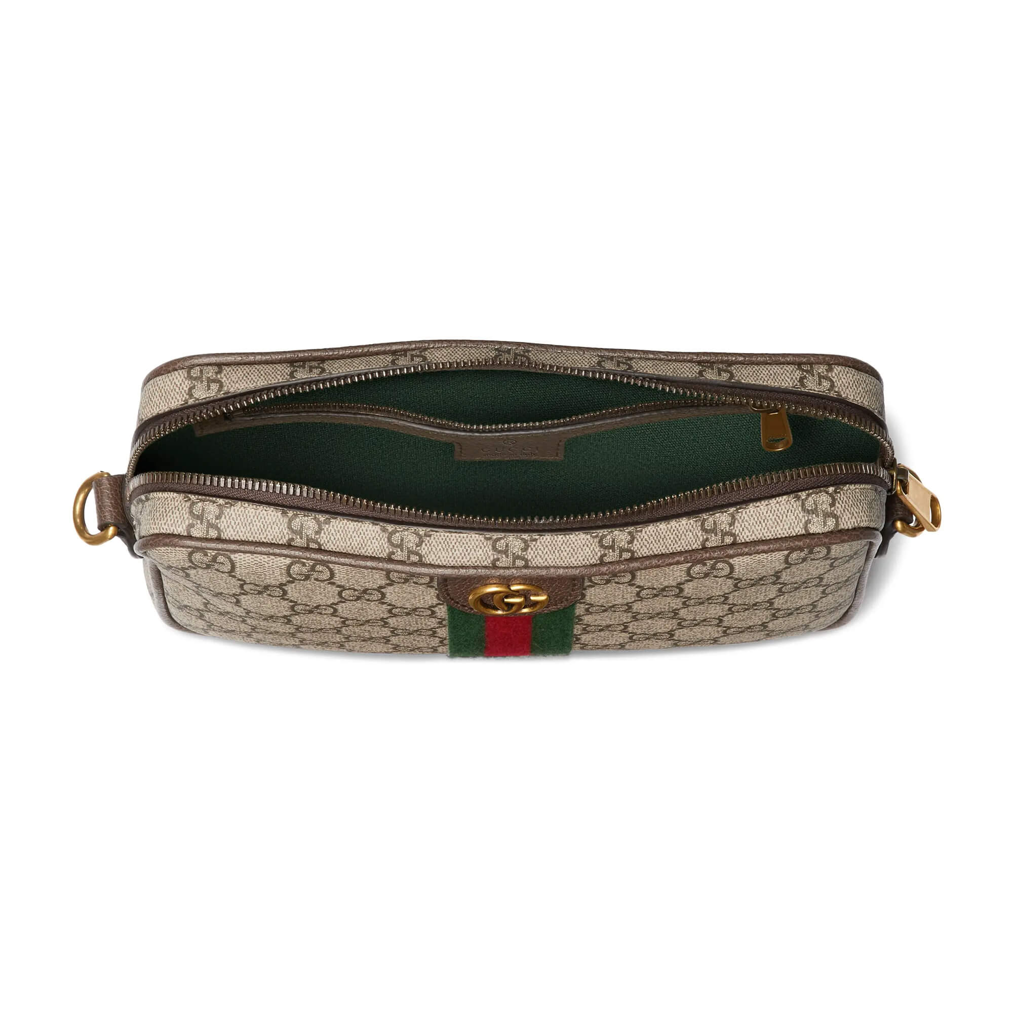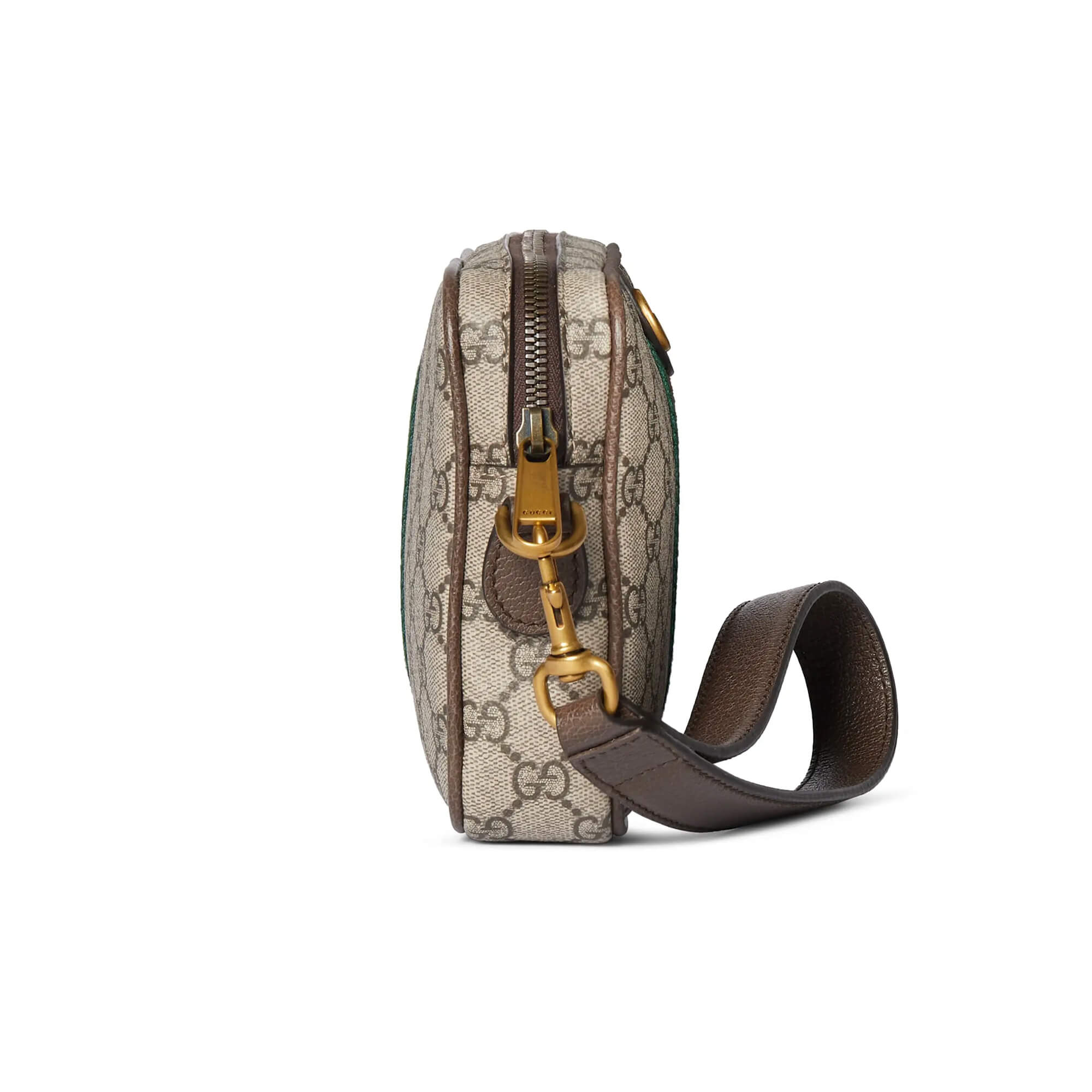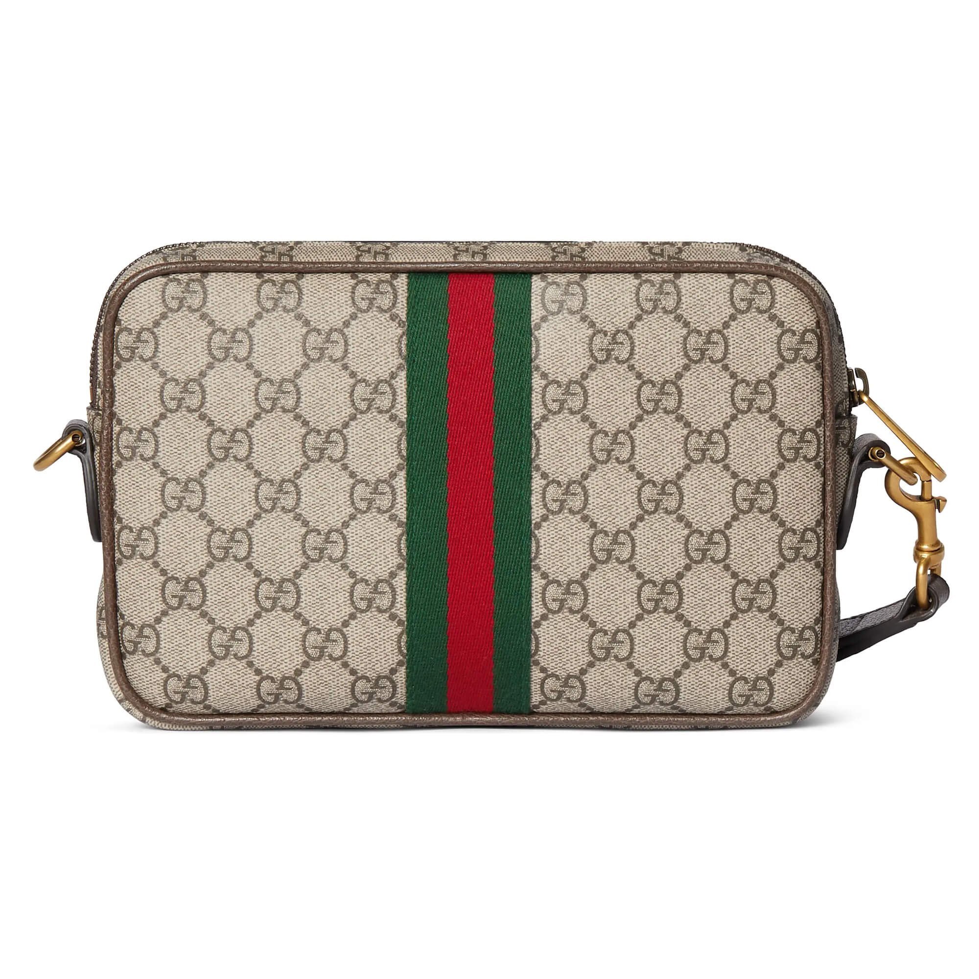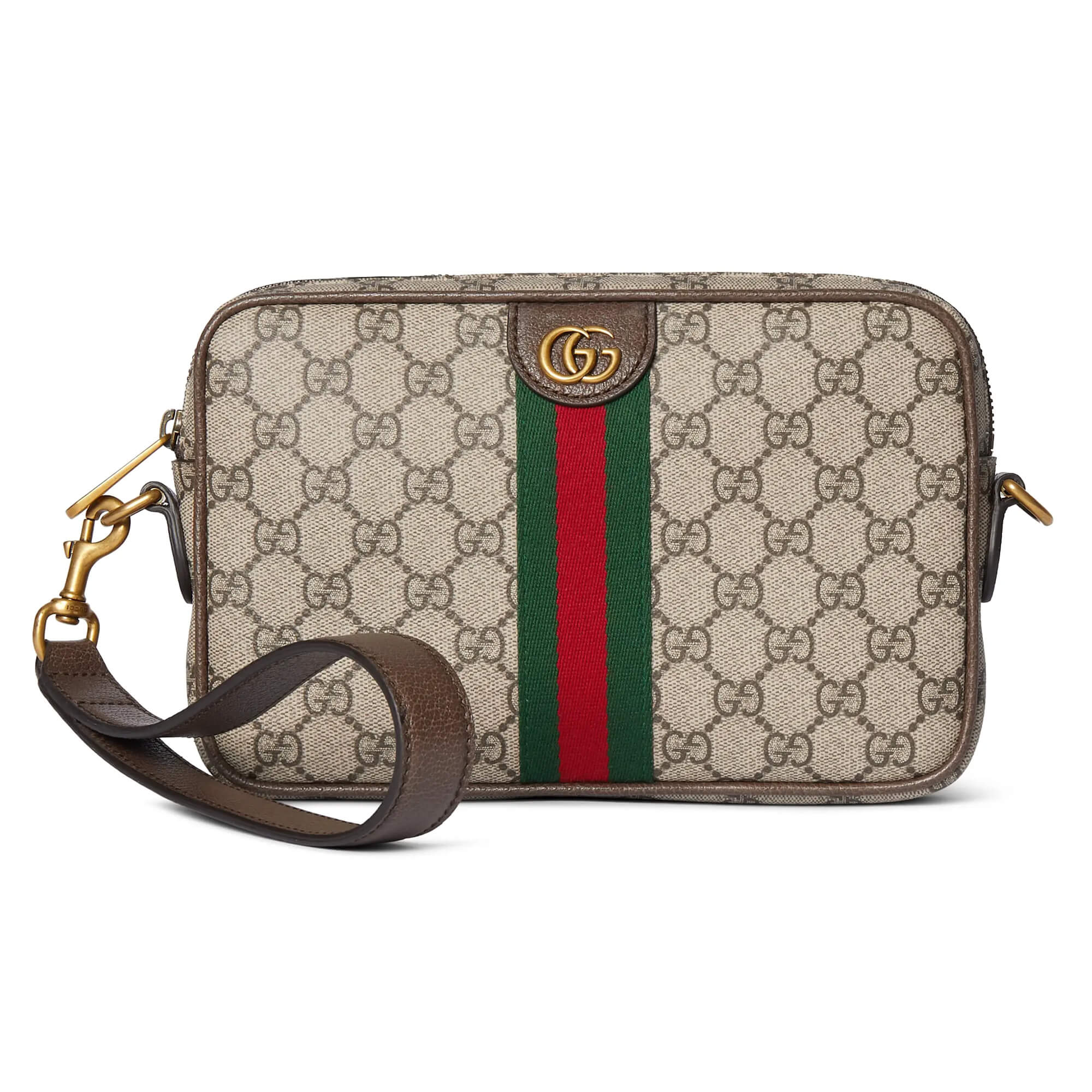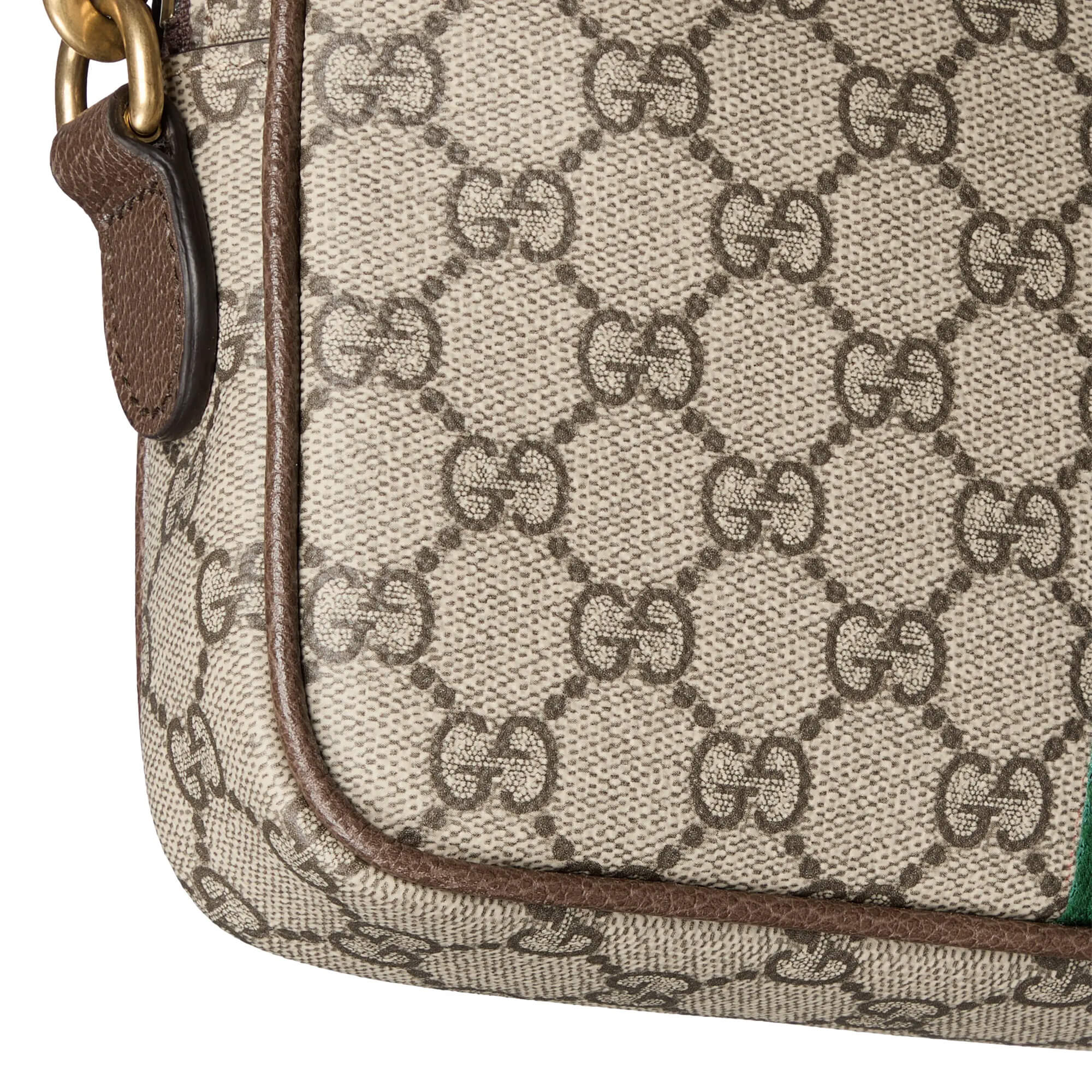 תיק קטן מאריג GG Monogram מצופה בצבע בז’ וחום בשילוב עור חום כהה