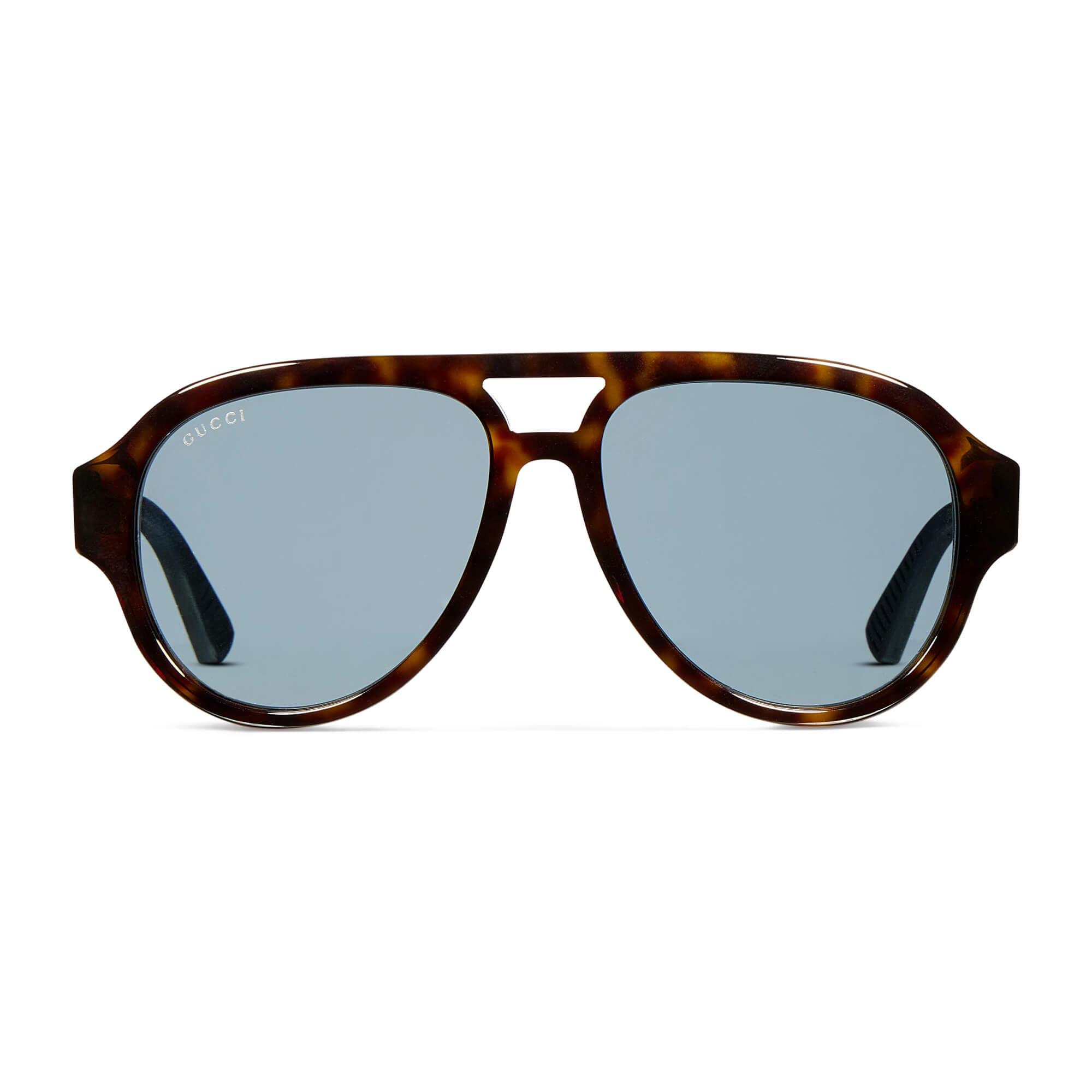 משקפי שמש עם מסגרת אצטט מבריקה בדוגמת tortoiseshell בצבע חום כהה