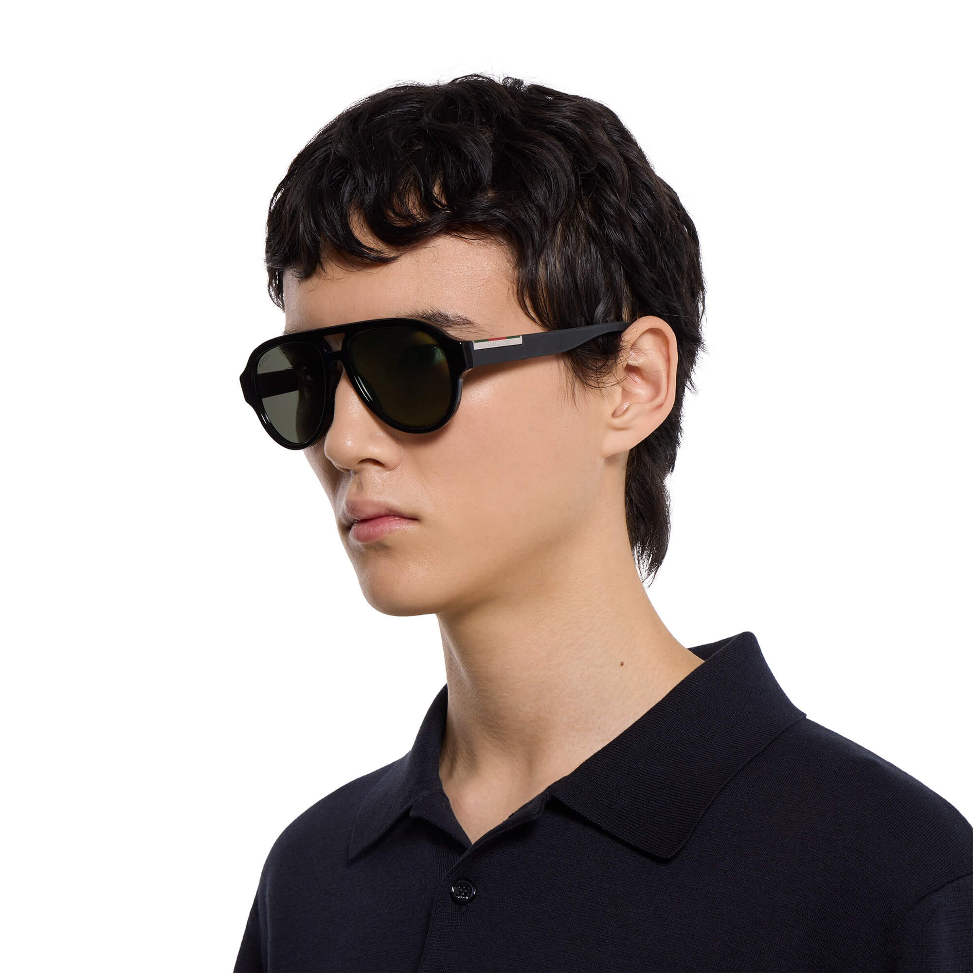 משקפי שמש עם מסגרת אצטט מבריקה בצבע שחור