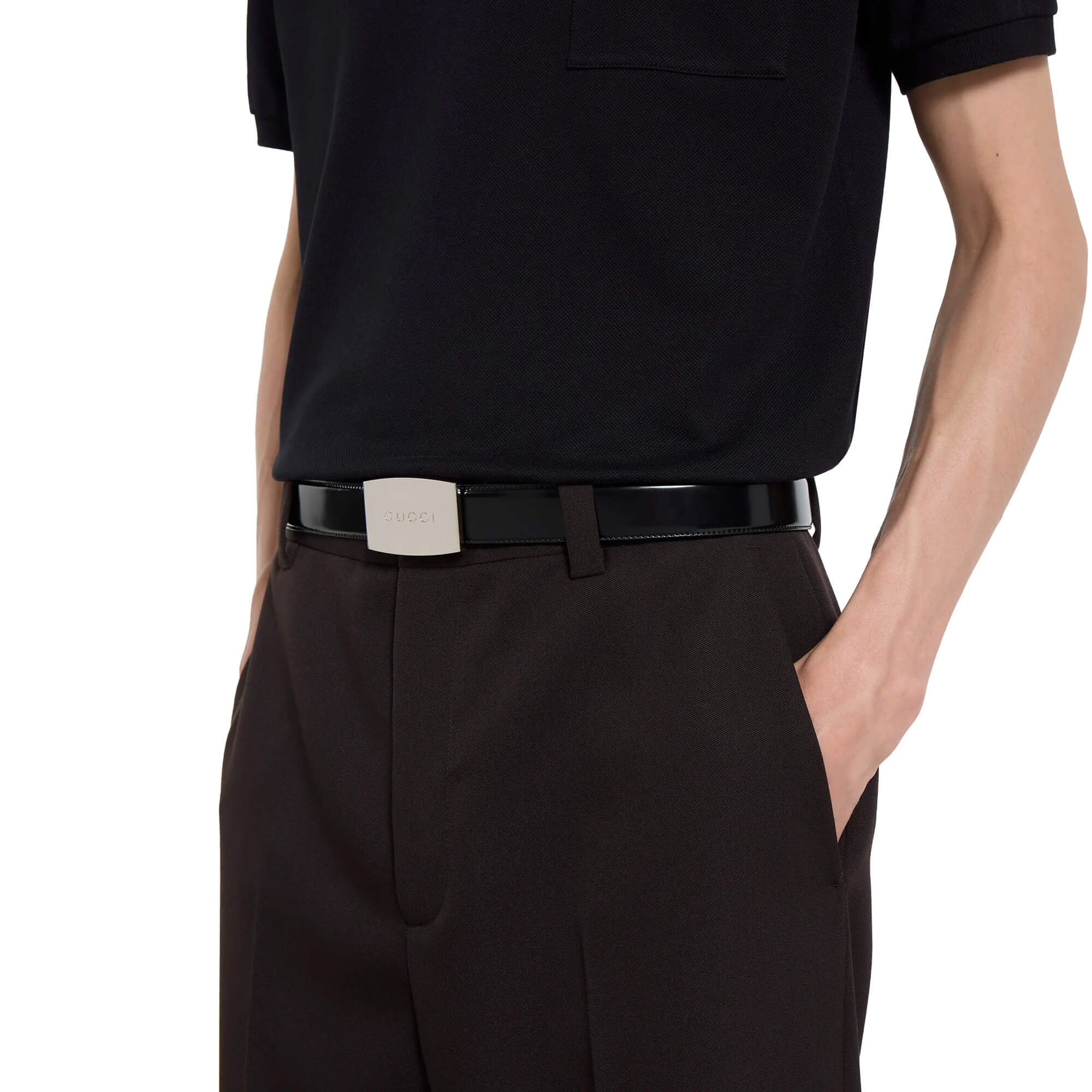אבזם לוחית מלבנית עם לוגו Gucci חרוט