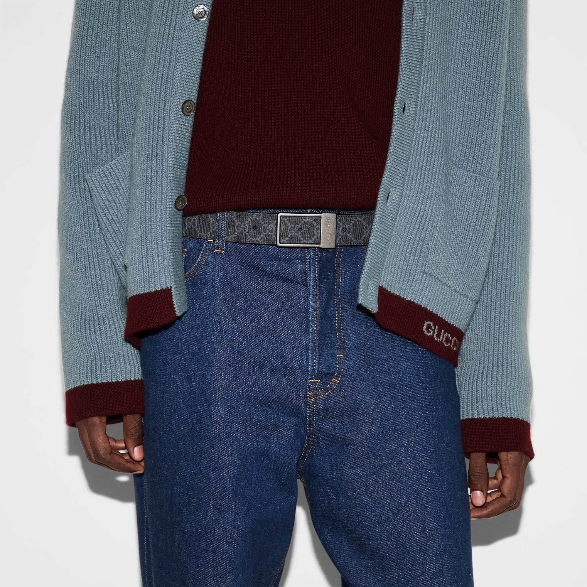 קנבס GG Supreme בצבע שחור בצד אחד ועור שחור בצד השני