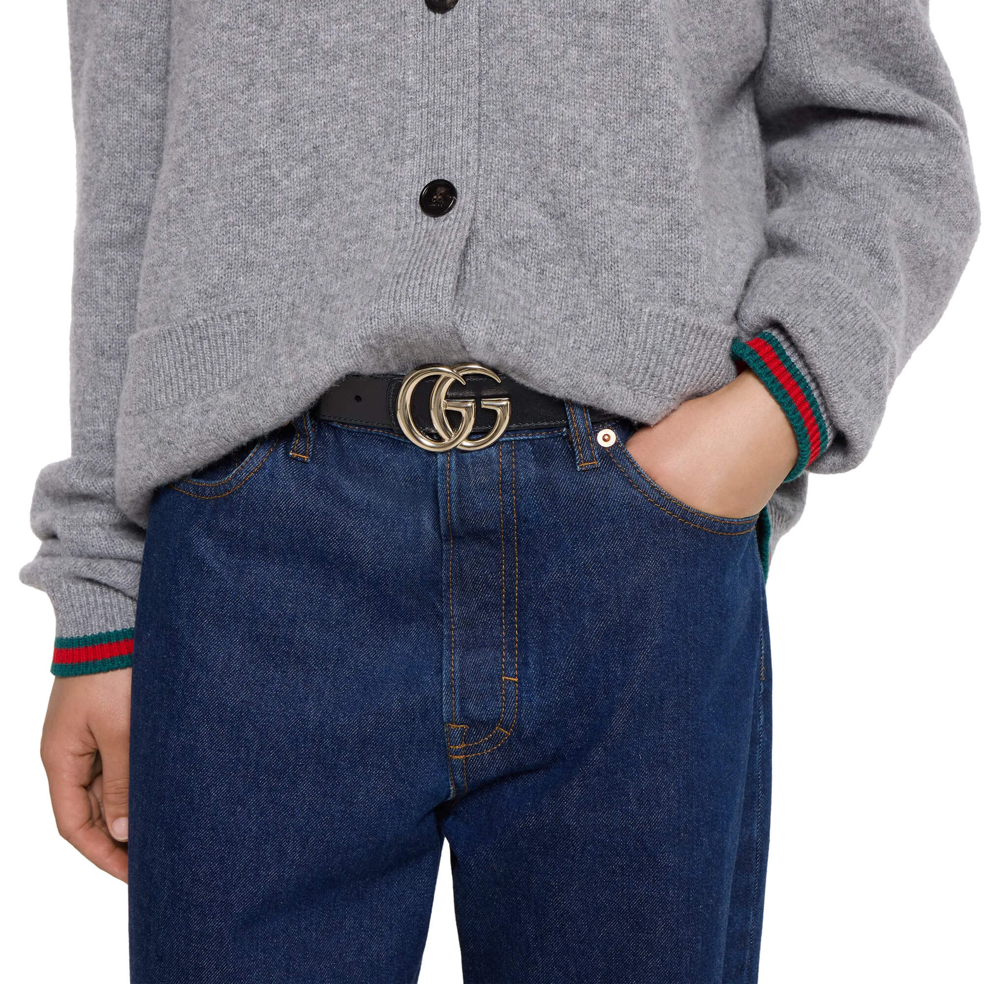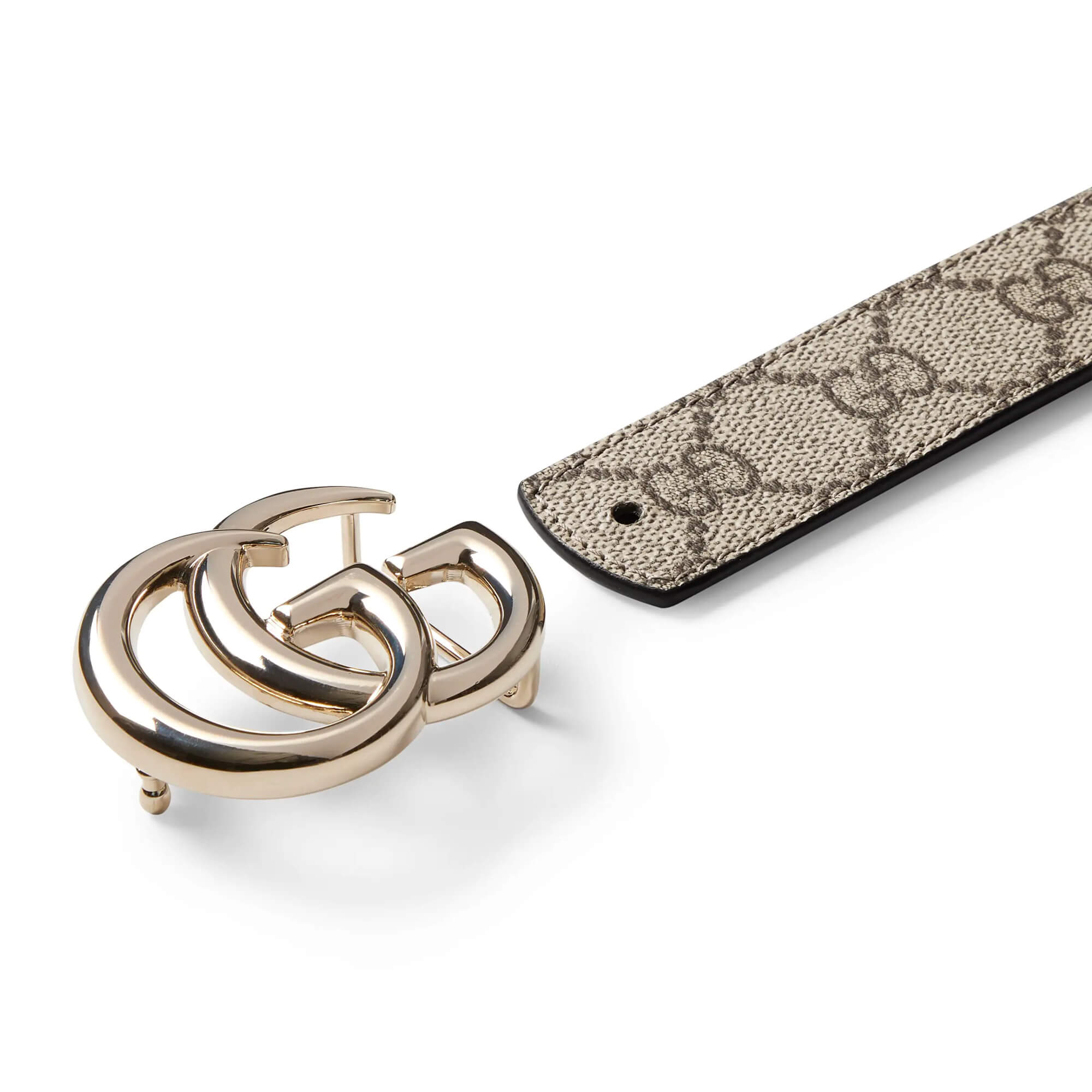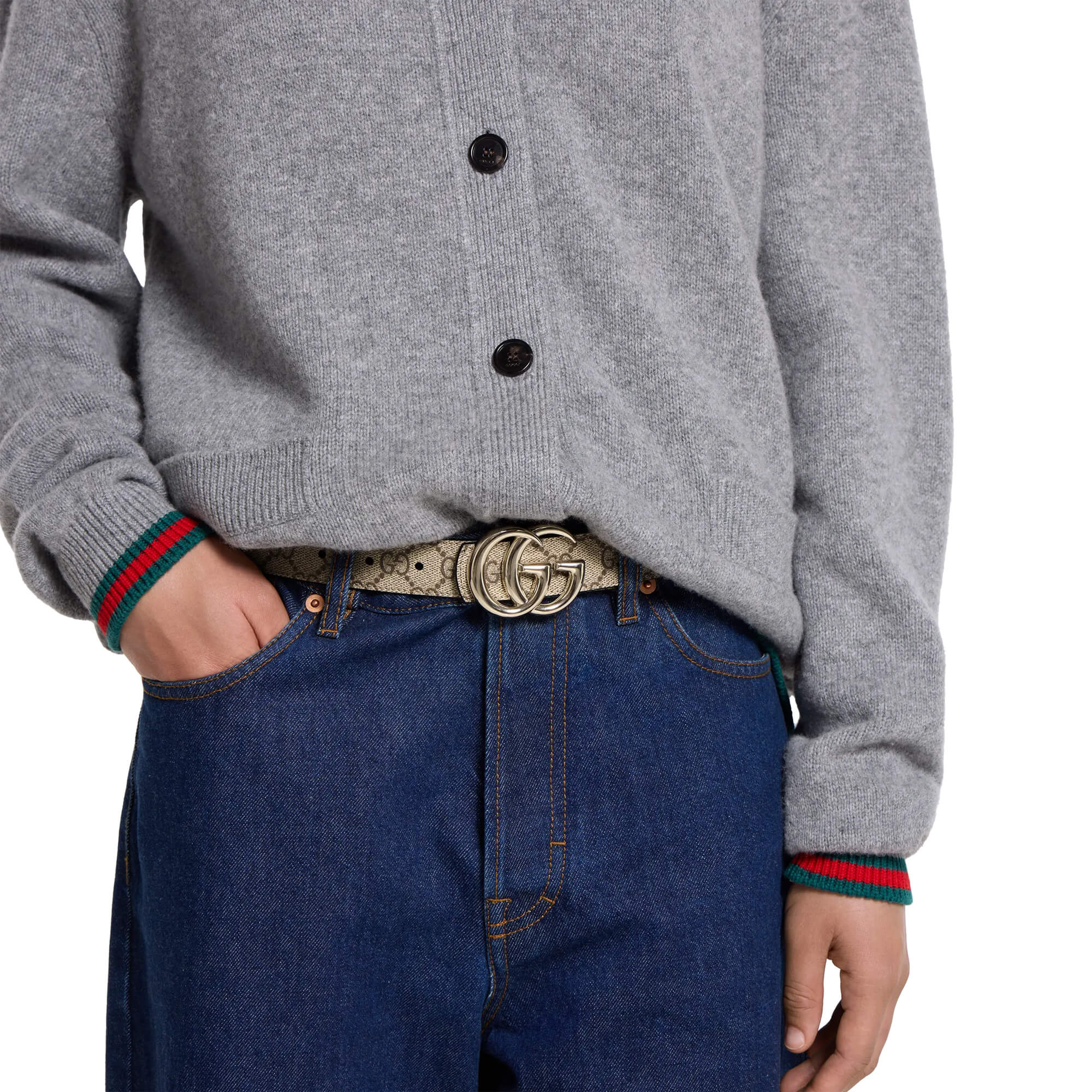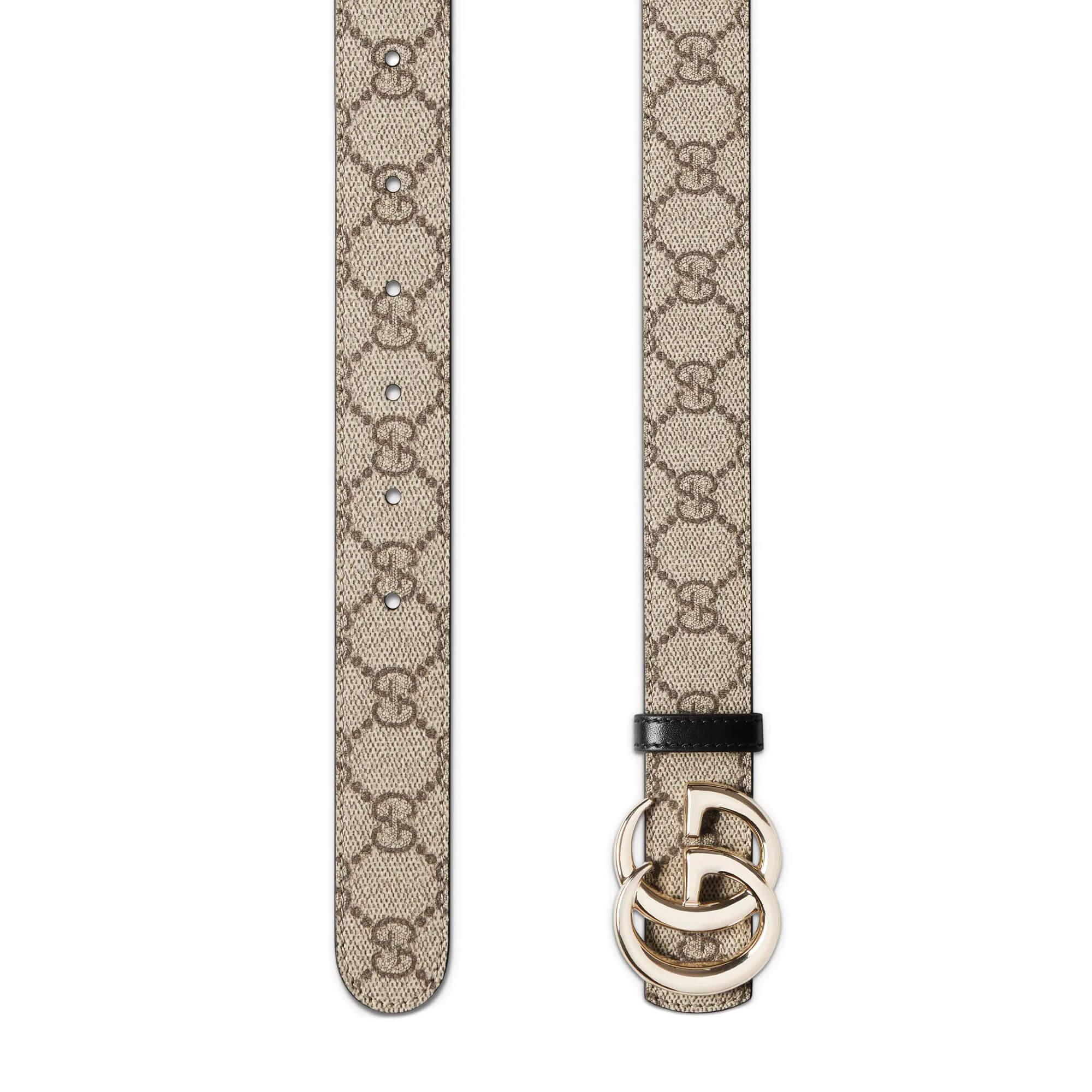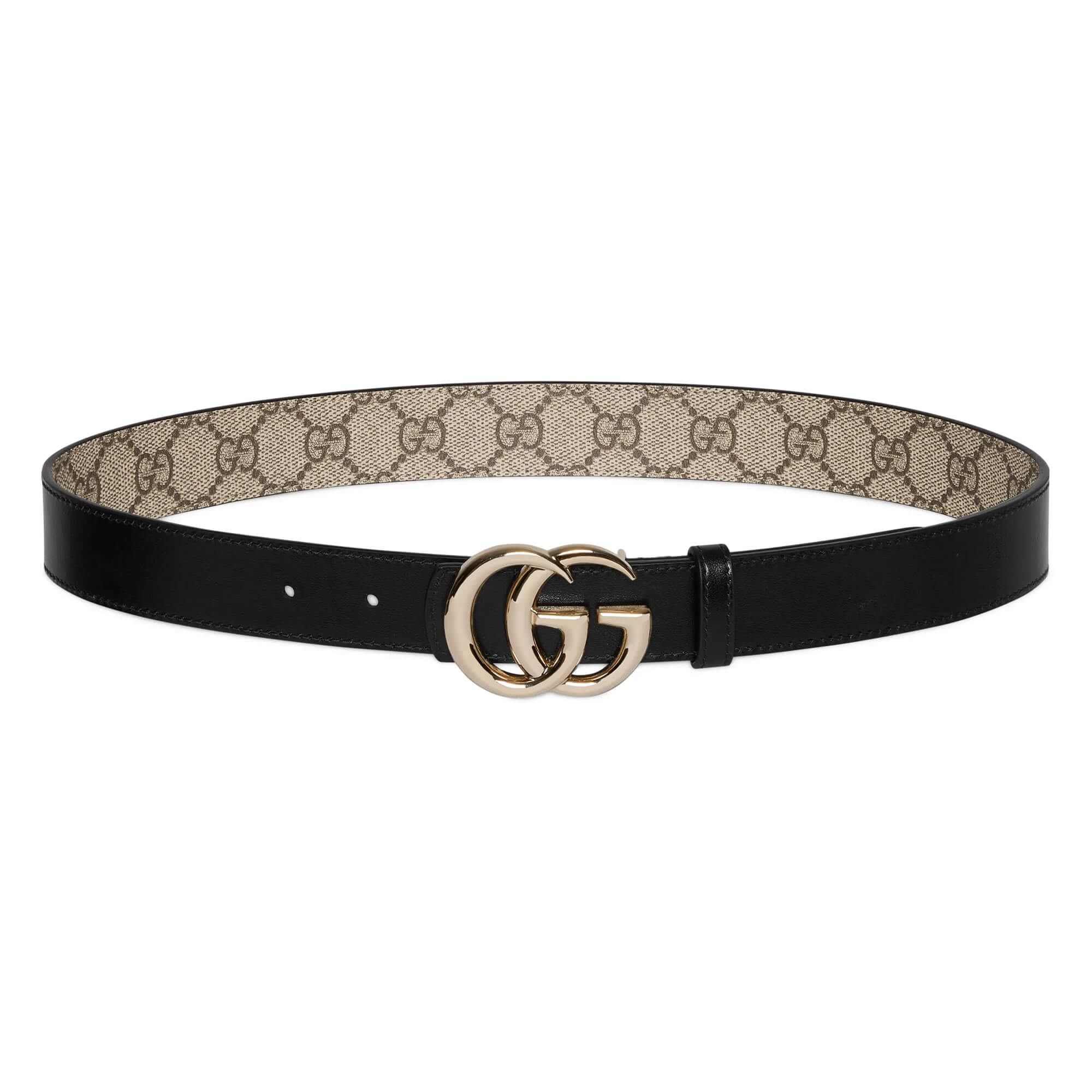 אריג GG Supreme בצבע בז׳ וחום כהה בצד אחד ועור שחור בצד השני