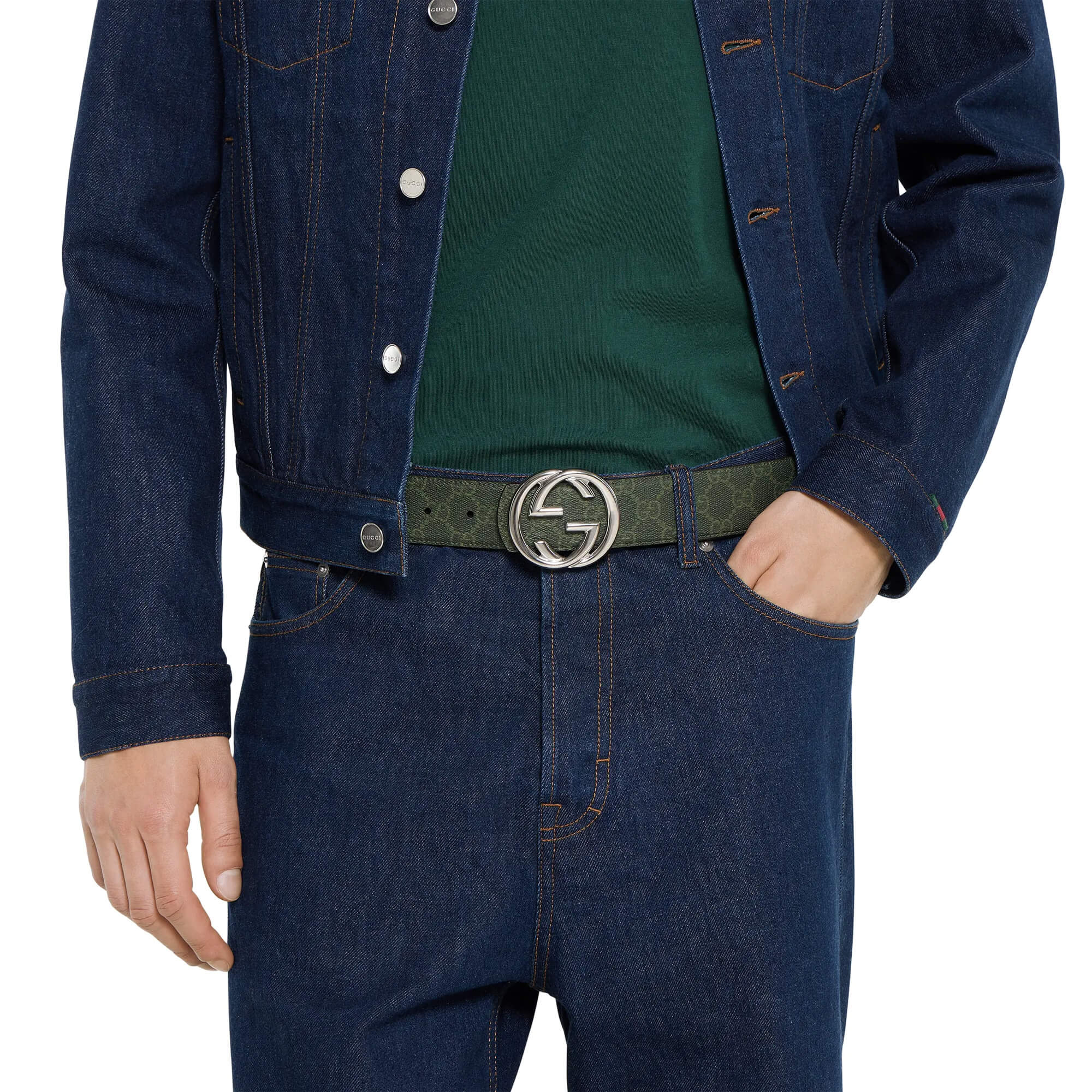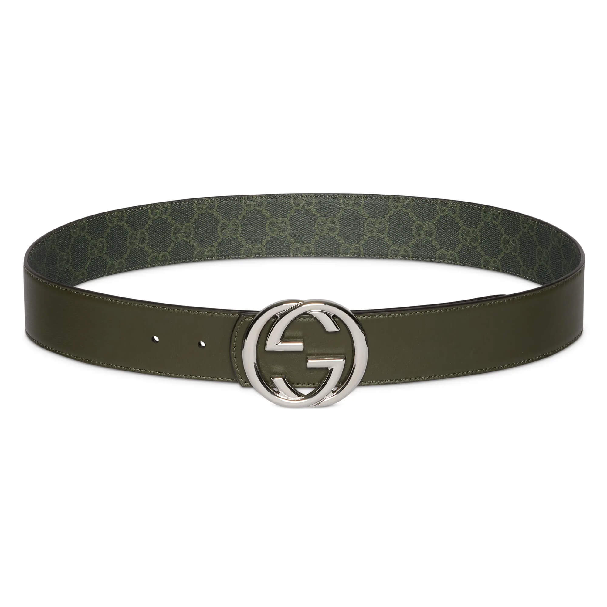 Forest green GG Monogram coated fabric on the one side, forest green leather on the other