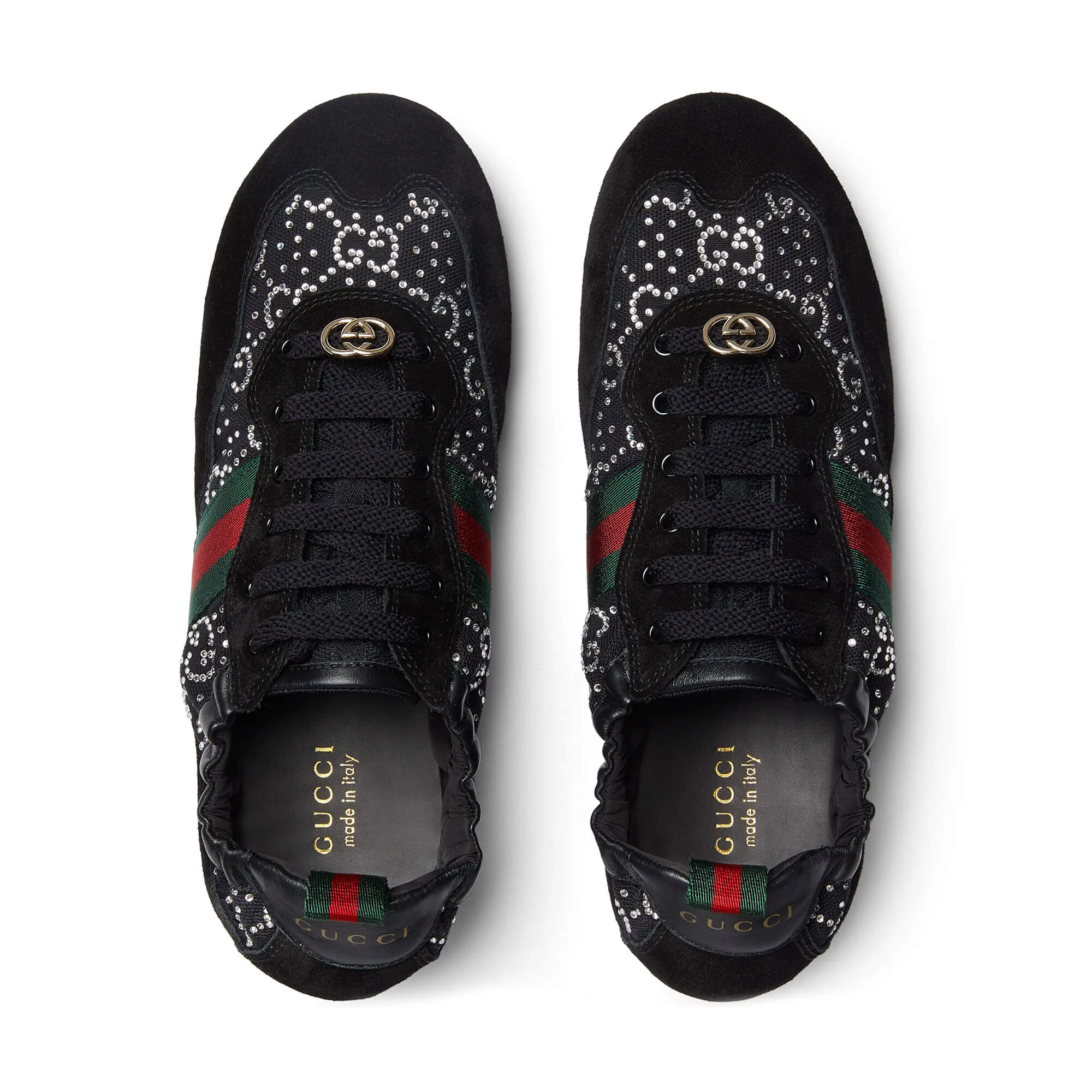 עשויות רשת שחורה עם עיטור קריסטלי GG