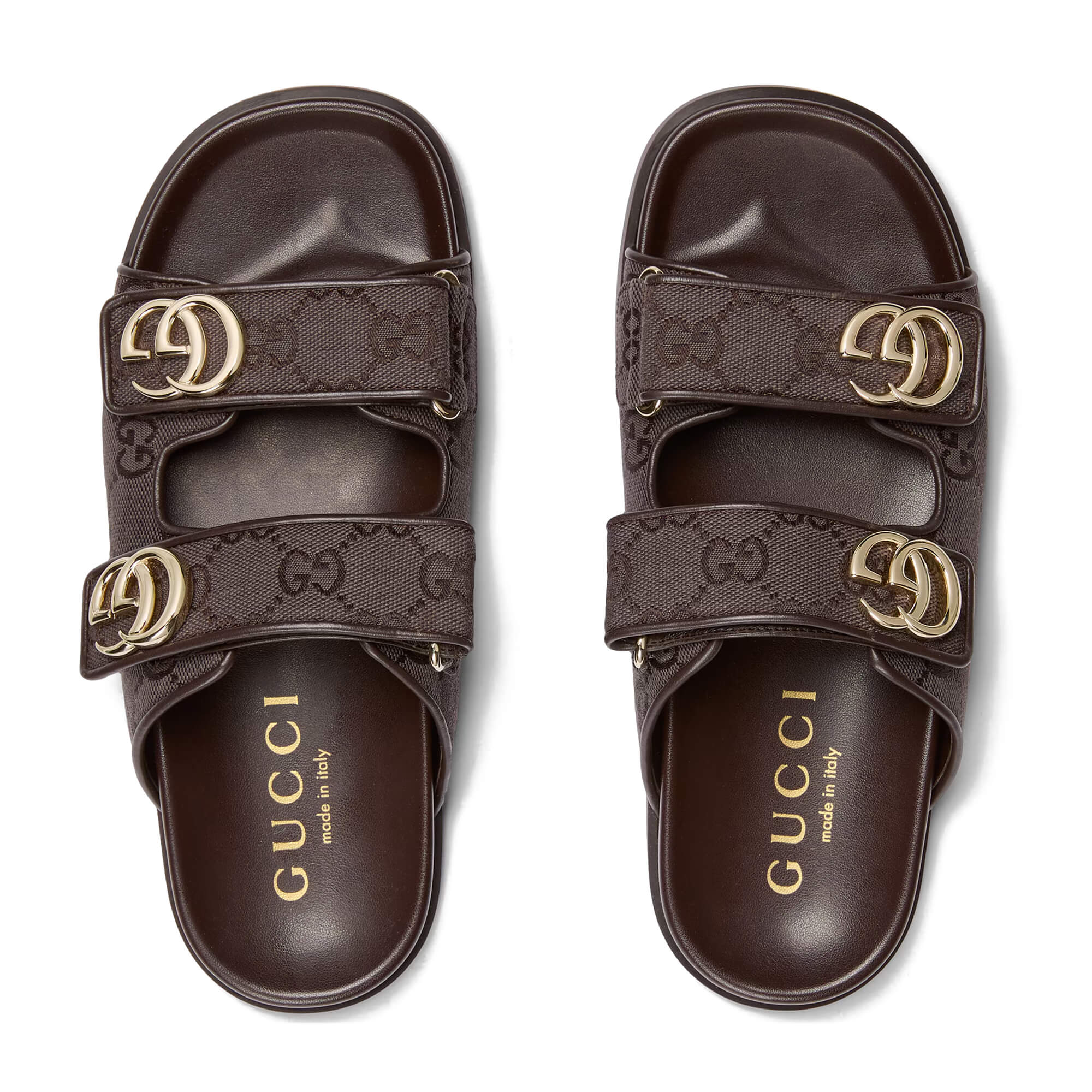 כפכפים מאריג GG בצבע חום כהה