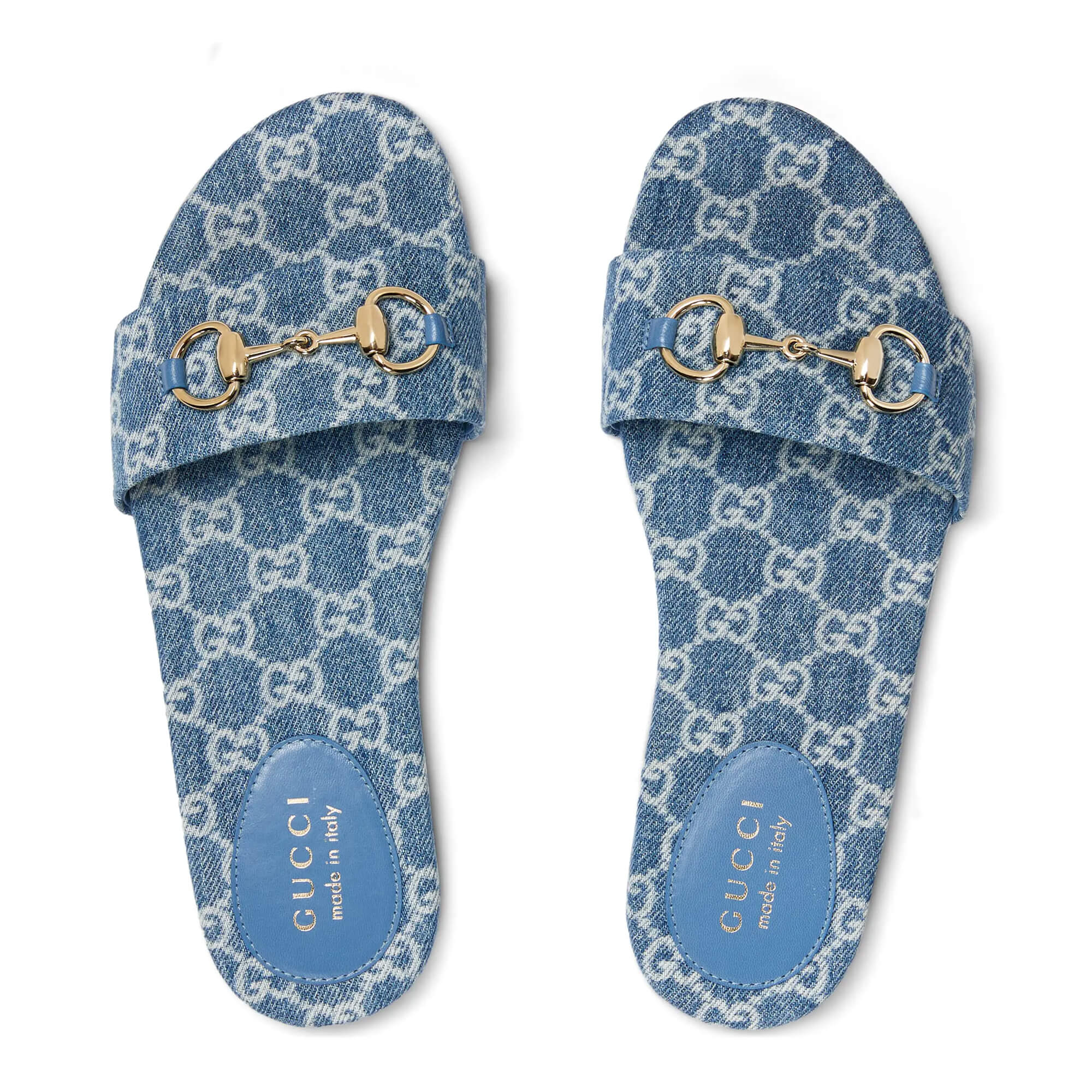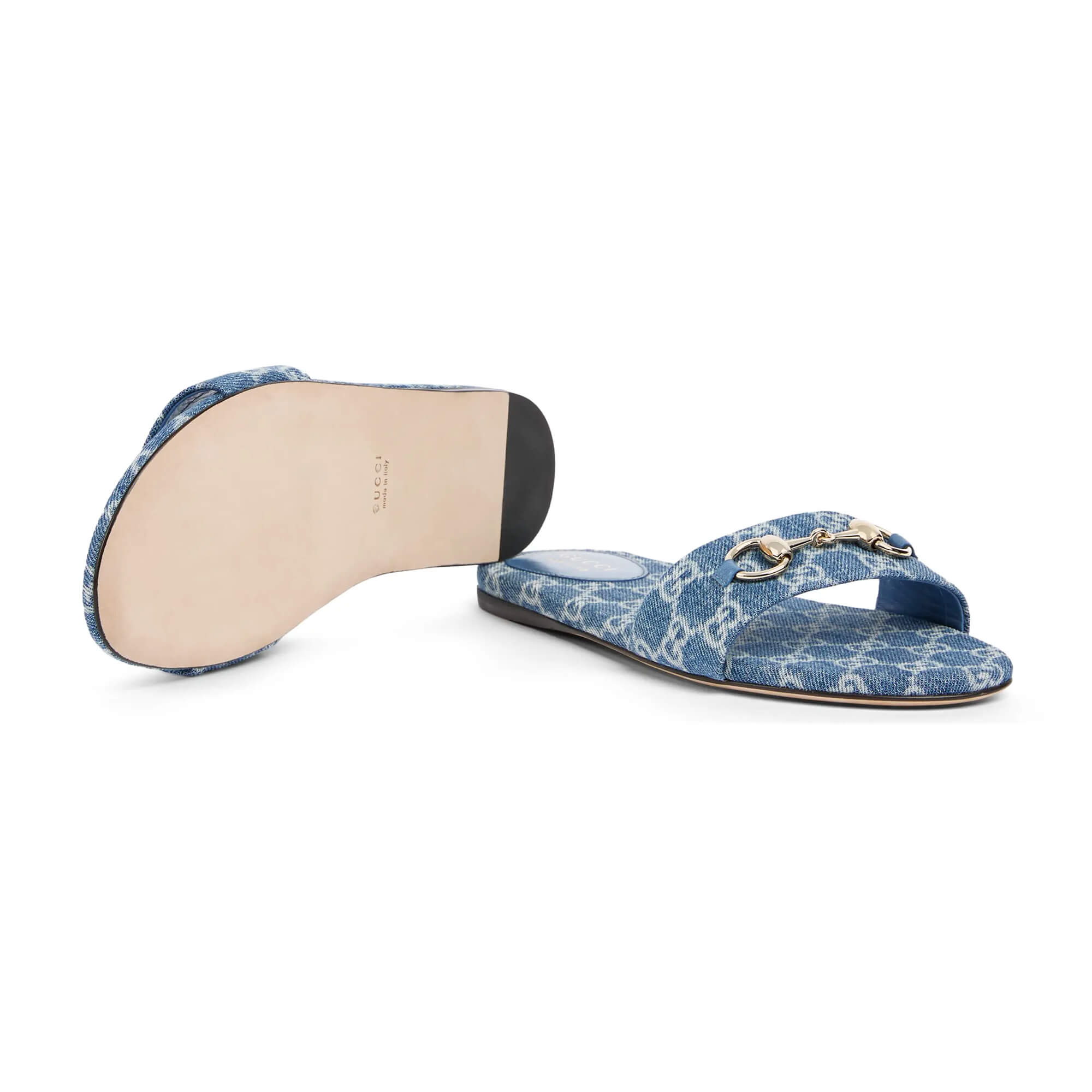 כפכפים שטוחים מבד ג׳ינס GG בצבע כחול