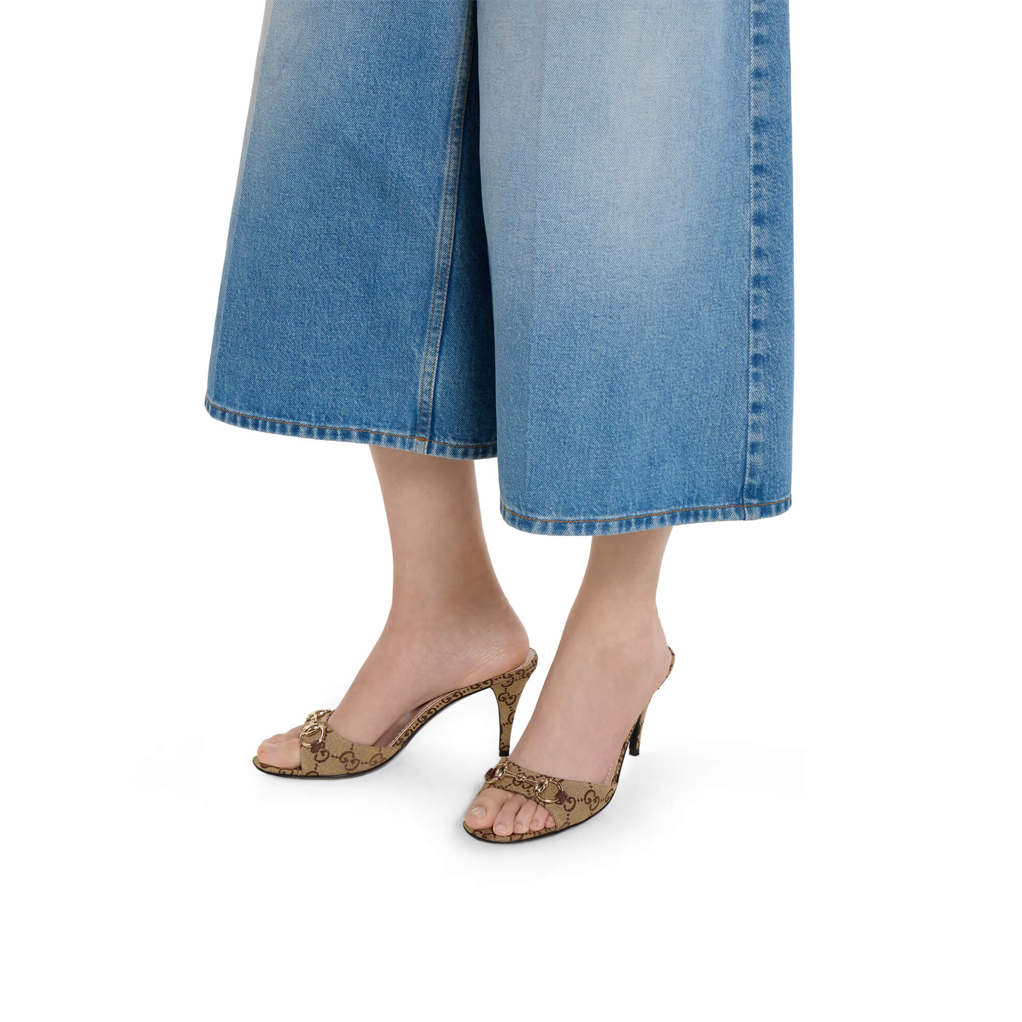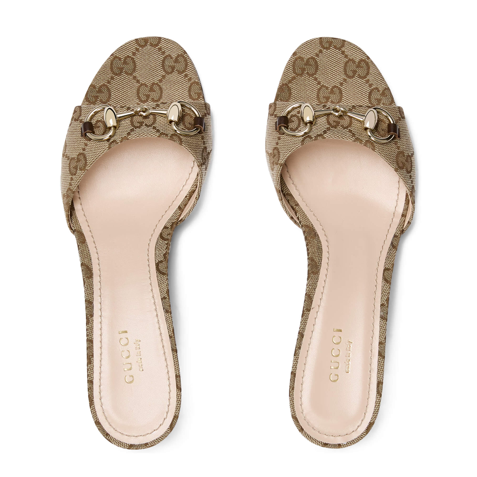 כפכפי עקב מאריג GG בצבע בז׳ וחום